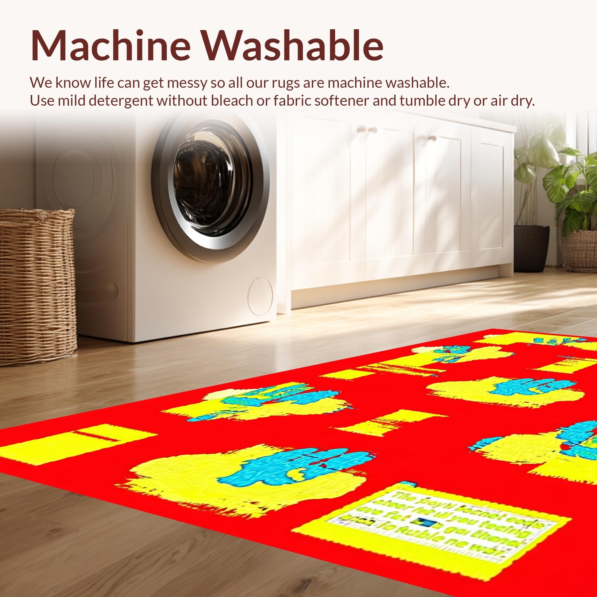- Machine Washable: Our rugs can be easily thrown in the wash machine.