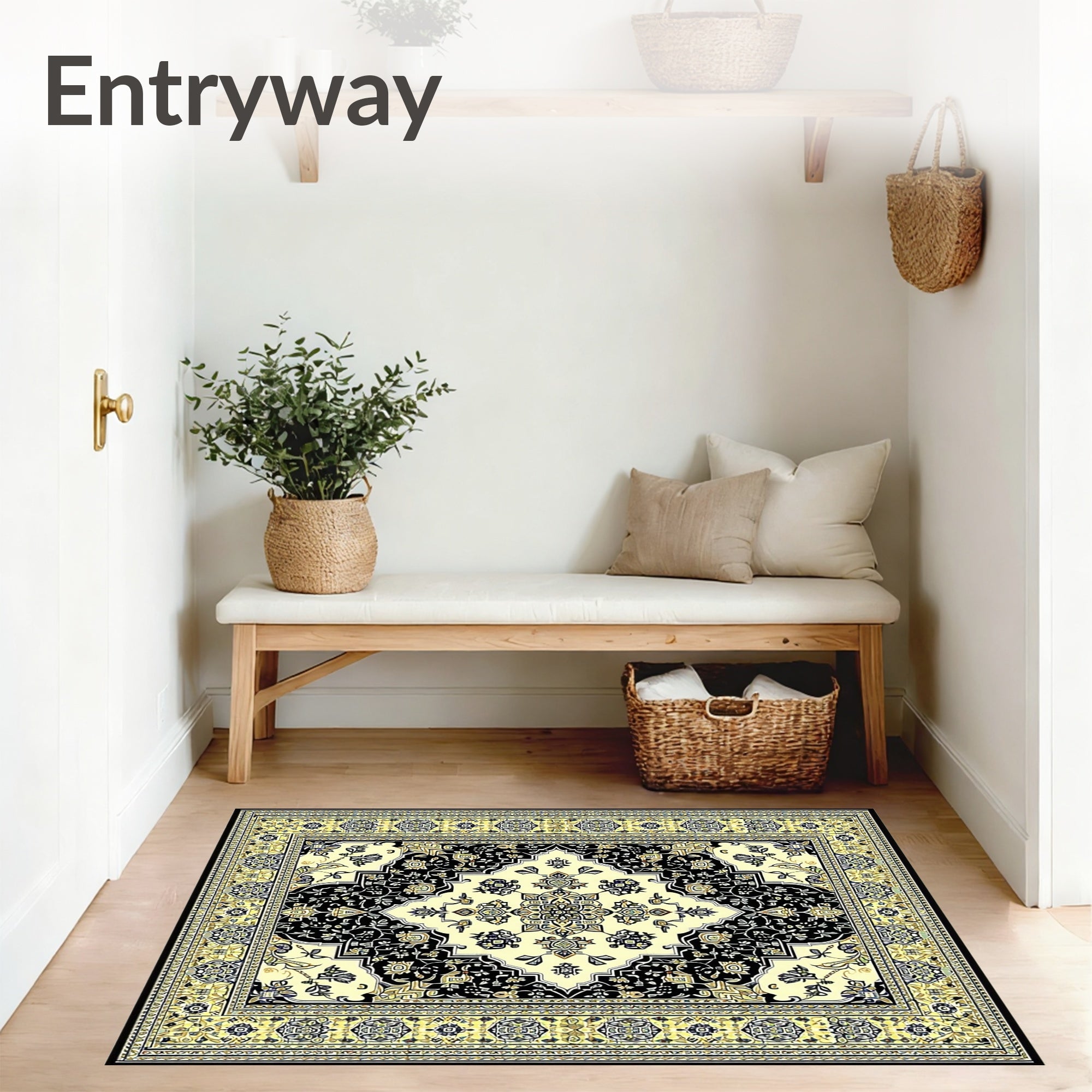 Ultra Soft Area Rug, Non Slip, Stain Resistant, Washable Area Rugs for Living Room, Bedroom, Cross Medallion Area with Beige and Charcoal Highlights(Beige) Overview:
