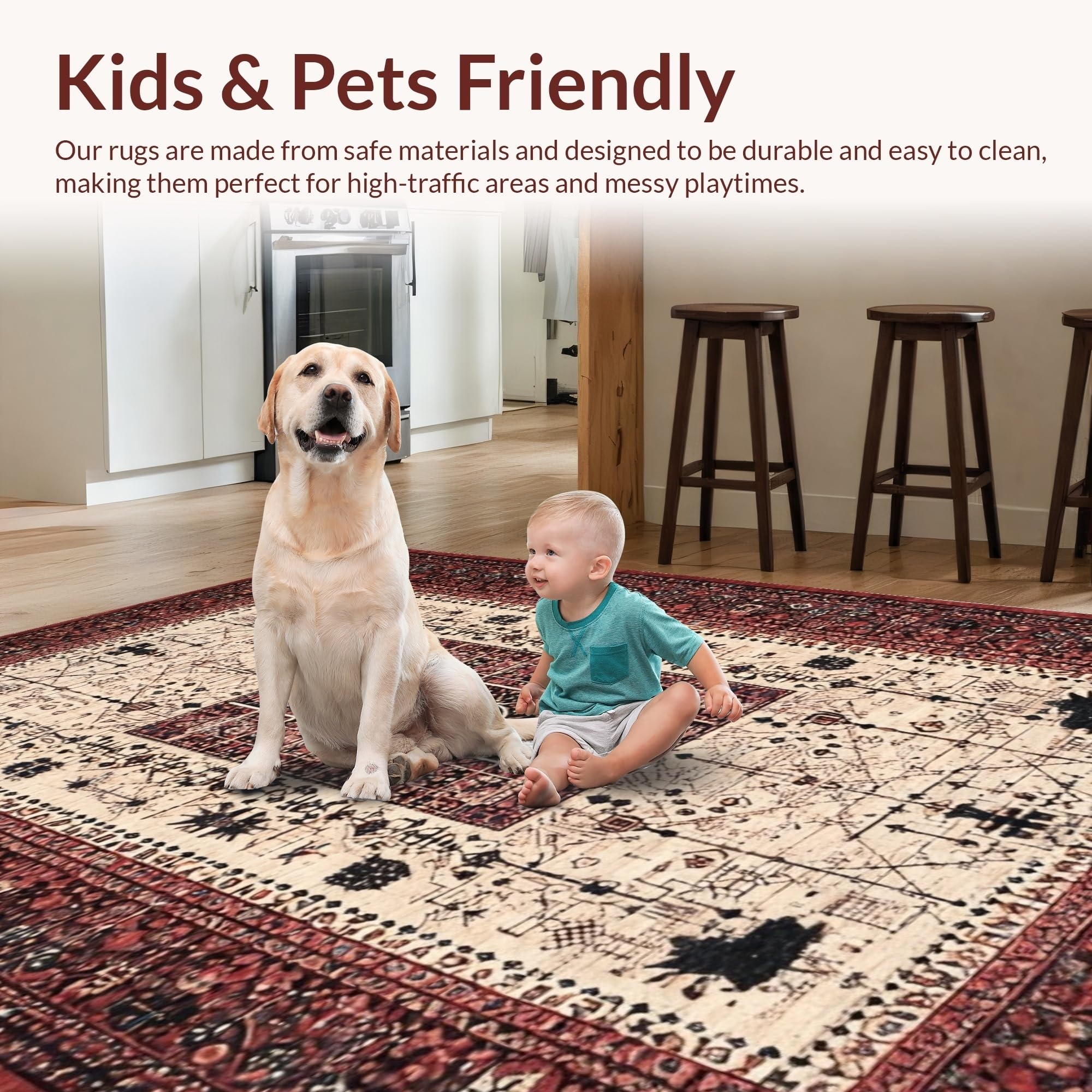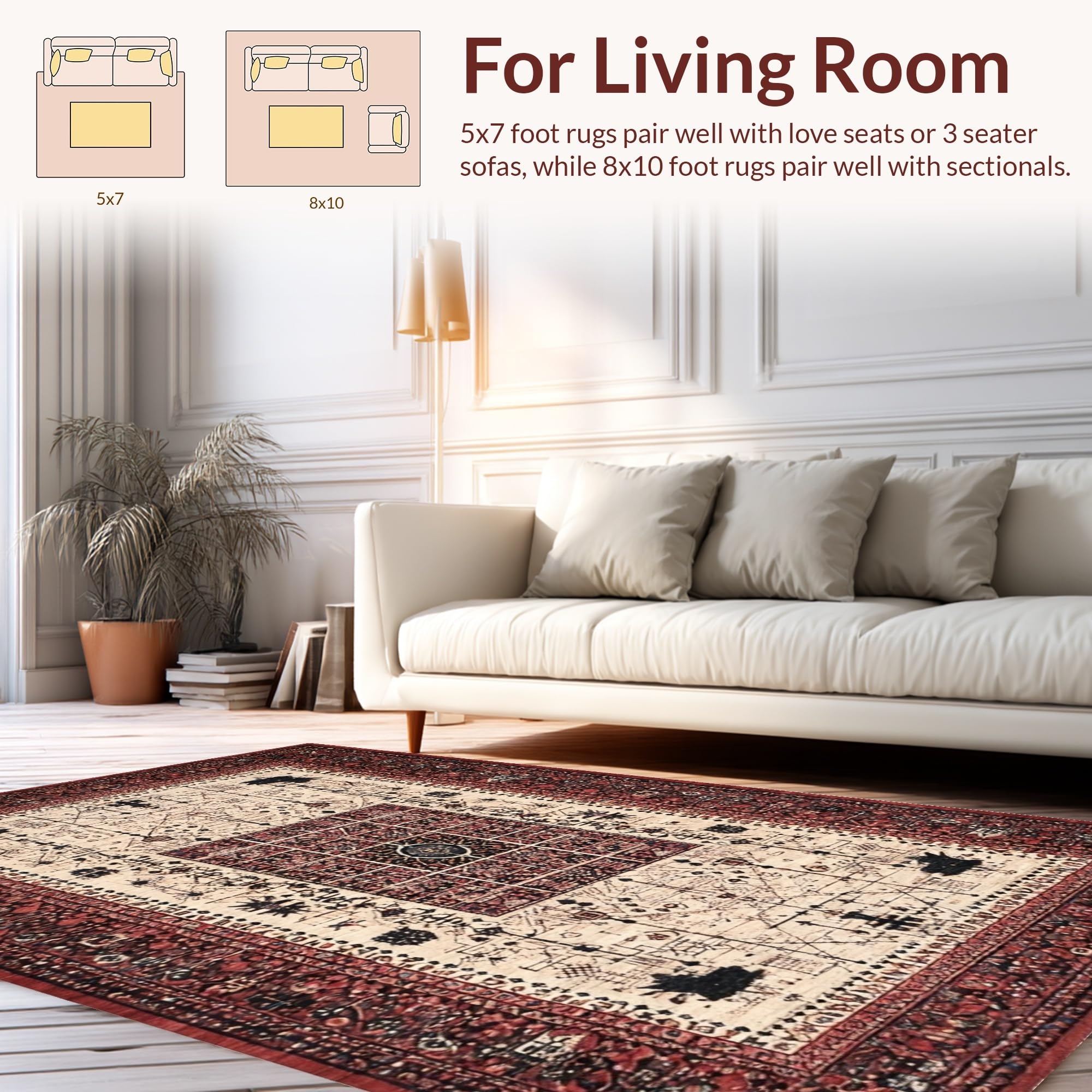 Ultra Soft Area Rug, Non Slip, Stain Resistant, Washable Area Rugs for Living Room, Bedroom, Cryptic Coven Carpet - Enchanted Dark Academia Home Decor with Symbols(Red) Overview: