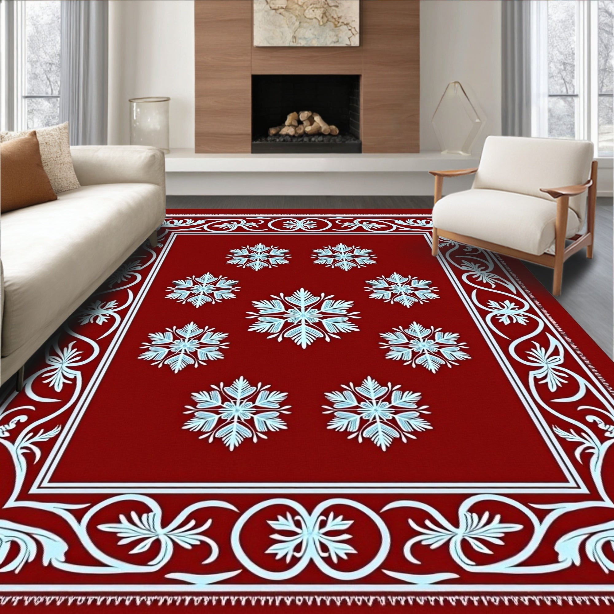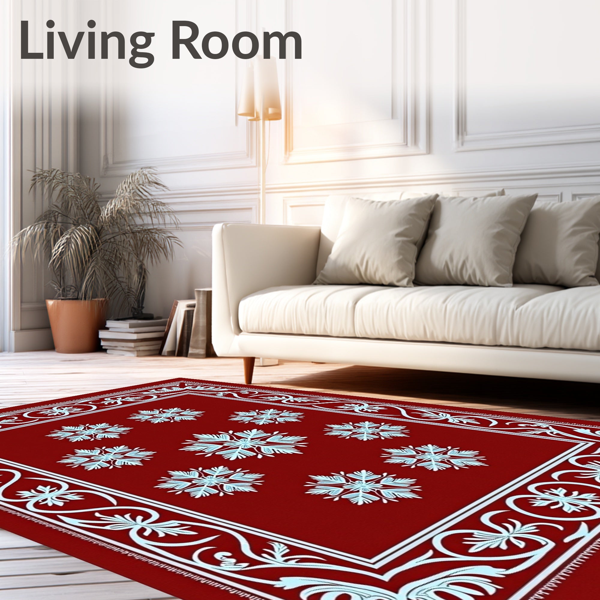 Ultra Soft Area Rug, Non Slip, Stain Resistant, Washable Area Rugs for Living Room, Bedroom, Crystal Wintry Elegant Decorative Stylish(Red) Overview:
