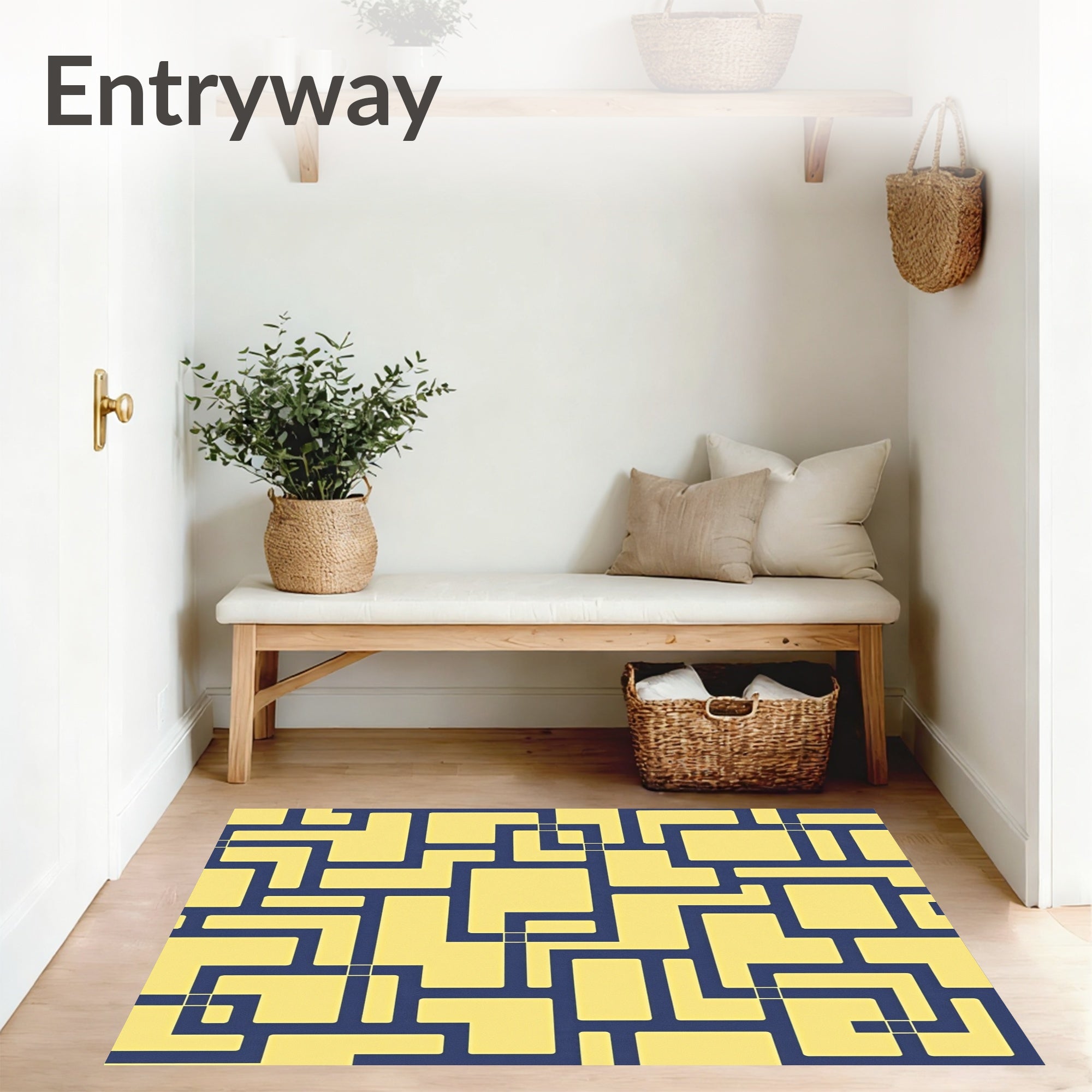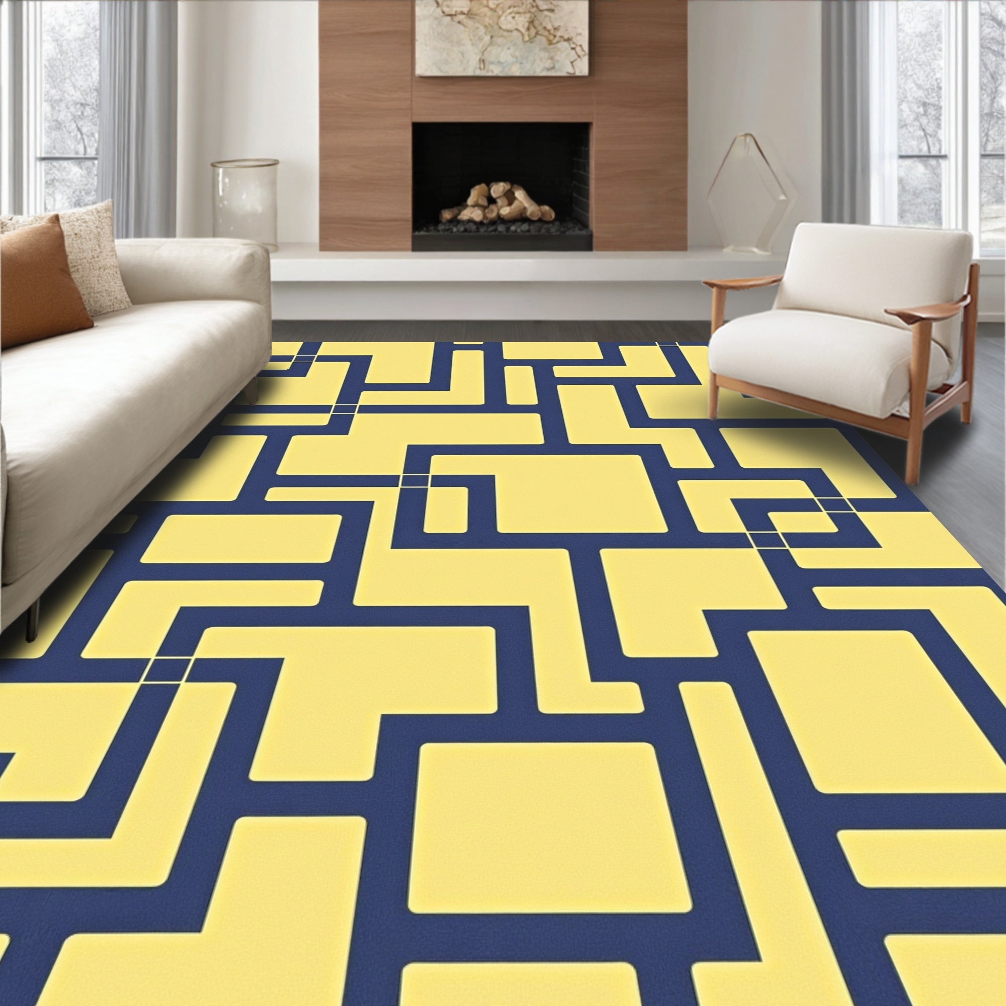 Ultra Soft Area Rug, Non Slip, Stain Resistant, Washable Area Rugs for Living Room, Bedroom, Cubist Maze Artistic Decorative Fashionable Elegant Stylish(Yellow) Overview: