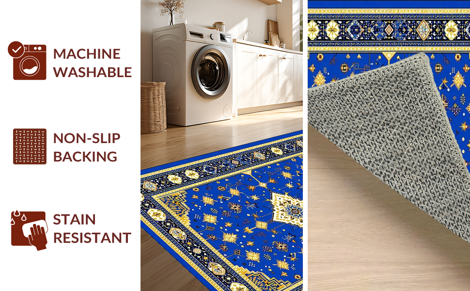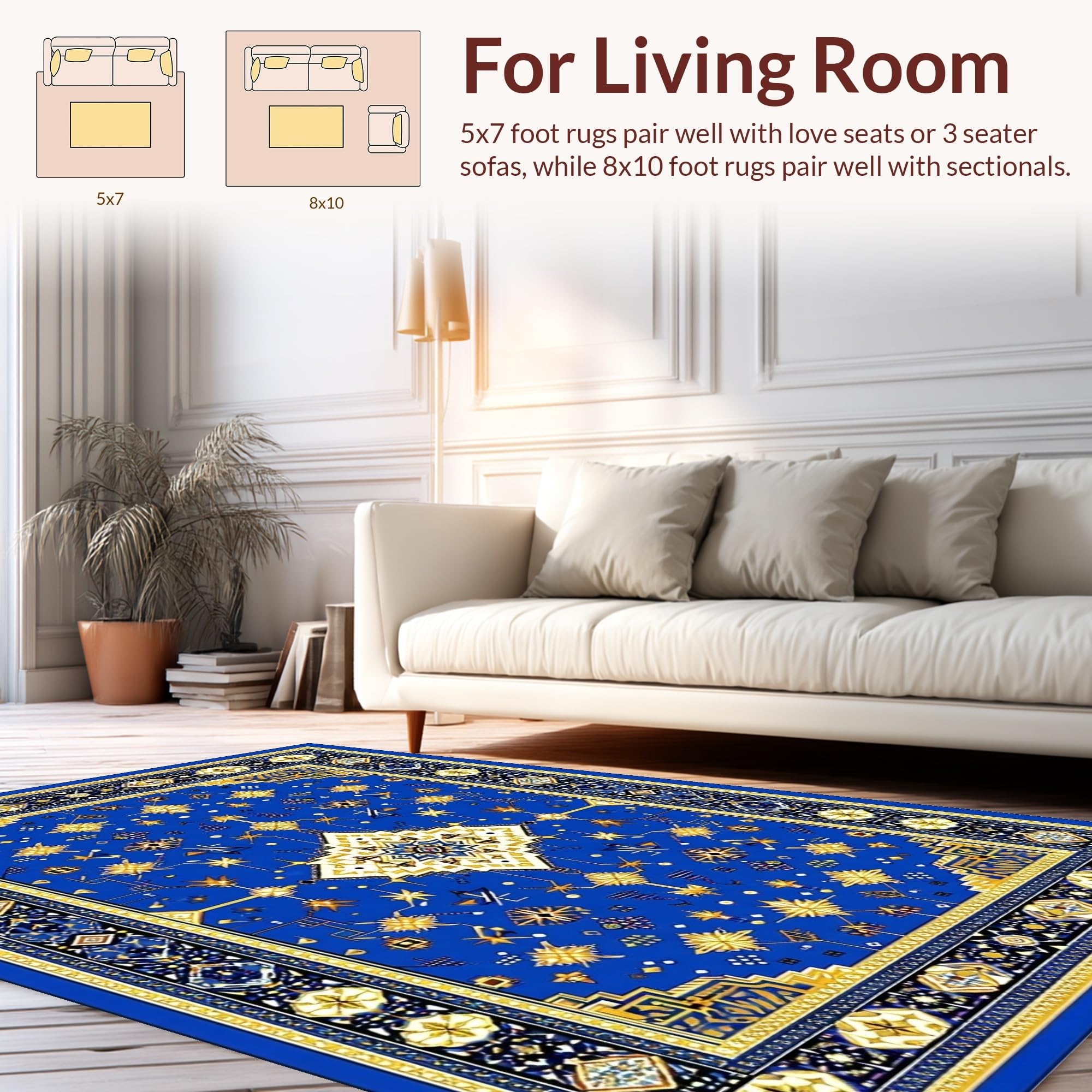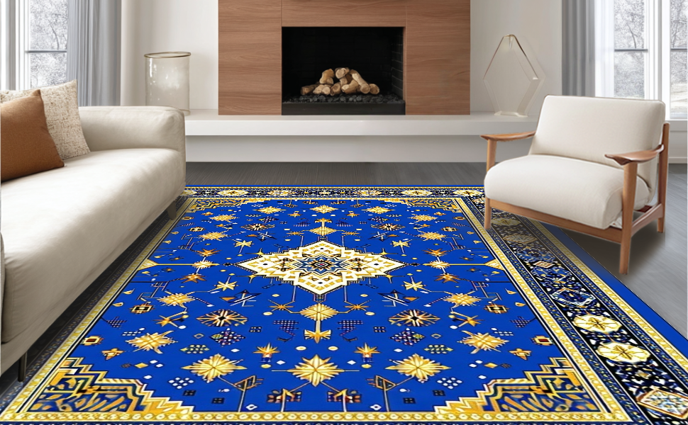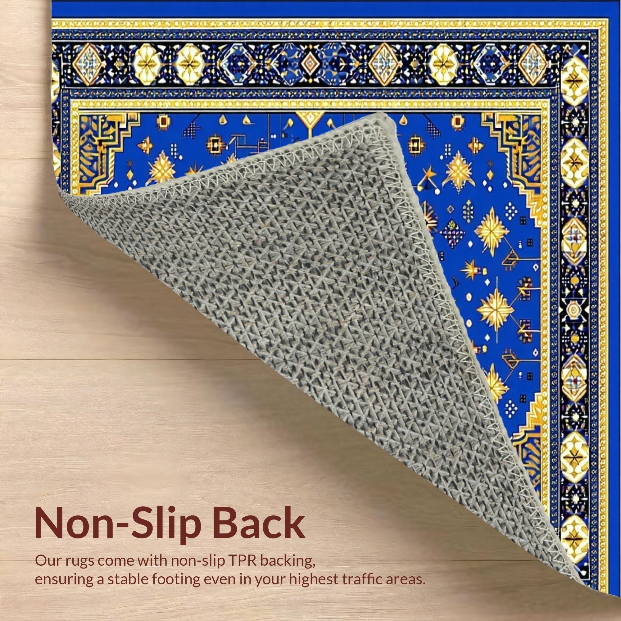 Ultra Soft Area Rug, Non Slip, Stain Resistant, Washable Area Rugs for Living Room, Bedroom, Cultural Ramadan Geometric Style(Blue) Overview: