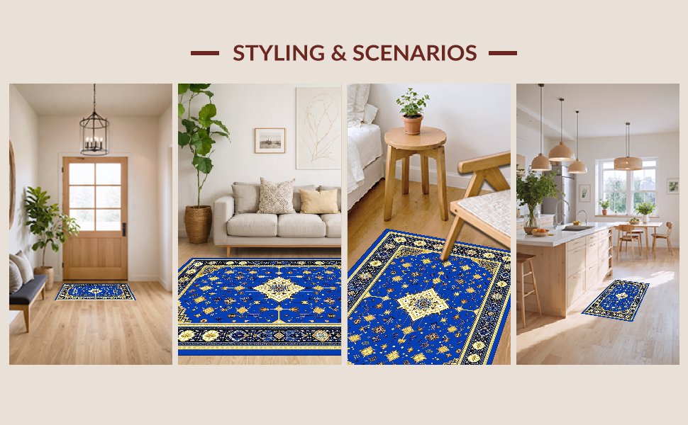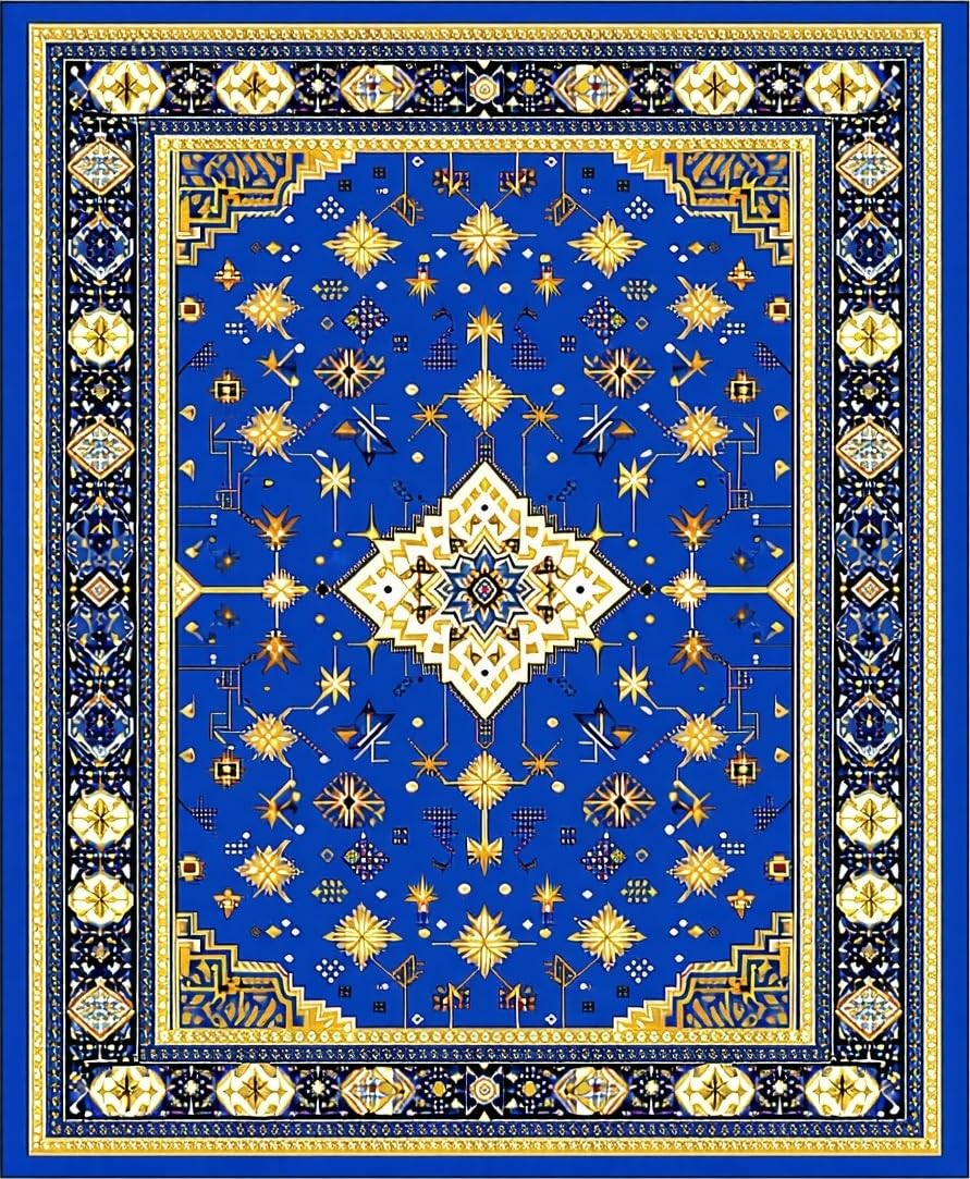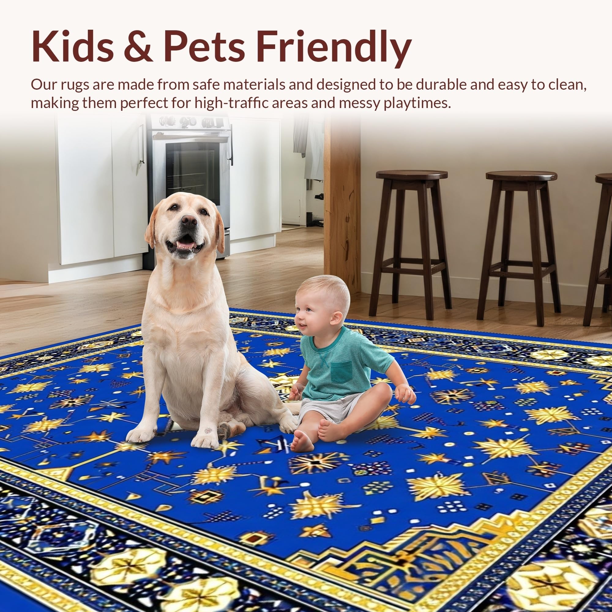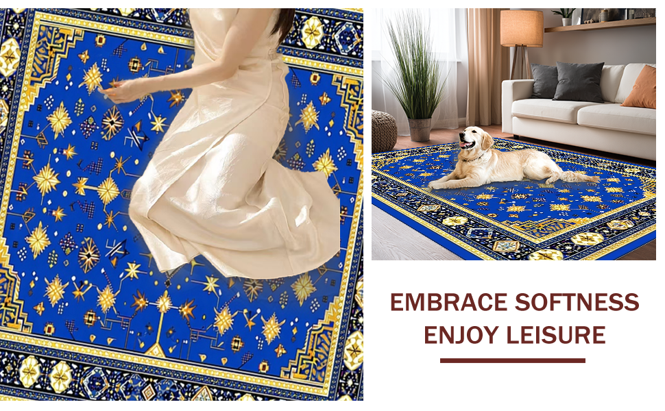 Ultra Soft Area Rug, Non Slip, Stain Resistant, Washable Area Rugs for Living Room, Bedroom, Cultural Ramadan Geometric Style(Blue) Overview: