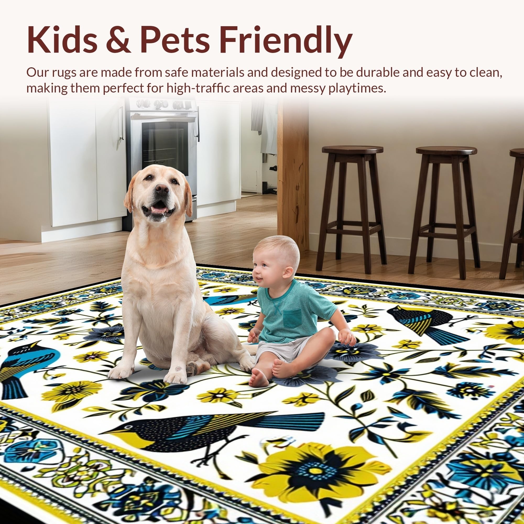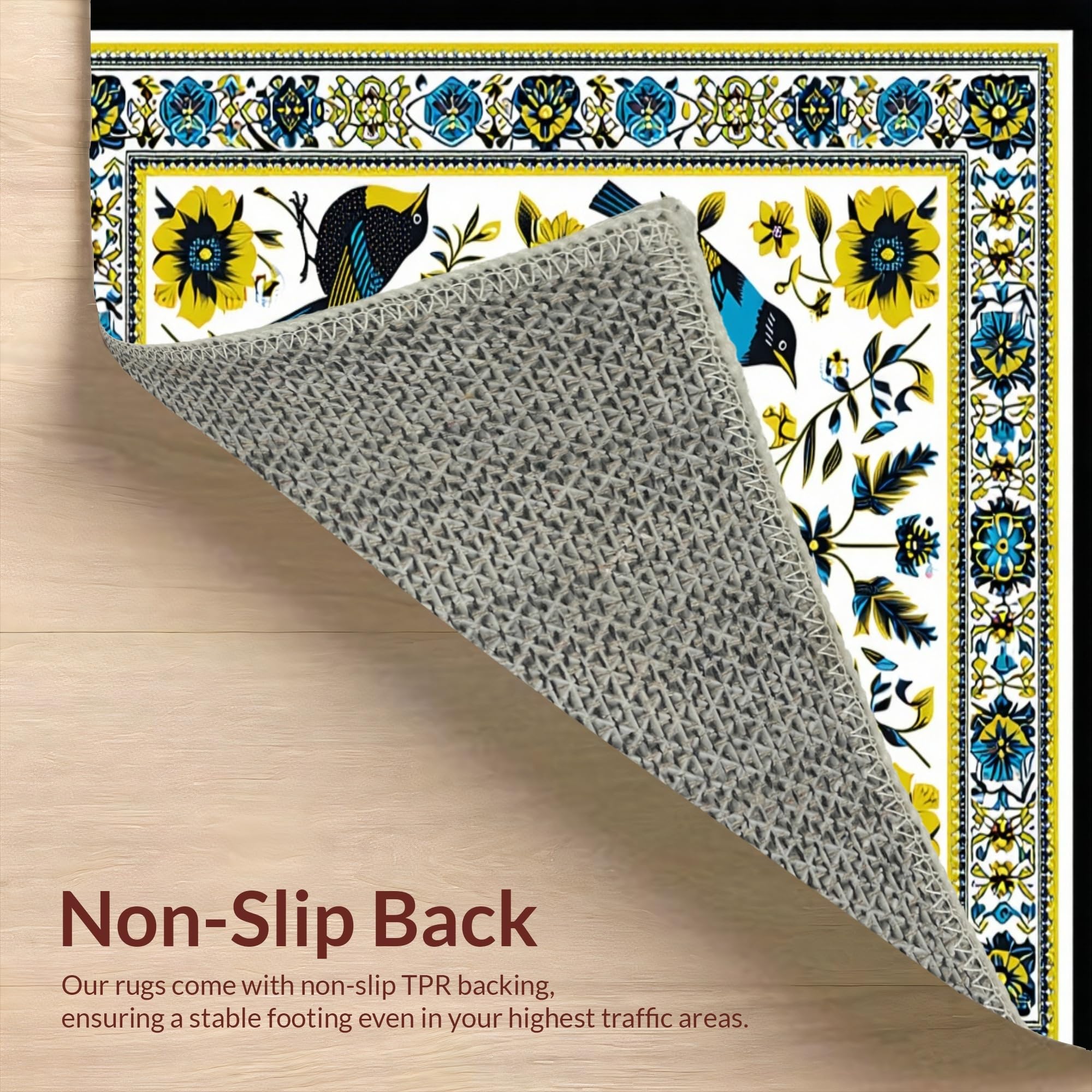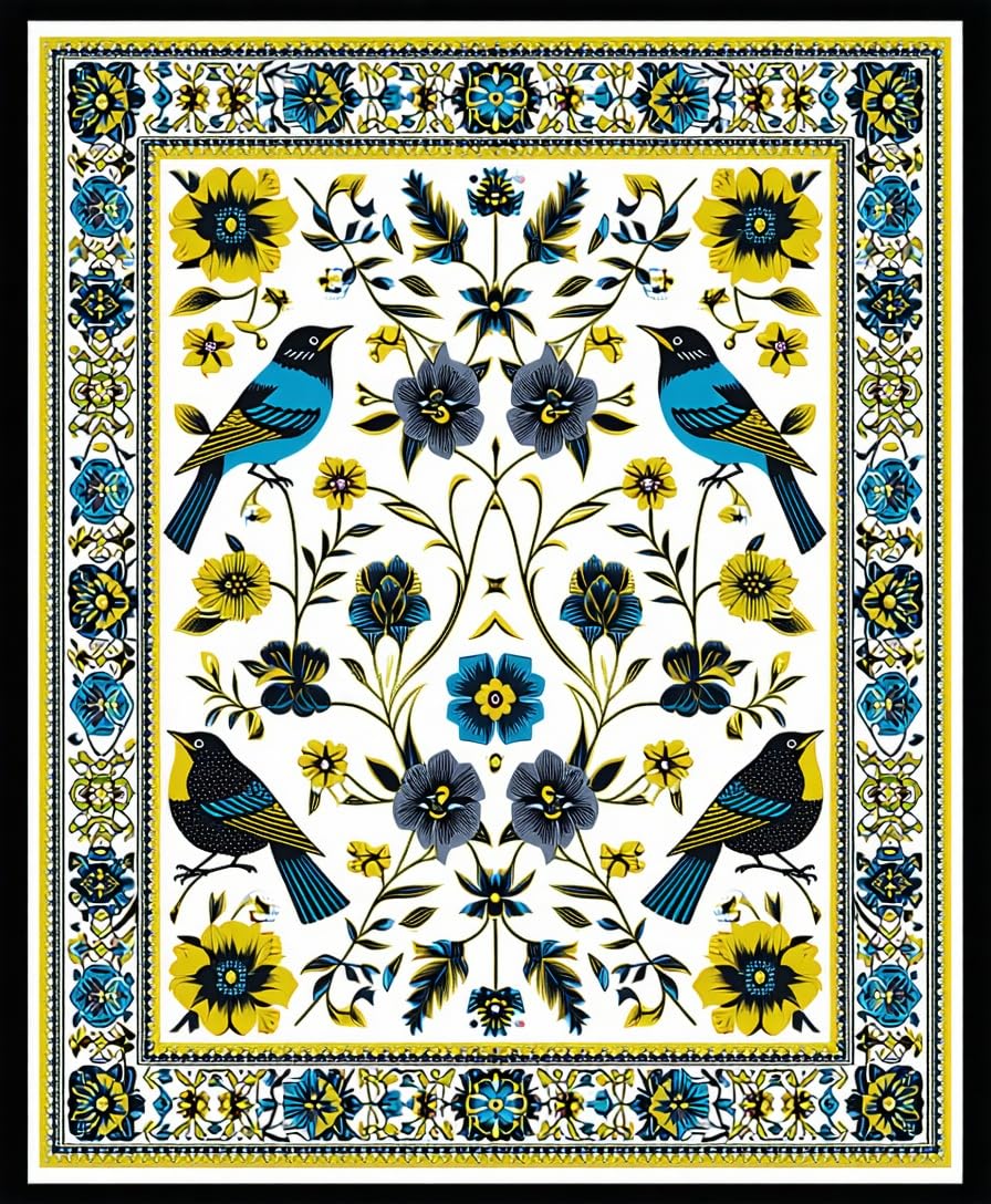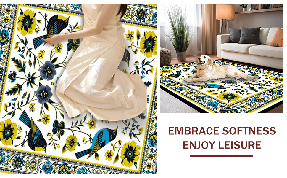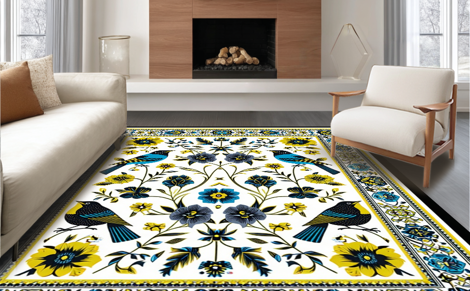 Ultra Soft Area Rug, Non Slip, Stain Resistant, Washable Area Rugs for Living Room, Bedroom, Cultural Tropical Bird Motif(White) Overview: