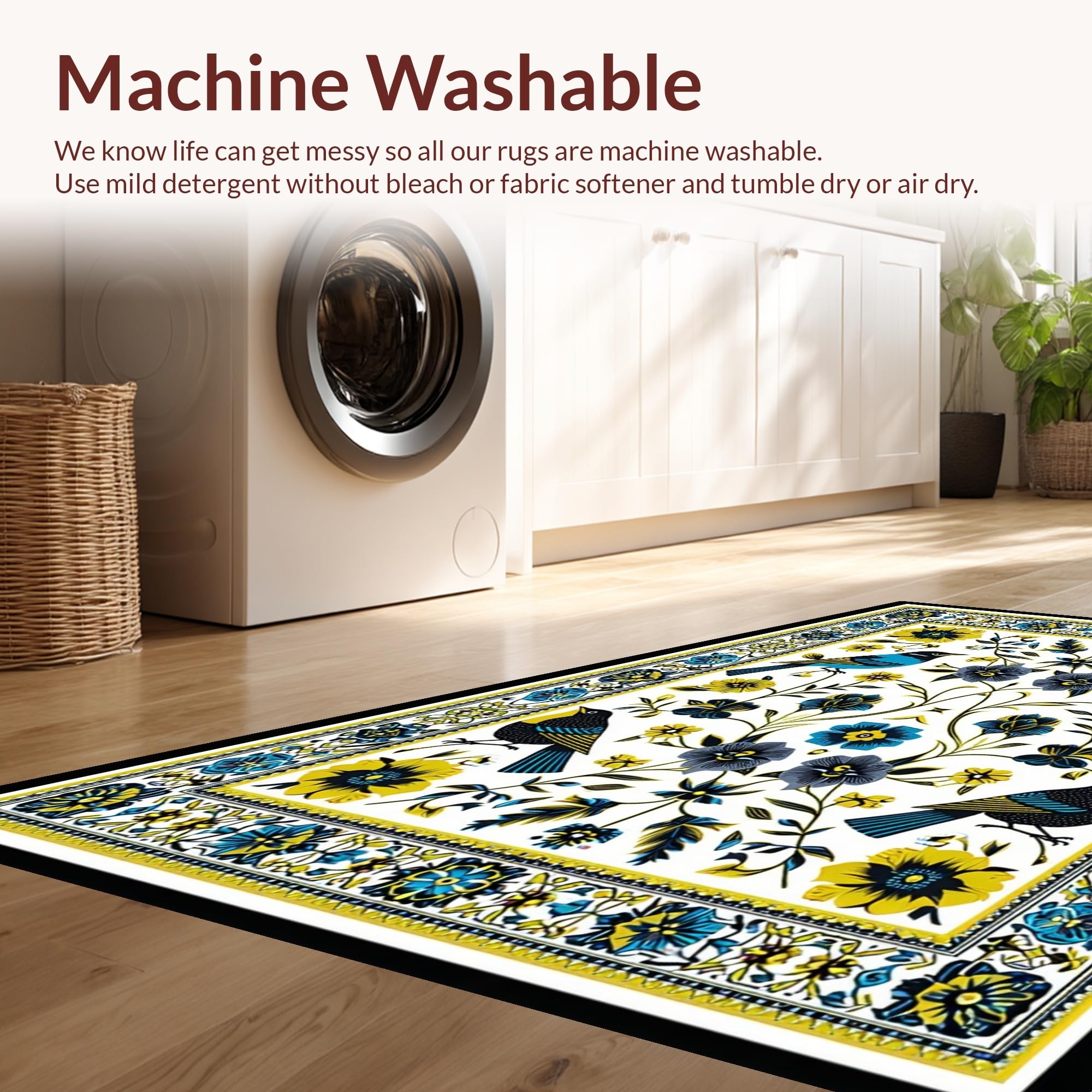 - Machine Washable: Our rugs can be easily thrown in the wash machine.
