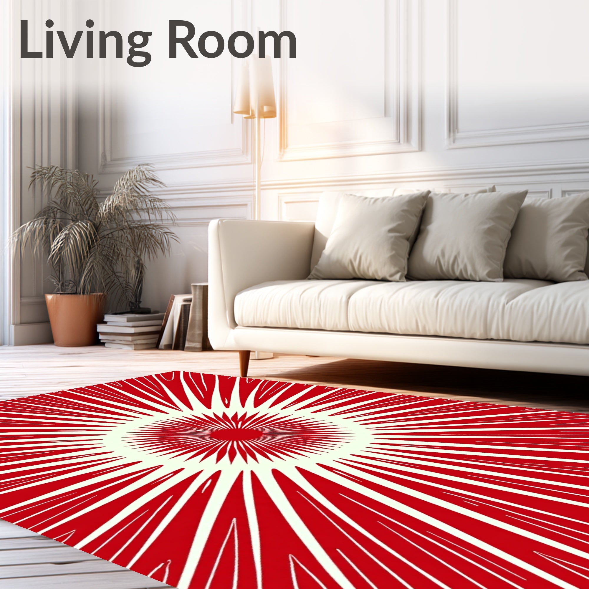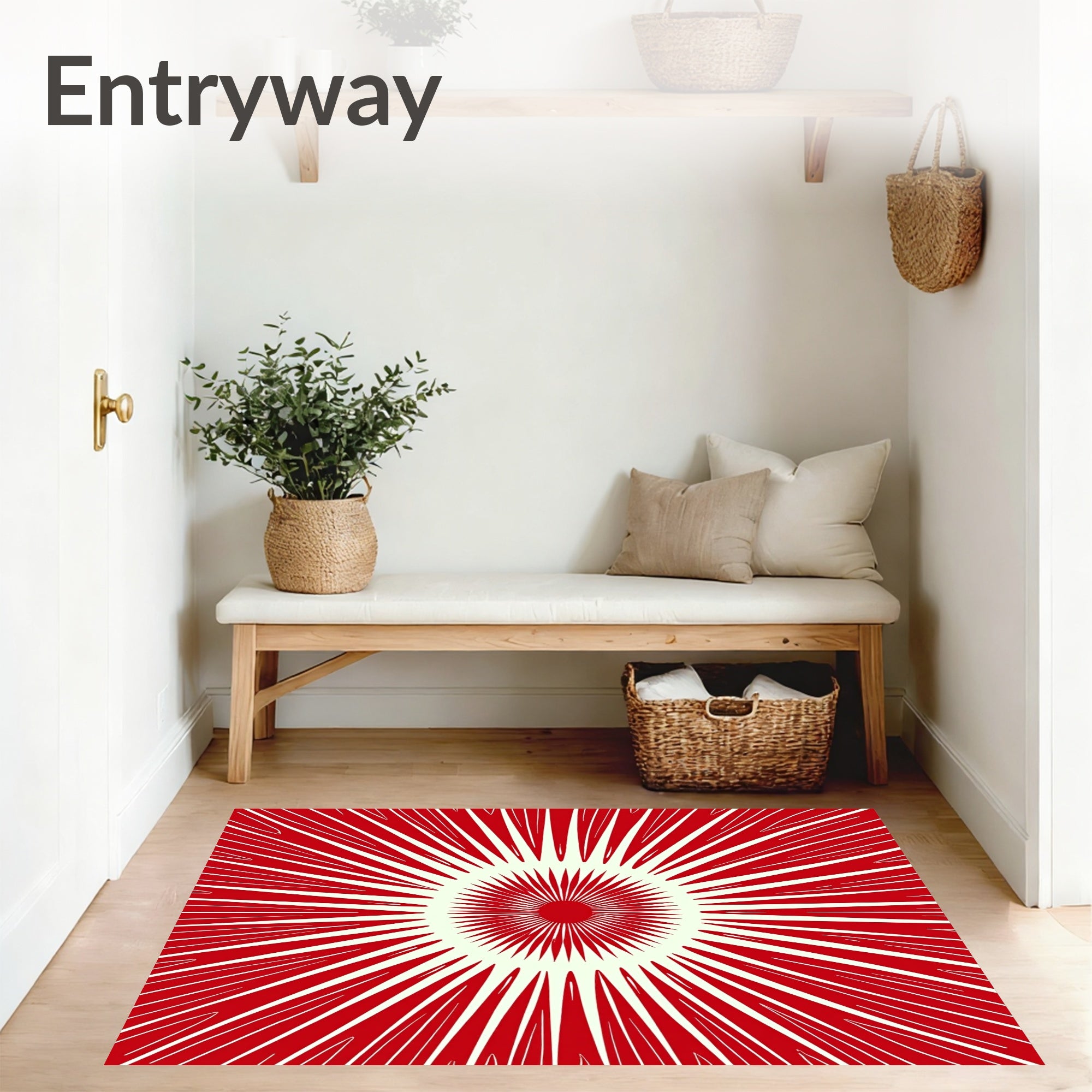 Ultra Soft Area Rug, Non Slip, Stain Resistant, Washable Area Rugs for Living Room, Bedroom, Curly Wool Starburst Radial Burst Luxury(Red) Overview: