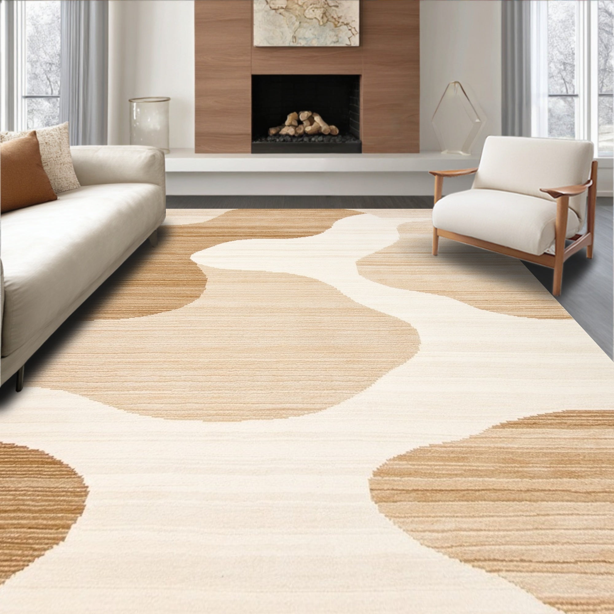 Ultra Soft Area Rug, Non Slip, Stain Resistant, Washable Area Rugs for Living Room, Bedroom, Customizable Beige Woven Sands Design(Beige) Overview:
