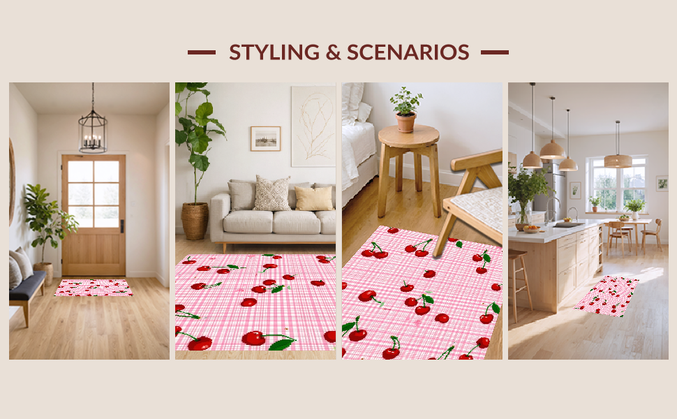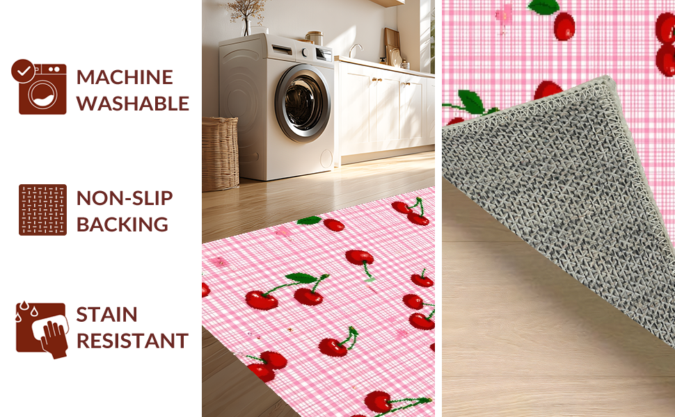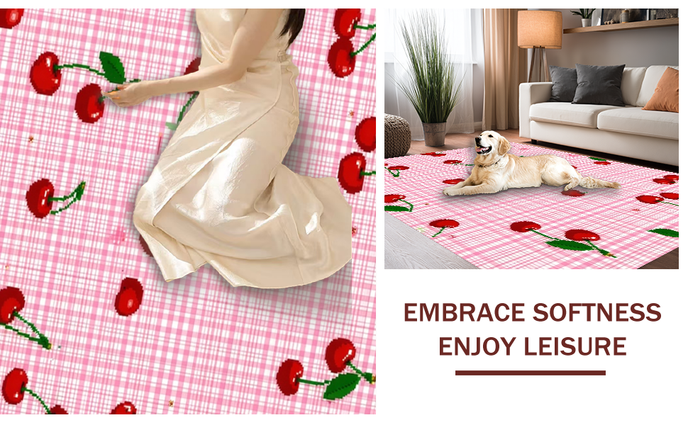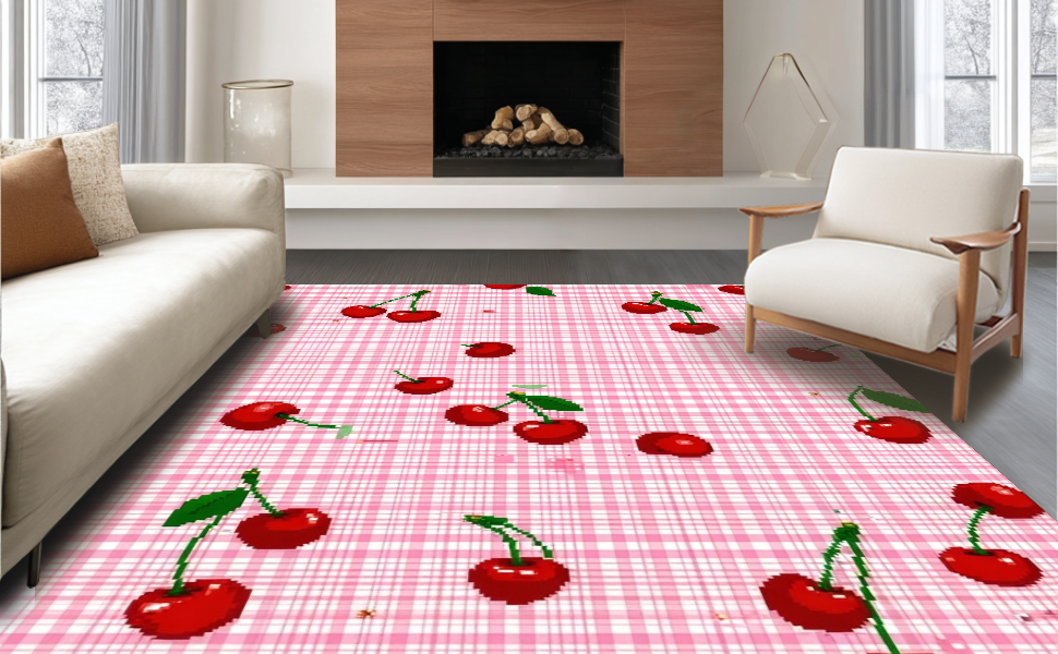 Ultra Soft Area Rug, Non Slip, Stain Resistant, Washable Area Rugs for Living Room, Bedroom, Cute Microfiber Cherry Pattern(Pink) Overview: