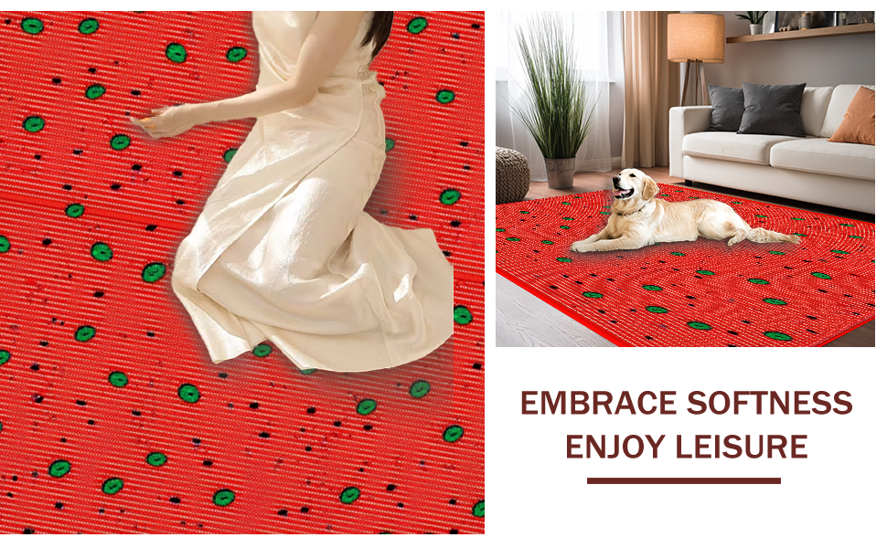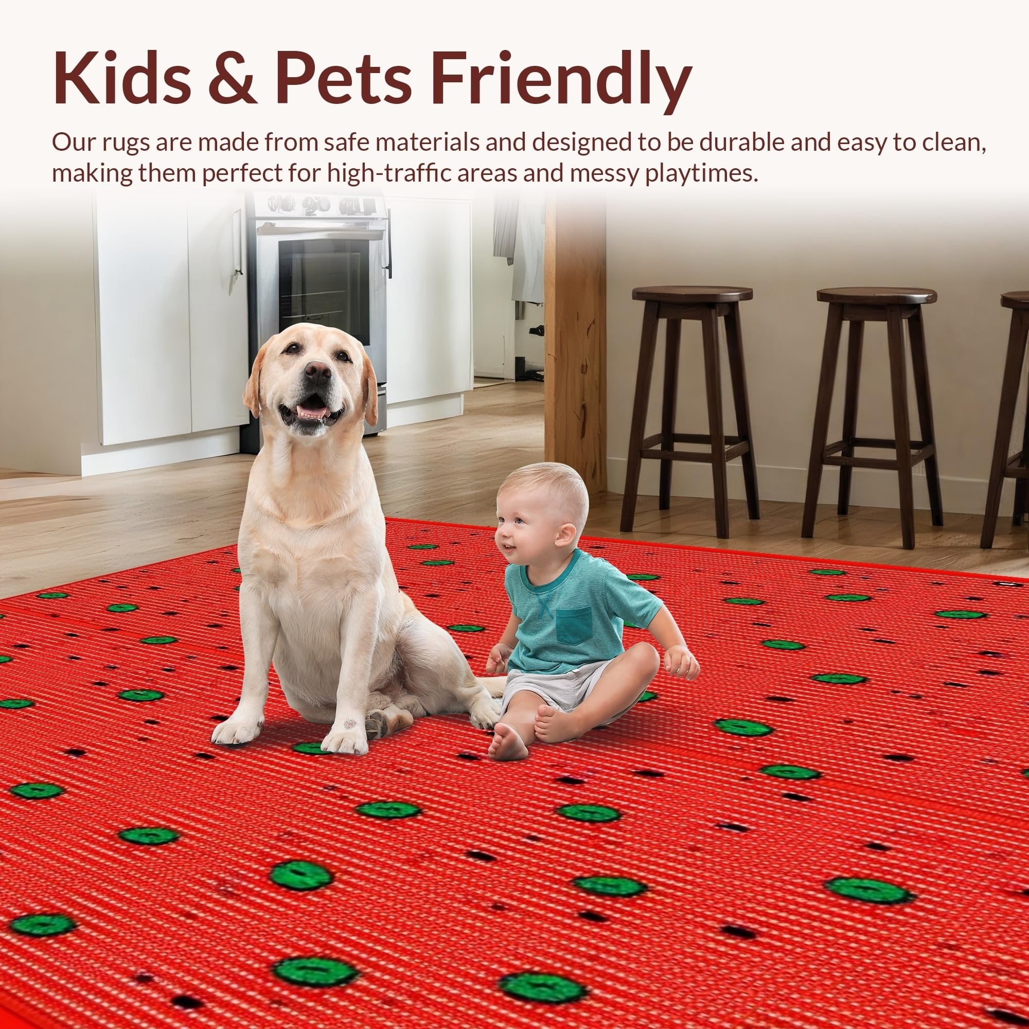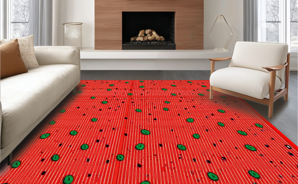 Ultra Soft Area Rug, Non Slip, Stain Resistant, Washable Area Rugs for Living Room, Bedroom, Cute Retro Fruit Motif(Red) Overview: