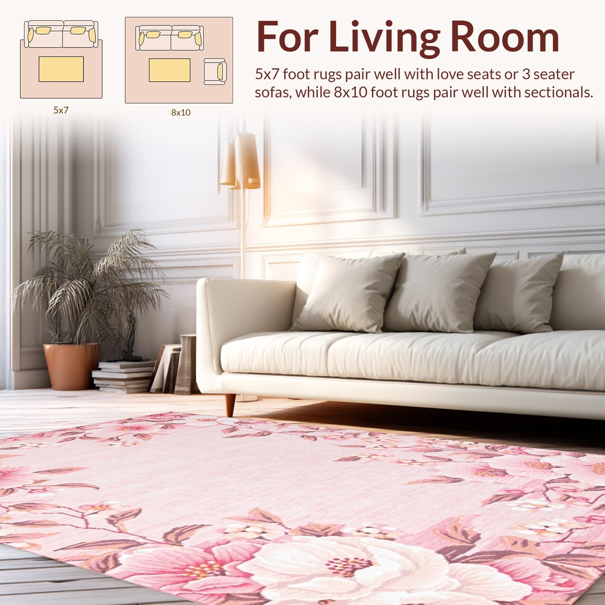 Ultra Soft Area Rug, Non Slip, Stain Resistant, Washable Area Rugs for Living Room, Bedroom, Cute Shaggy Contemporary Flair(Pink) Overview: