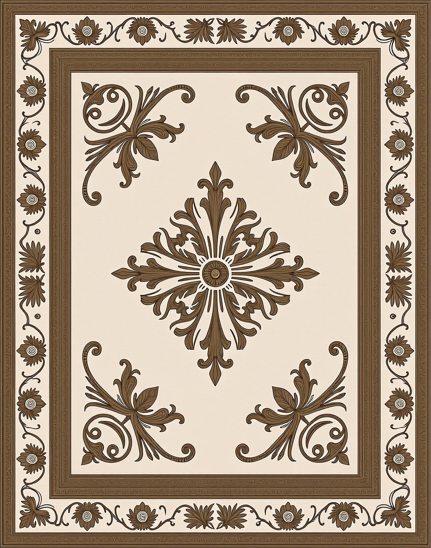 Damask Brocade Style Floor Elegant Paisley Swirl(Beige)