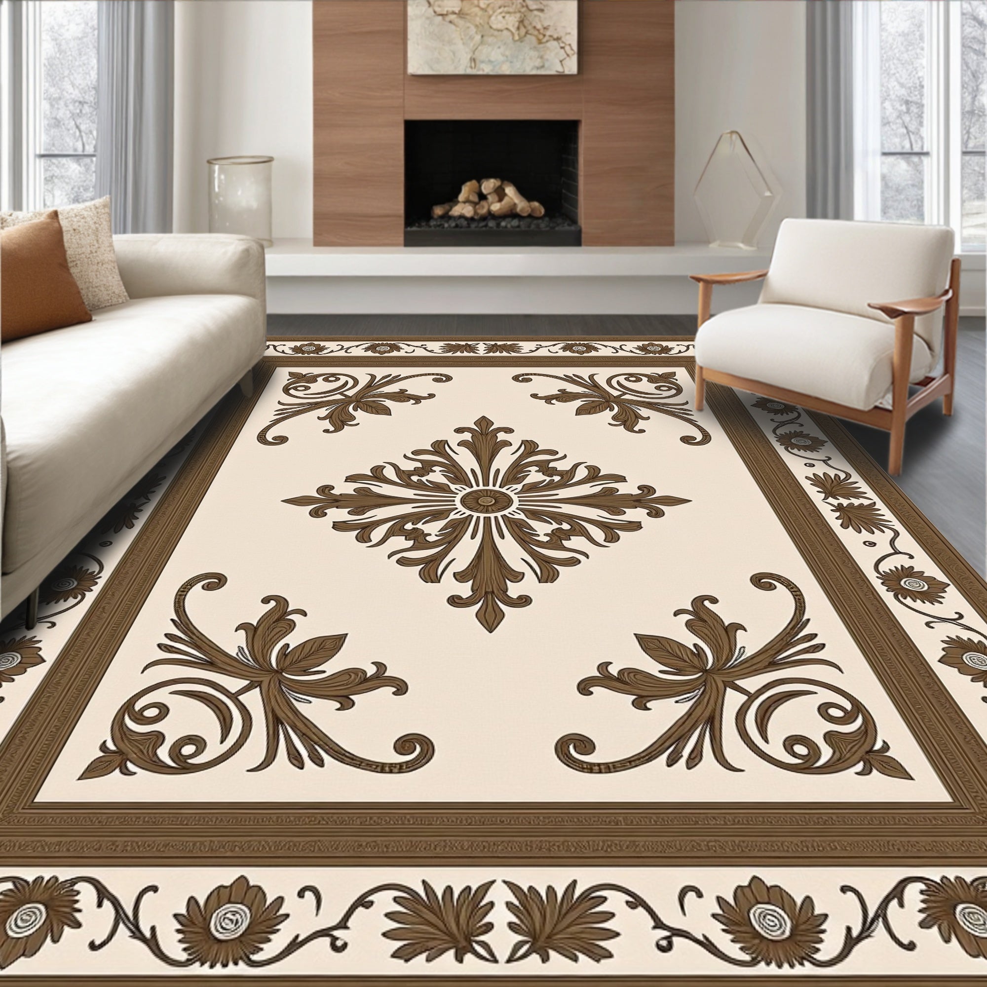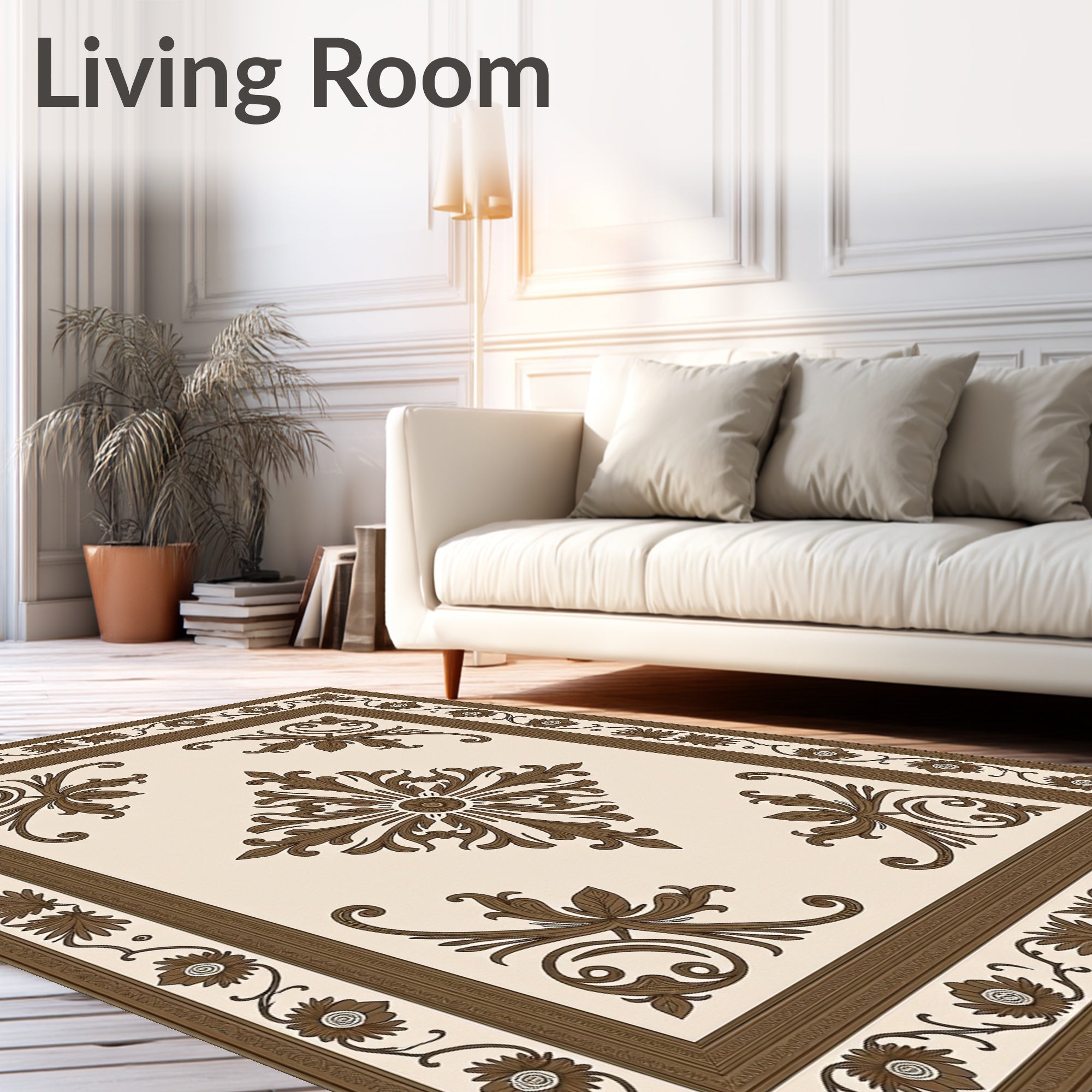 Ultra Soft Area Rug, Non Slip, Stain Resistant, Washable Area Rugs for Living Room, Bedroom, Damask Brocade Style Floor Elegant Paisley Swirl(Beige) Overview: