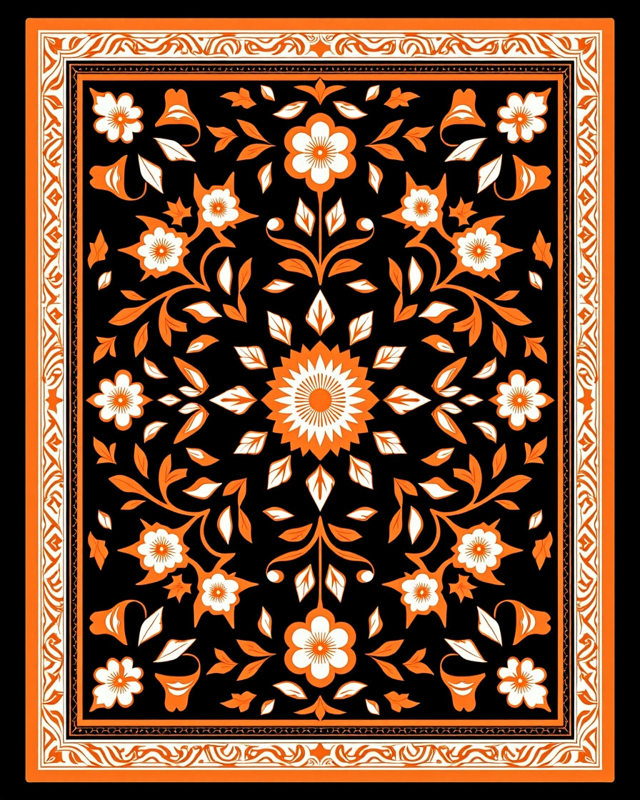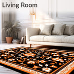 Flatwoven High Traffic Area Rug, Damask Floral with Classic European Elegance, Non Slip, Stain Resistant, Washable Area Rugs for Living Room, Bedroom (Black) Overview: