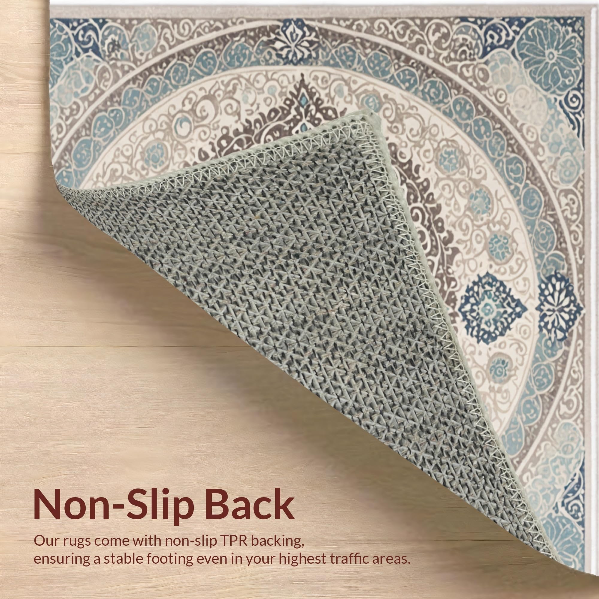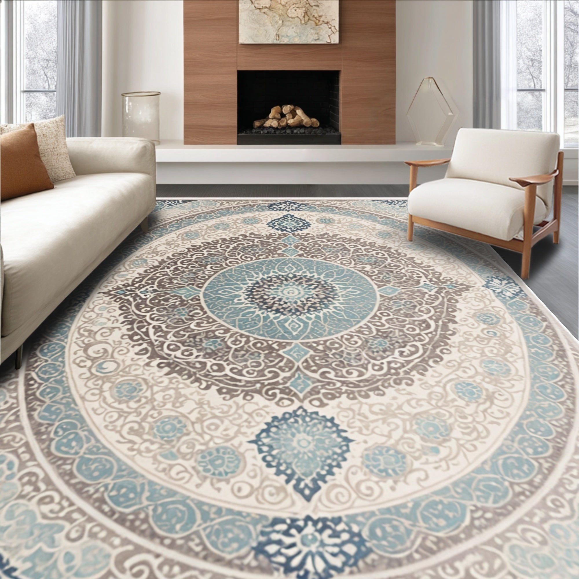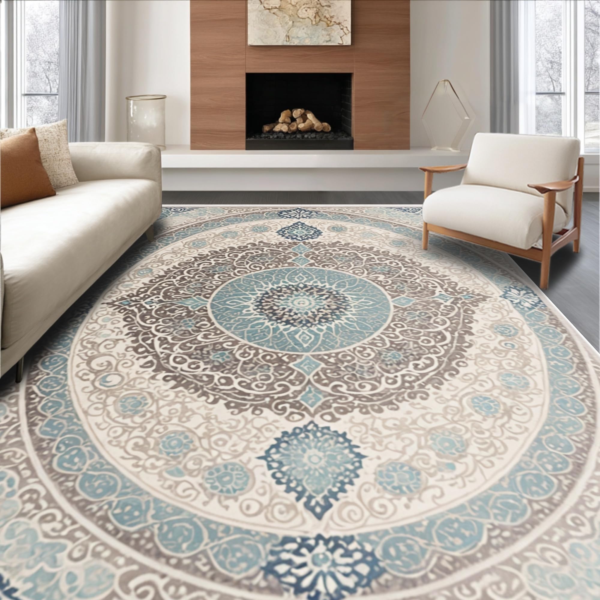 Ultra Soft Area Rug, Non Slip, Stain Resistant, Washable Area Rugs for Living Room, Bedroom, Damask Grey and Teal Office Stain-Resistant Carpet(Beige) Overview: