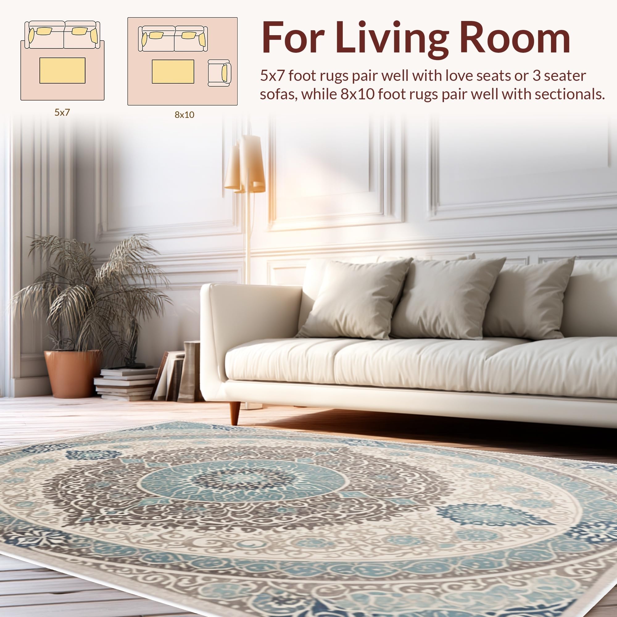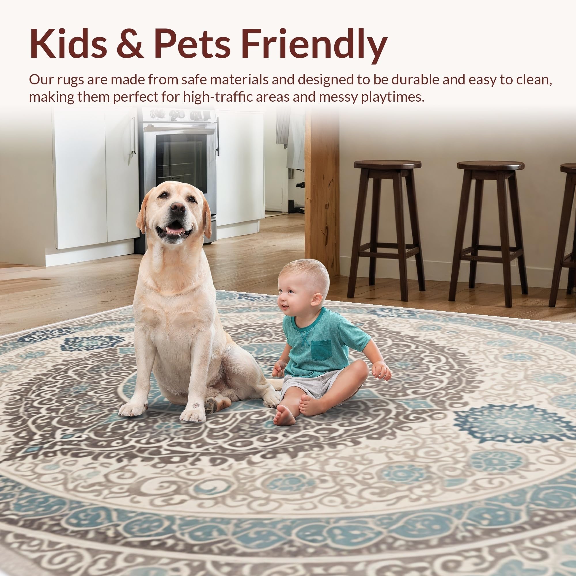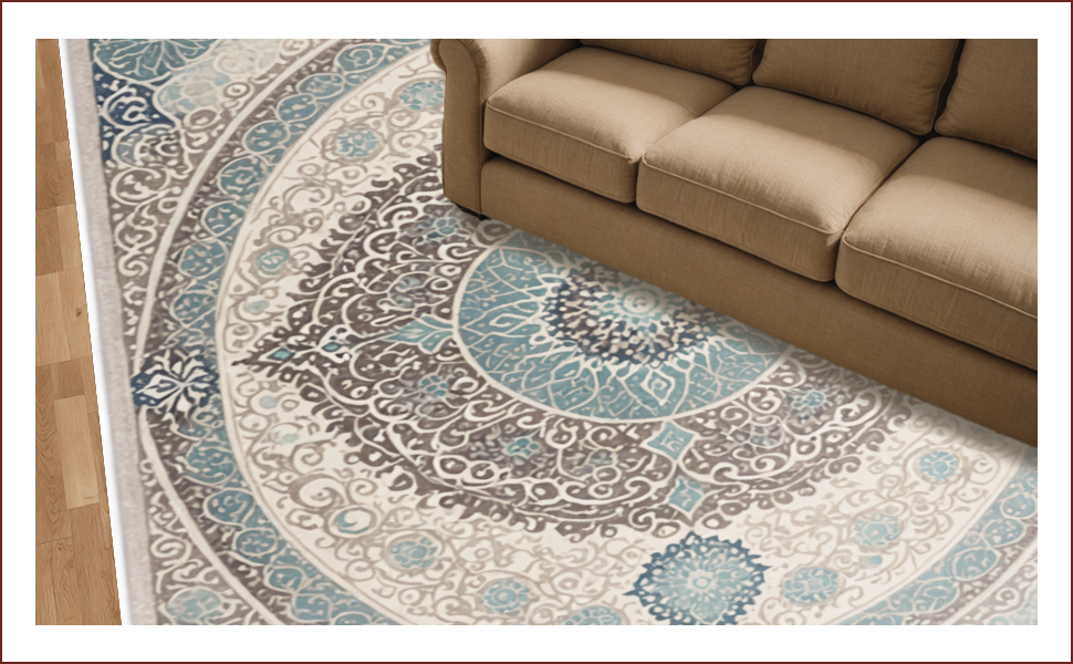 Ultra Soft Area Rug, Non Slip, Stain Resistant, Washable Area Rugs for Living Room, Bedroom, Damask Grey and Teal Office Stain-Resistant Carpet(Beige) Overview: