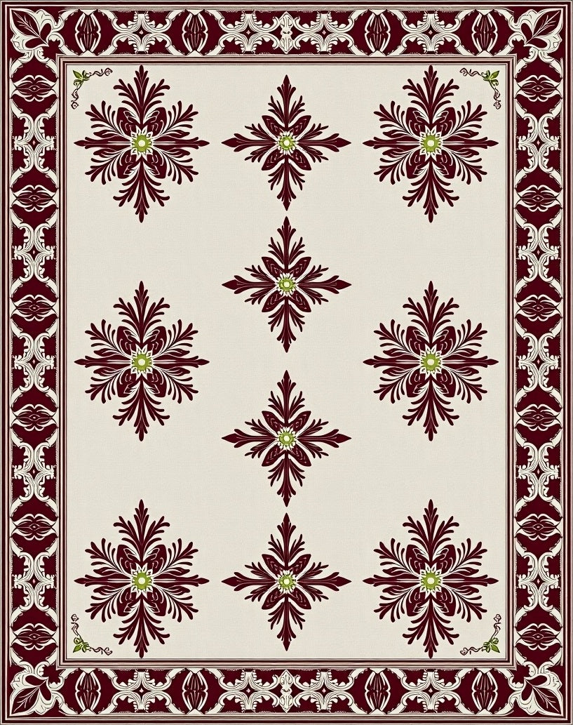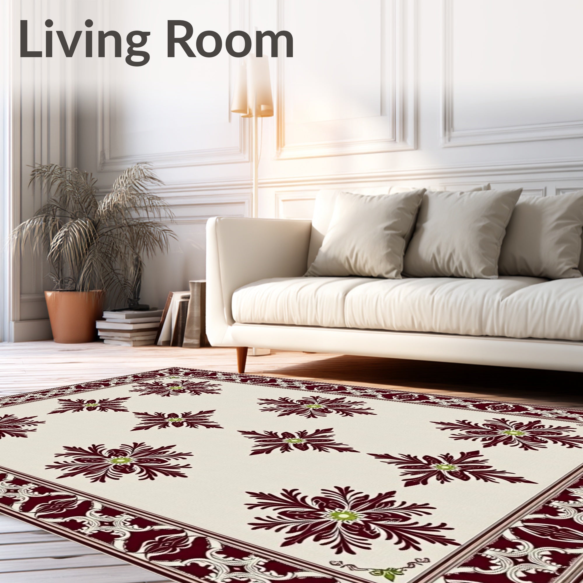 Ultra Soft Area Rug, Non Slip, Stain Resistant, Washable Area Rugs for Living Room, Bedroom, Damask Palmette with Symmetrical Garden Flourishes(Ivory) Overview: