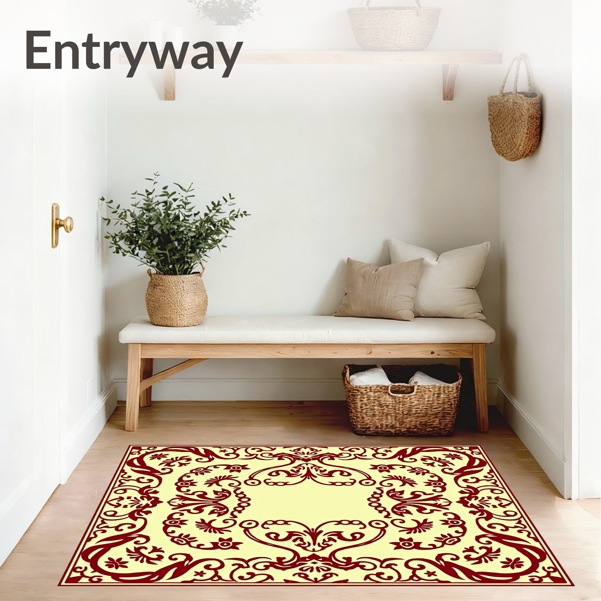 Damask Scroll Work Easy Clean Floor with Elegant Curves(Beige)