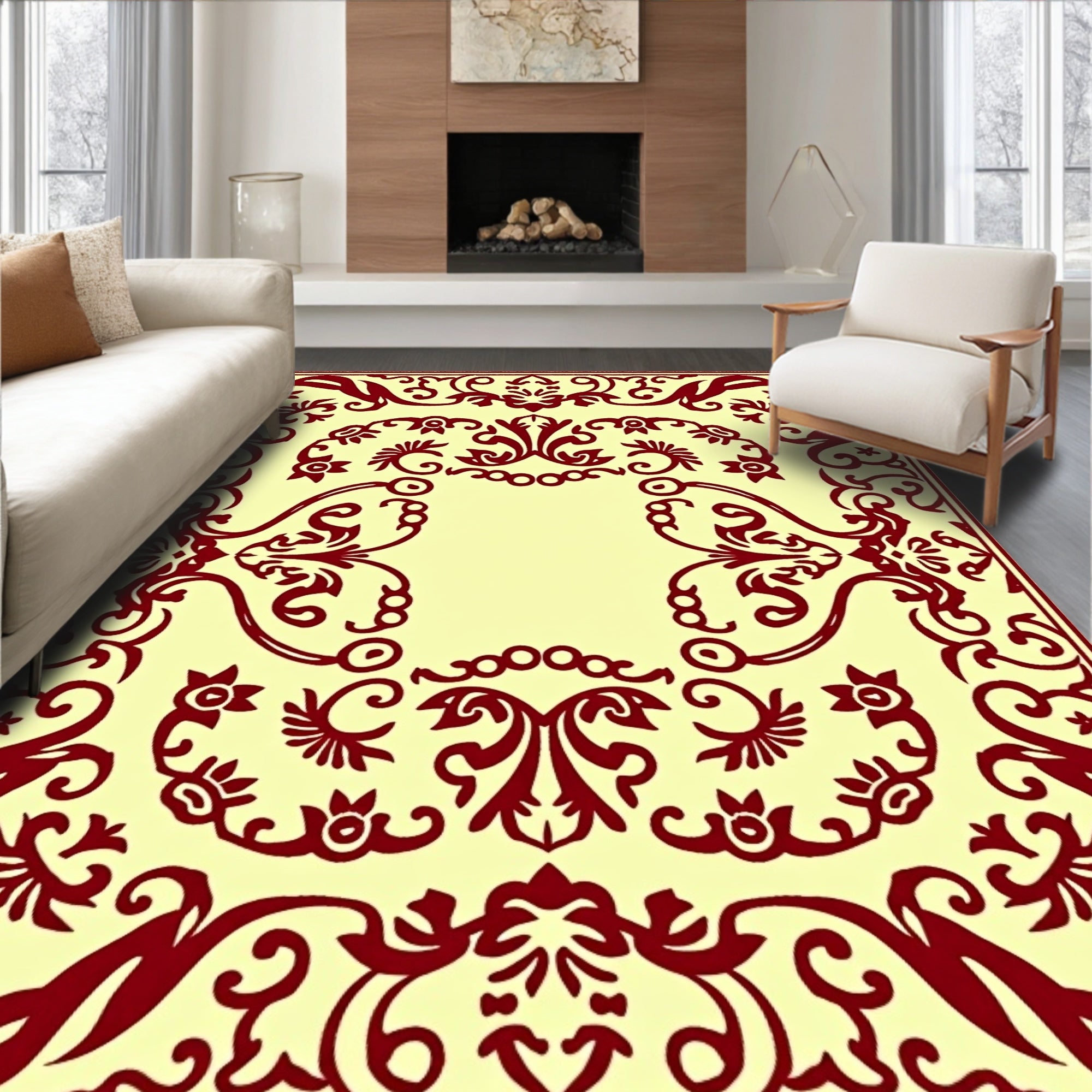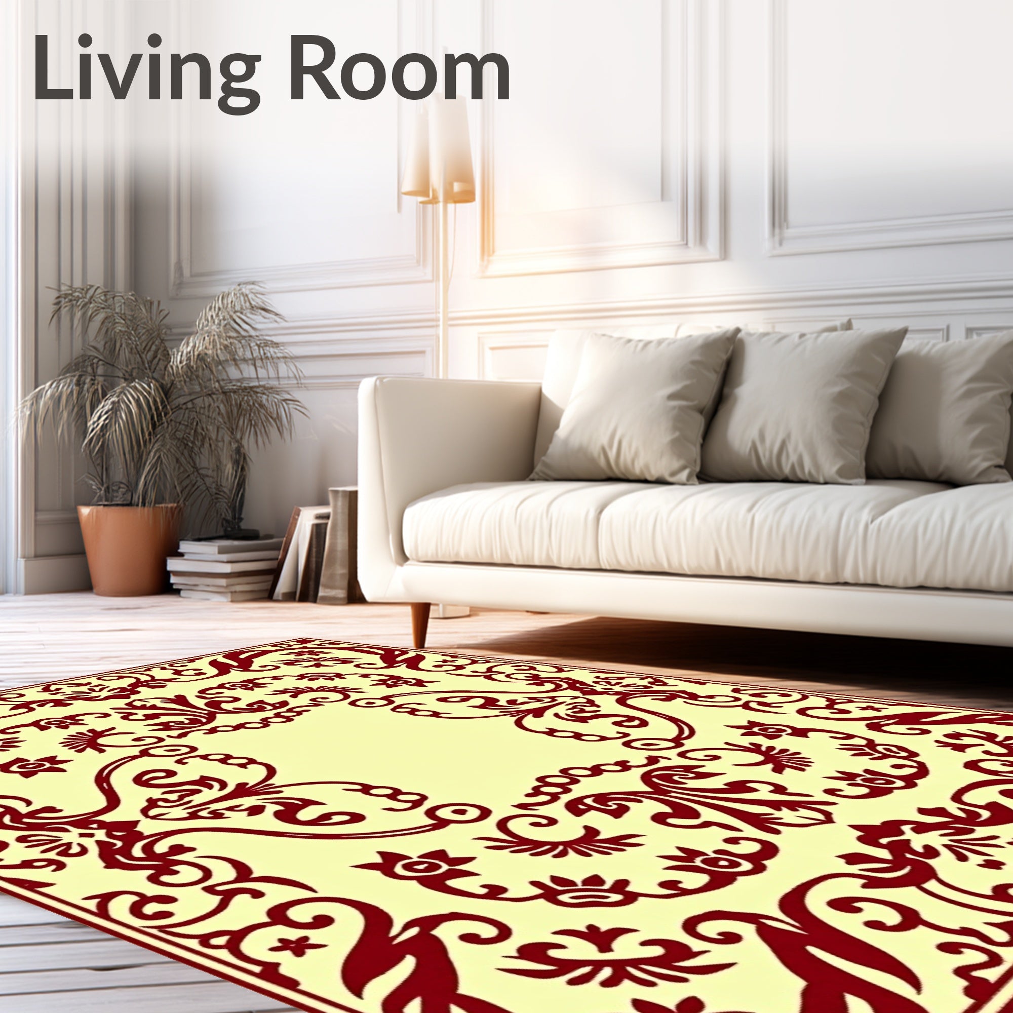 Ultra Soft Area Rug, Non Slip, Stain Resistant, Washable Area Rugs for Living Room, Bedroom, Damask Scroll Work Easy Clean Floor with Elegant Curves(Beige) Overview: