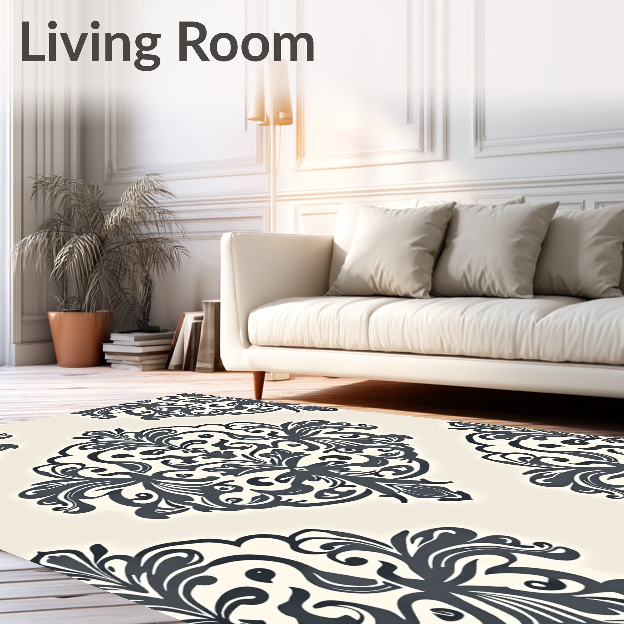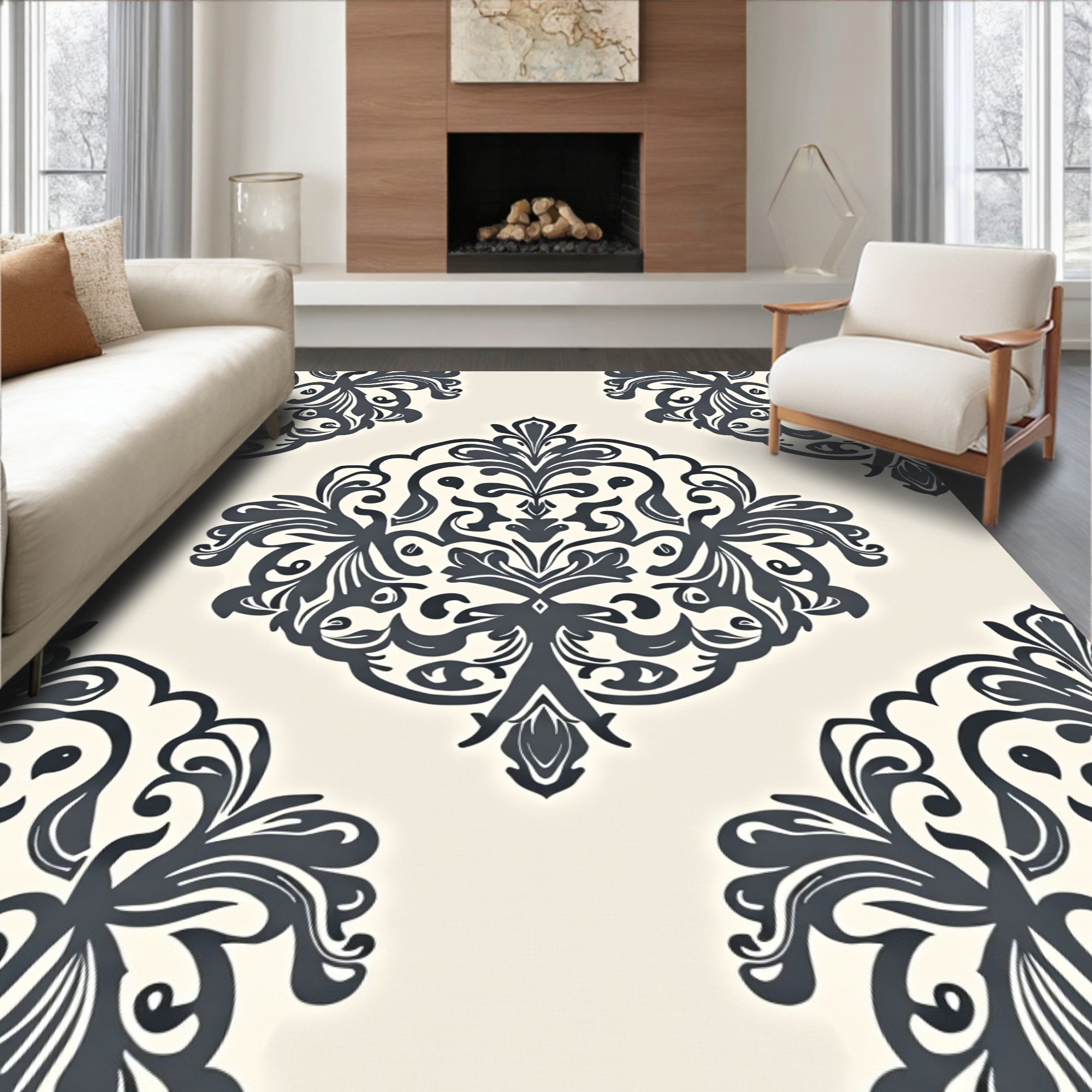 Ultra Soft Area Rug, Non Slip, Stain Resistant, Washable Area Rugs for Living Room, Bedroom, Damask Scrollwork Anti Slip Floor(Gray) Overview: