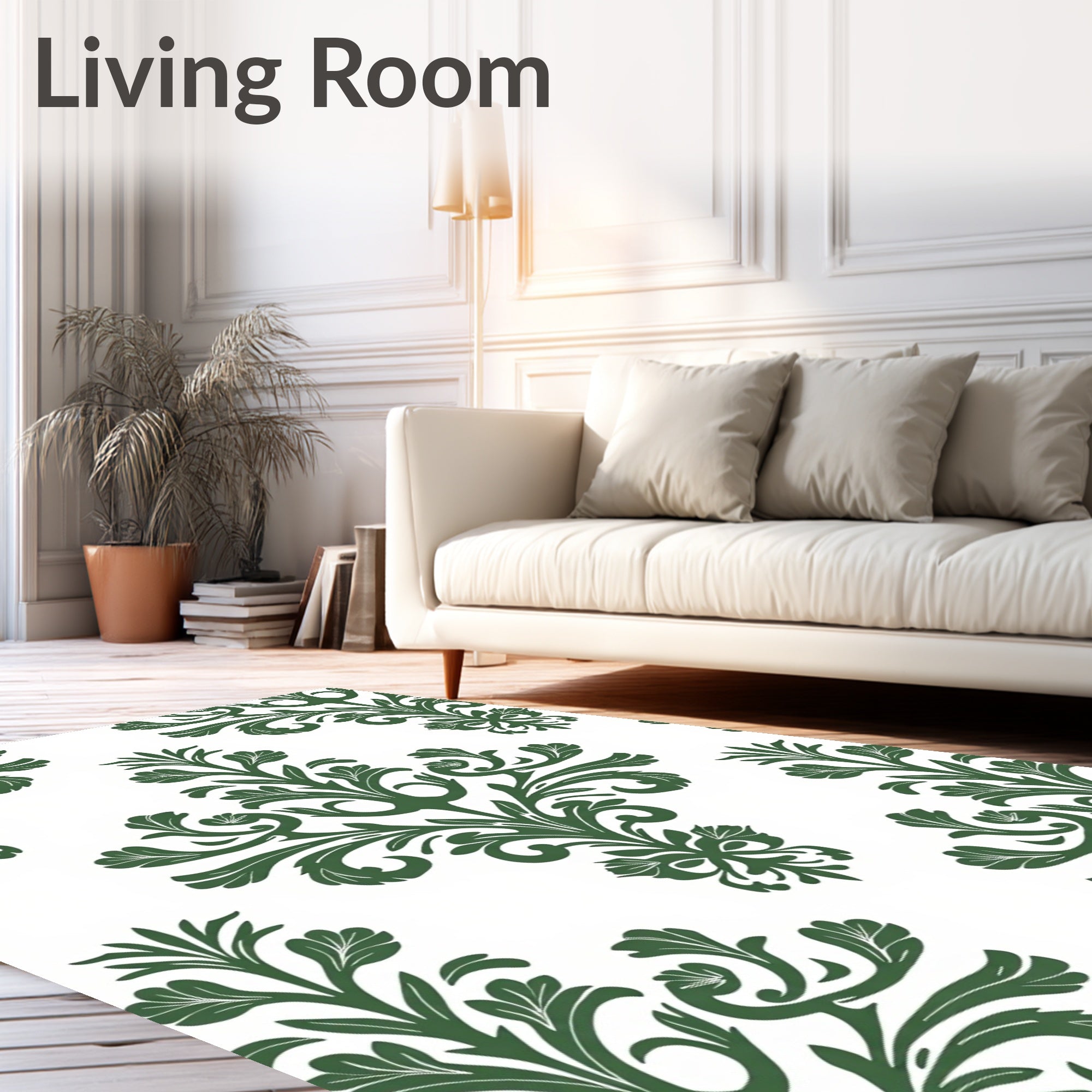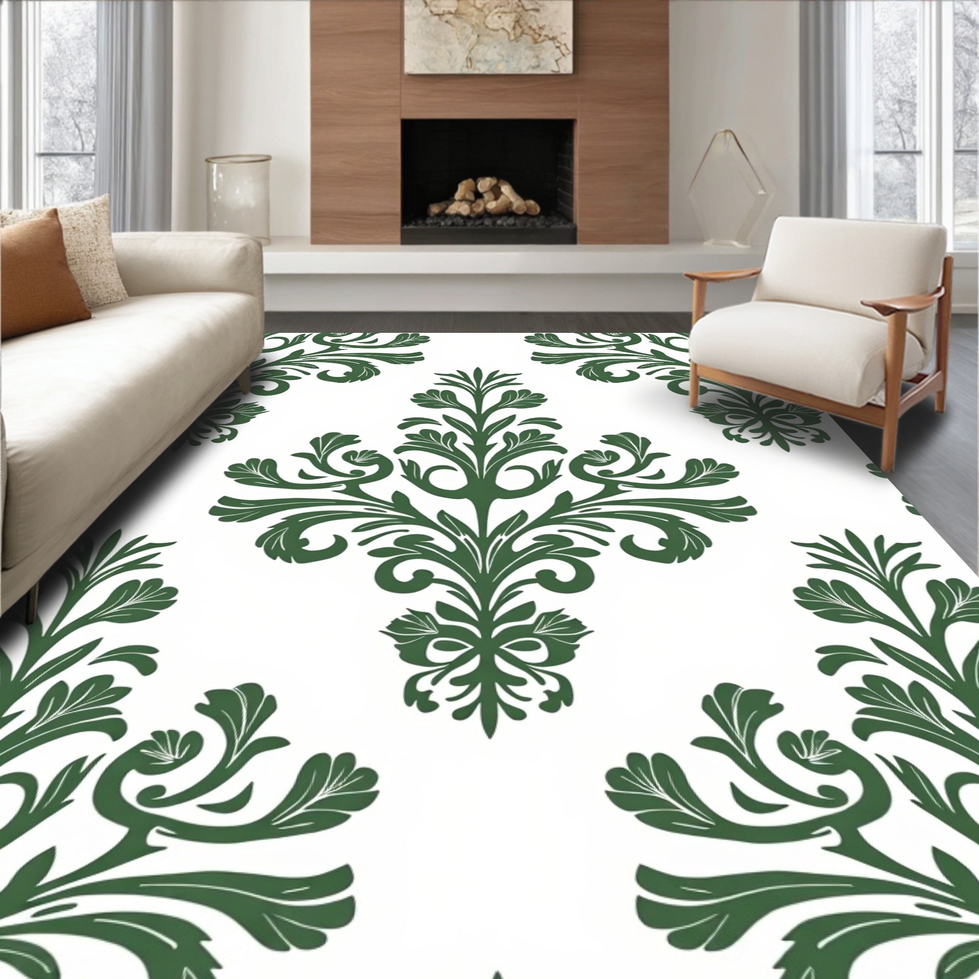 Ultra Soft Area Rug, Non Slip, Stain Resistant, Washable Area Rugs for Living Room, Bedroom, Damask Scrollwork Design with Botanical(Green) Overview: