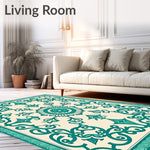 Ultra Soft Area Rug, Non Slip, Stain Resistant, Washable Area Rugs for Living Room, Bedroom, Damask Scrollwork Heirloom Classic Distressed Flooring(Ivory) Overview: