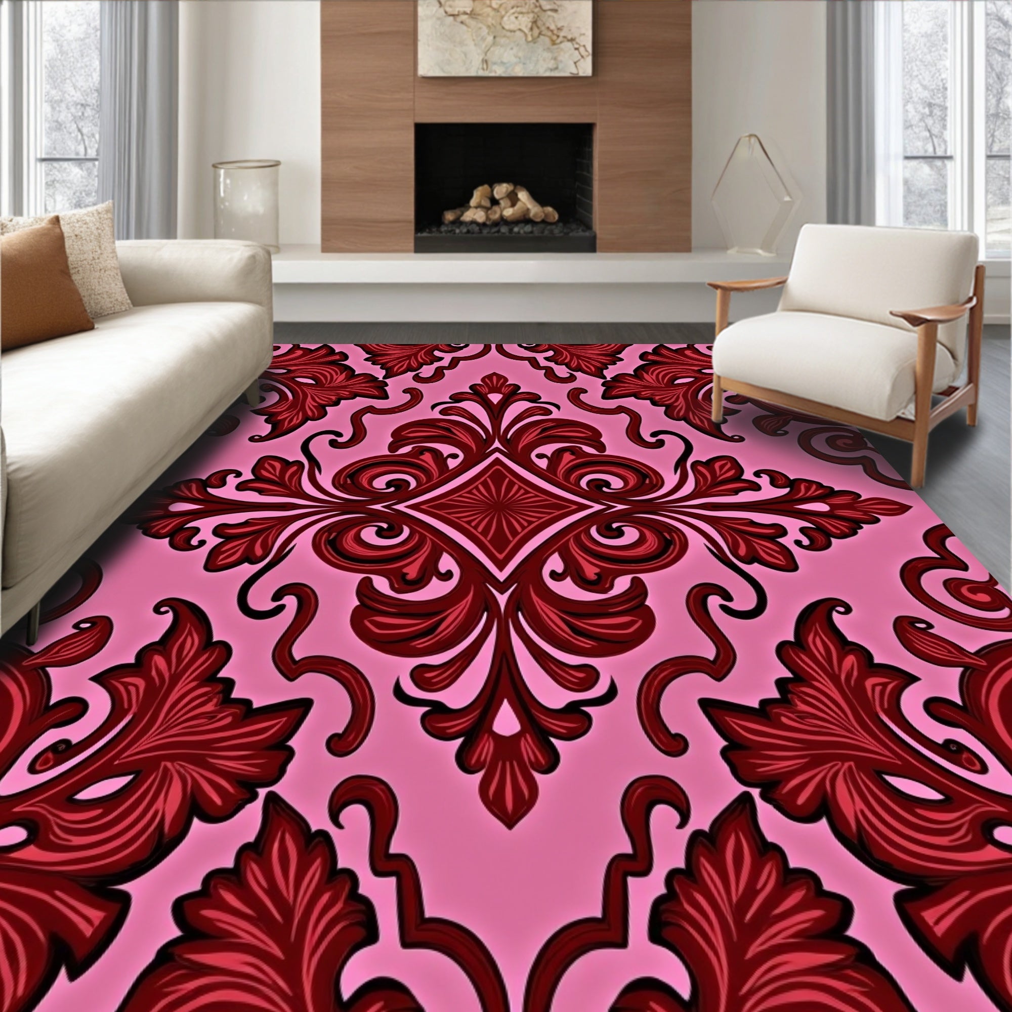 Flatwoven High Traffic Area Rug, Damask Swirl Ultramodern Exclusive Showpiece, Non Slip, Stain Resistant, Washable Area Rugs for Living Room, Bedroom (Pink) Overview: