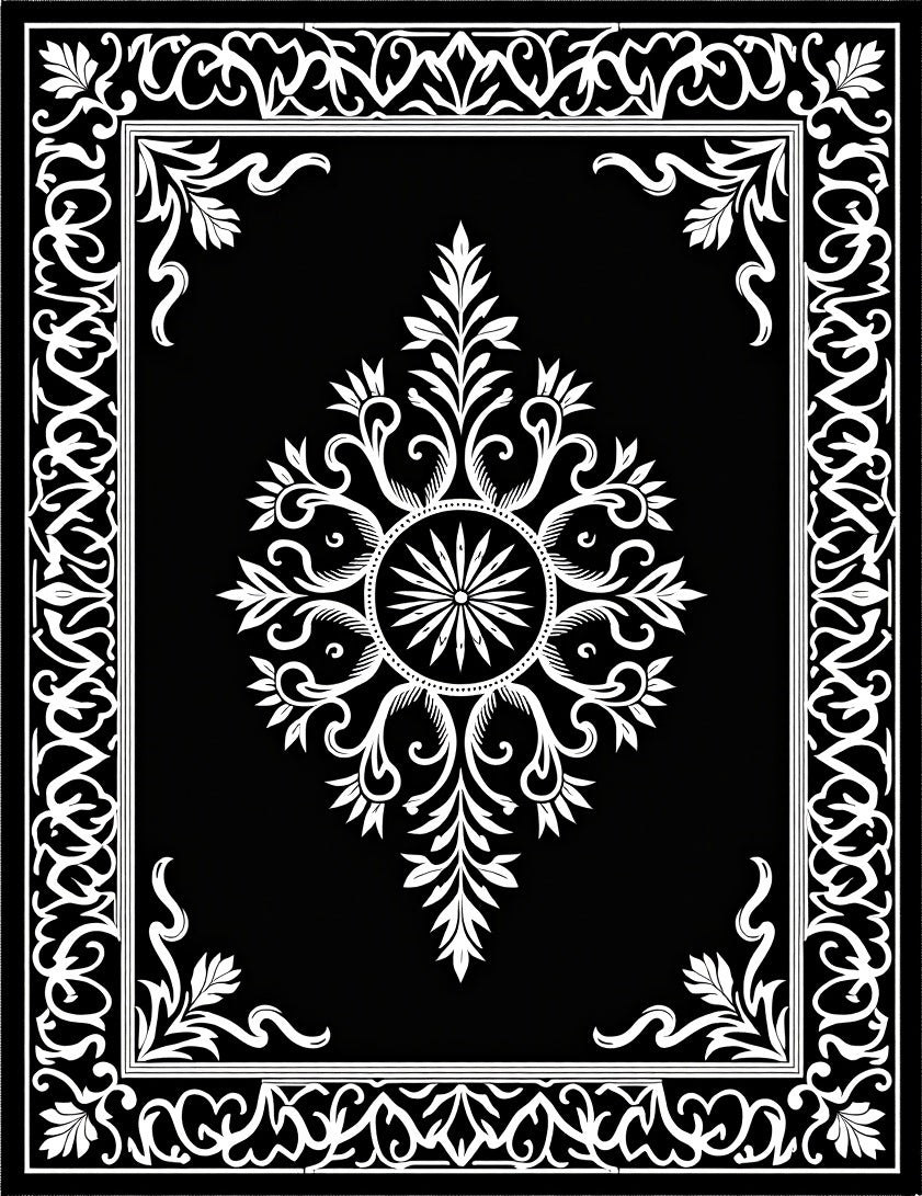 Damask Vinework with Ornate Botanical Scrolls(Black)