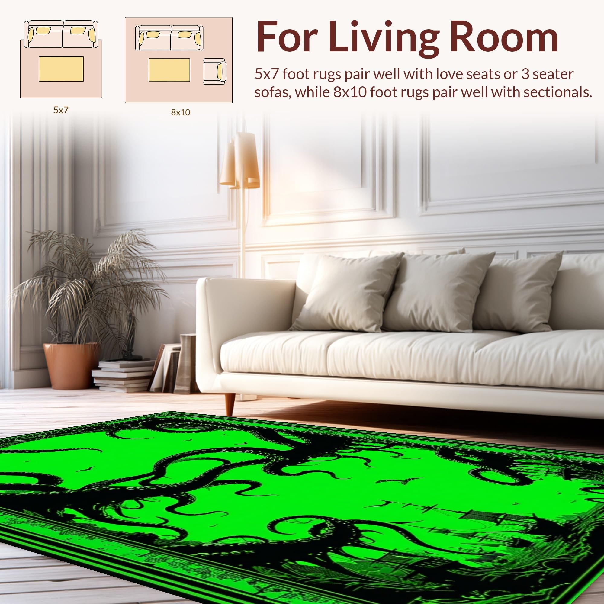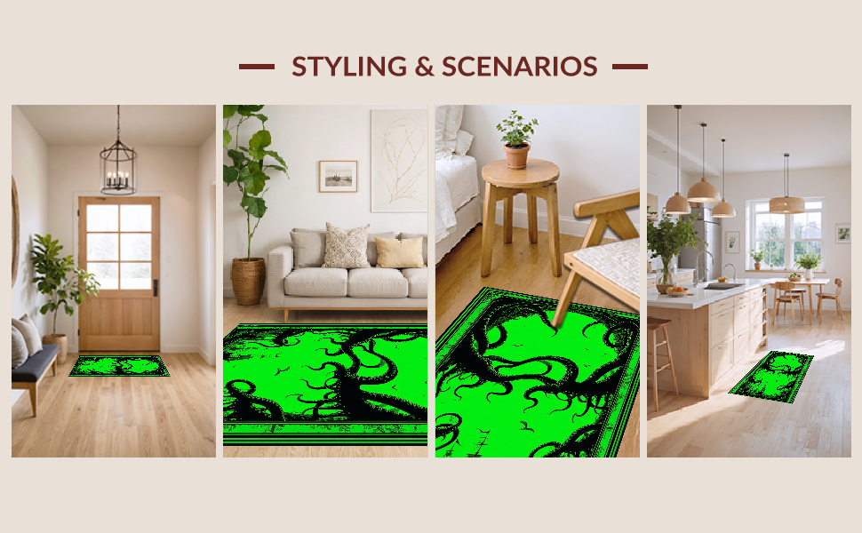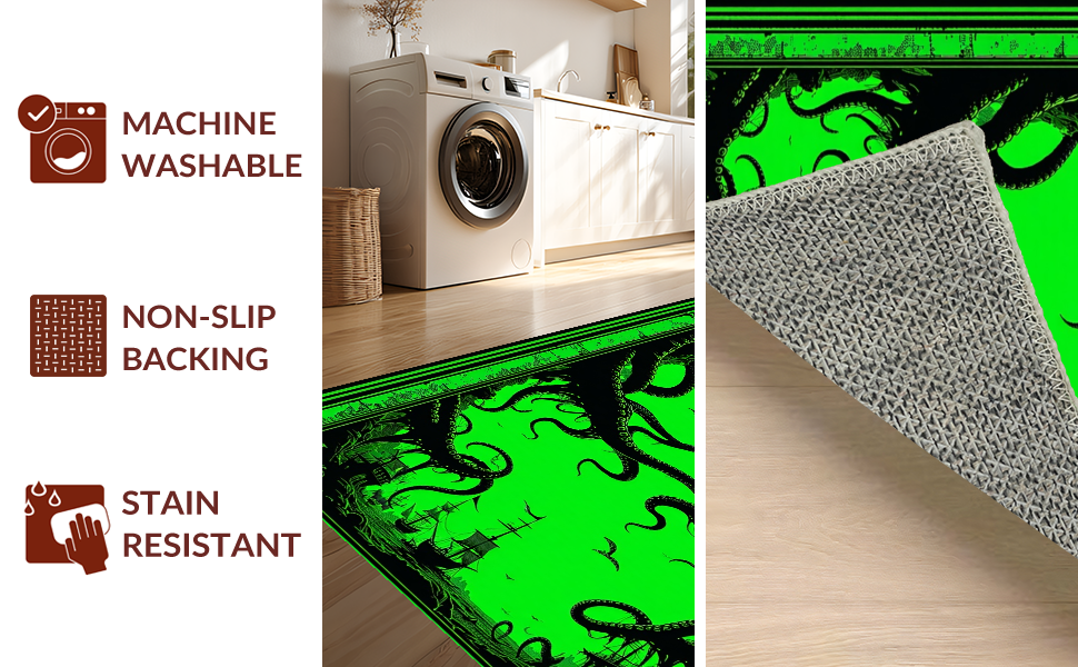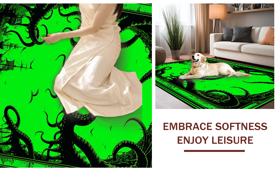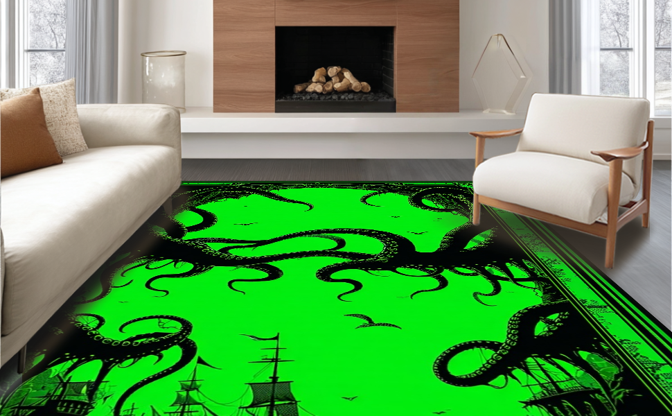 Ultra Soft Area Rug, Non Slip, Stain Resistant, Washable Area Rugs for Living Room, Bedroom, Dark Fantasy Undersea Motif(Green) Overview: