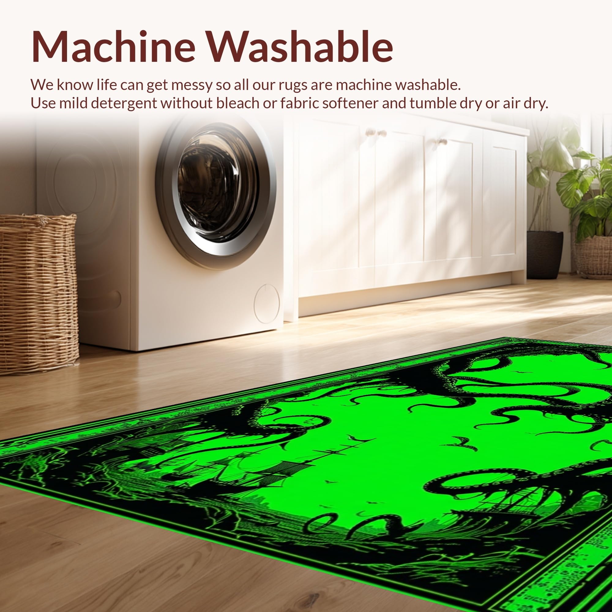 - Machine Washable: Our rugs can be easily thrown in the wash machine.
