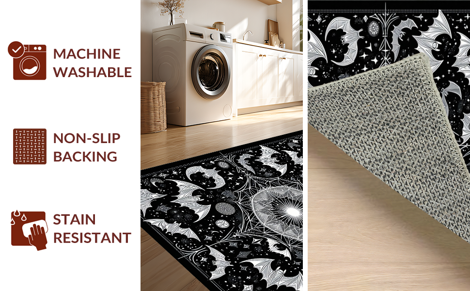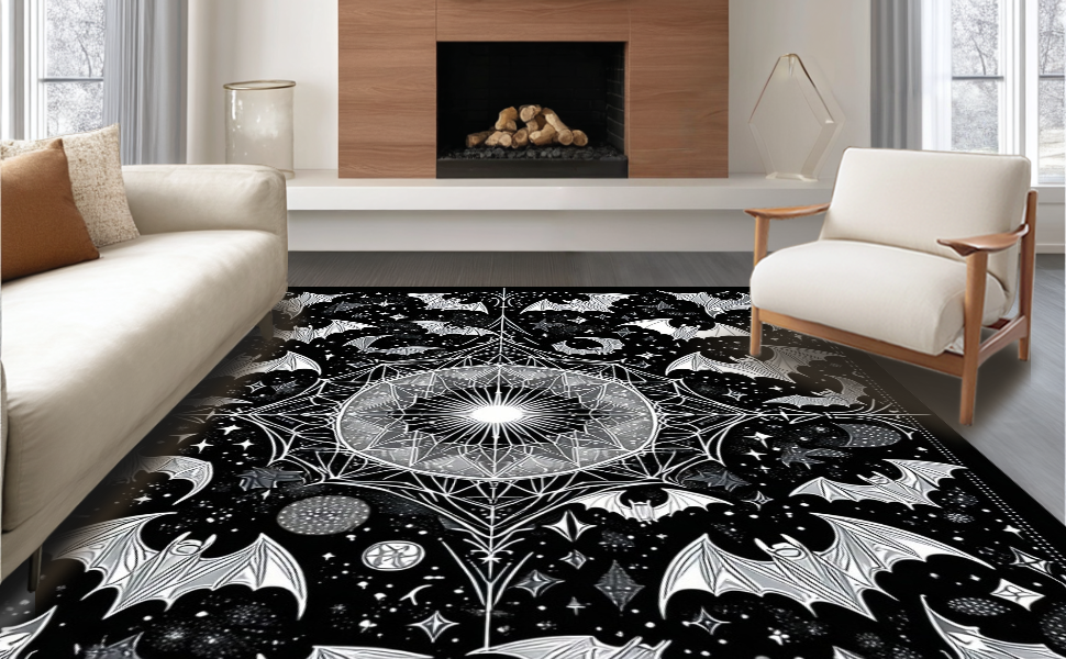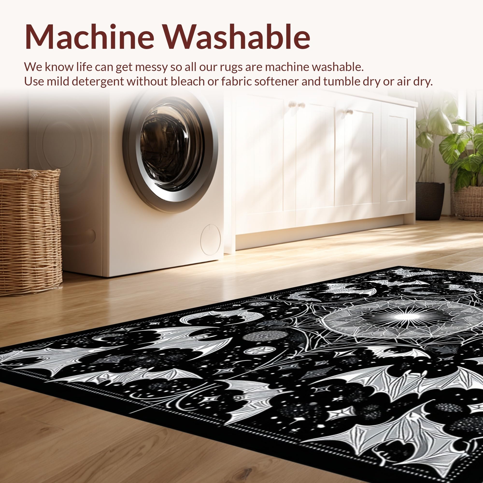 Ultra Soft Area Rug, Non Slip, Stain Resistant, Washable Area Rugs for Living Room, Bedroom, Darkly Romantic Spooky Elegance(Black) Overview: