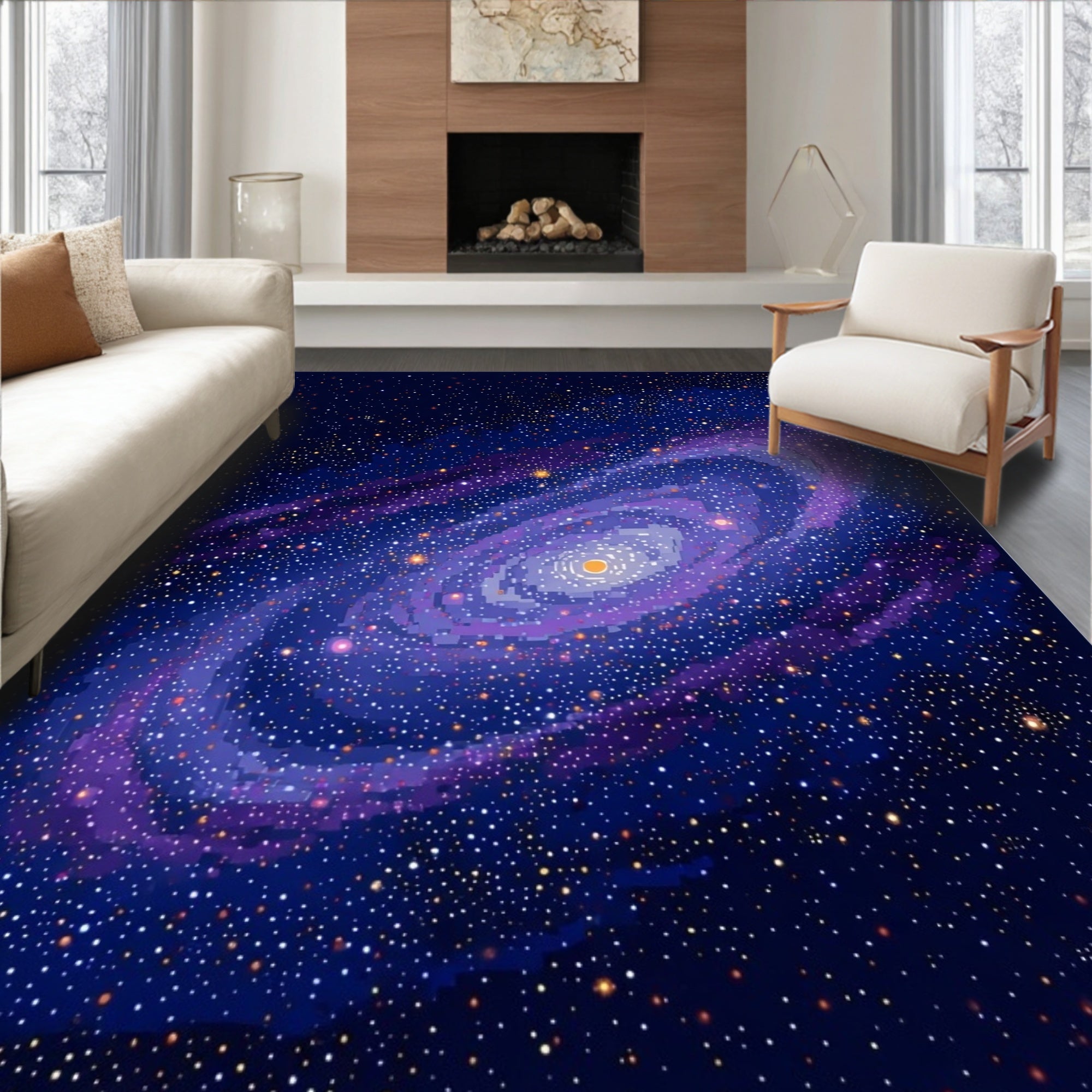 Flatwoven High Traffic Area Rug, Dazzling Intergalactic Visual, Non Slip, Stain Resistant, Washable Area Rugs for Living Room, Bedroom (Blue) Overview: