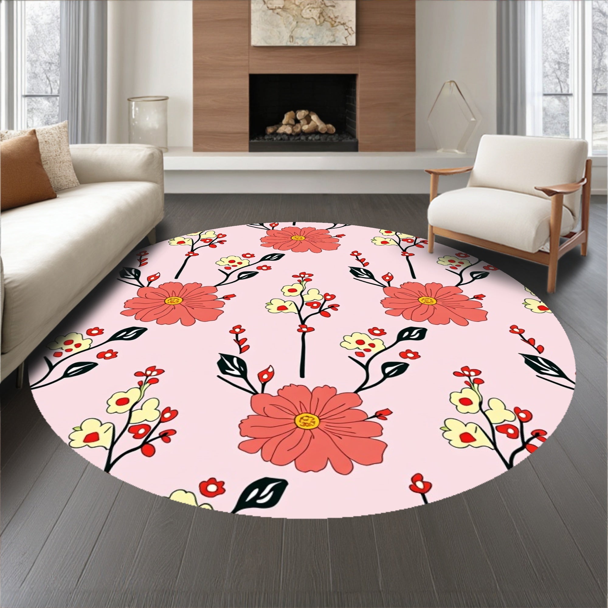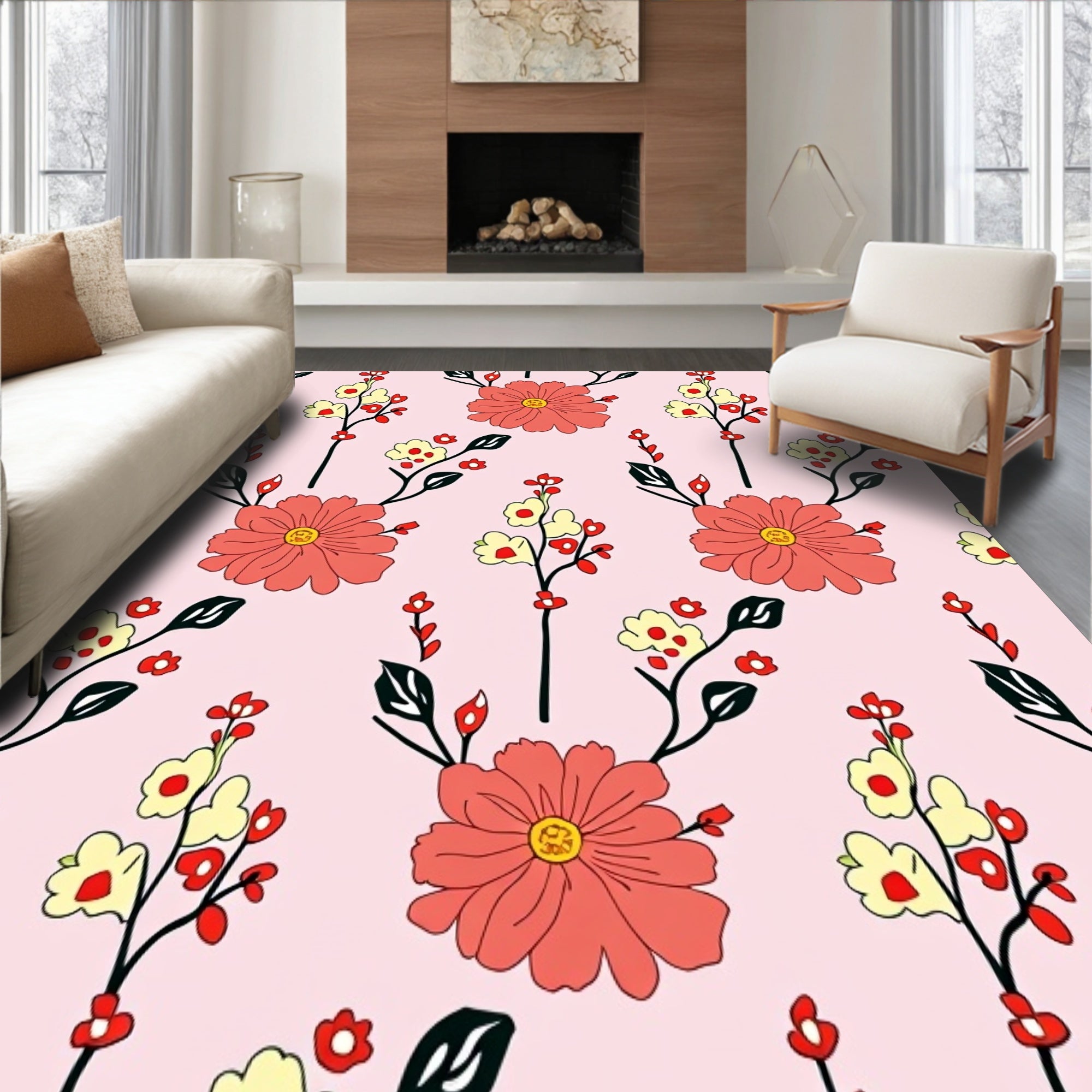 Ultra Soft Area Rug, Non Slip, Stain Resistant, Washable Area Rugs for Living Room, Bedroom, Delicate Blossom Cluster Arrangement with Interlocking Floral(Pink) Overview: