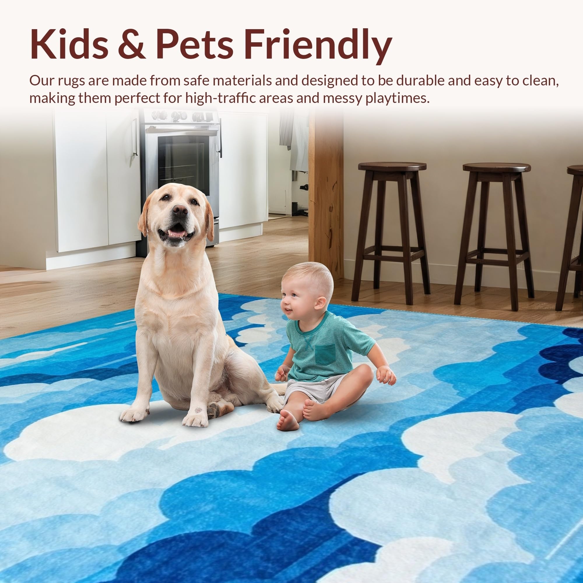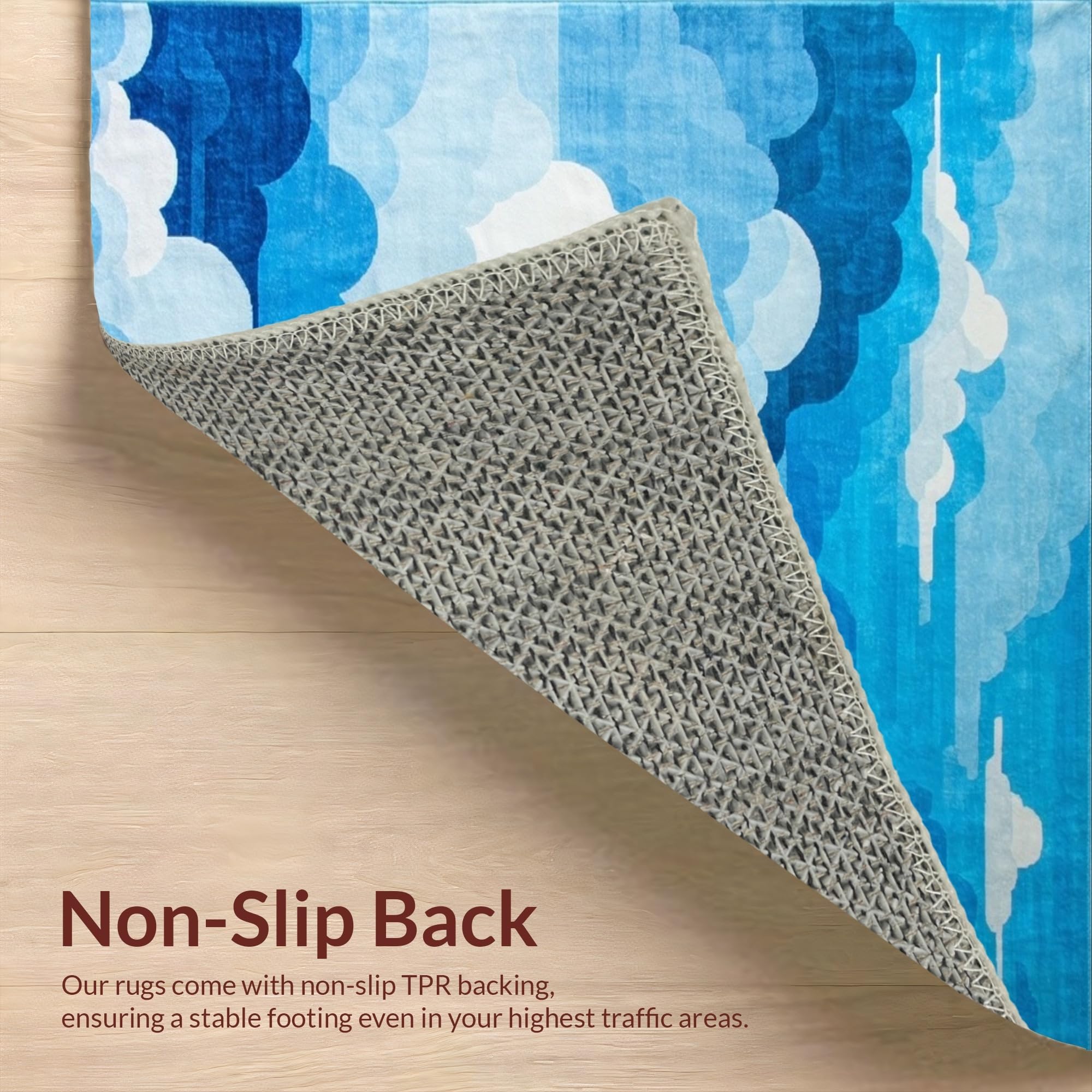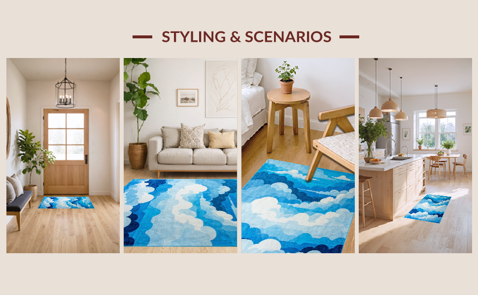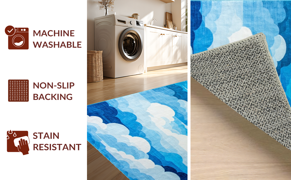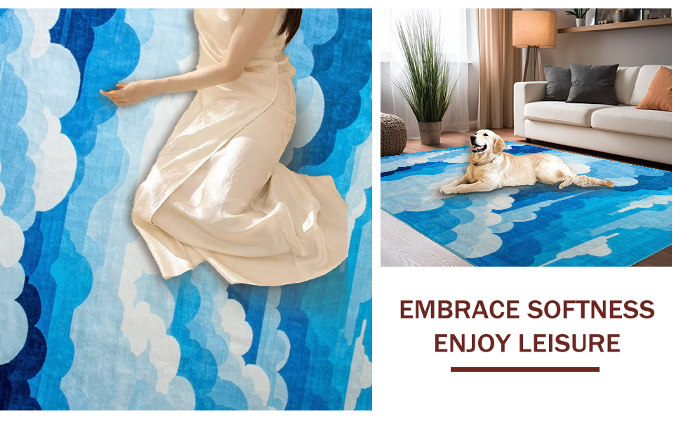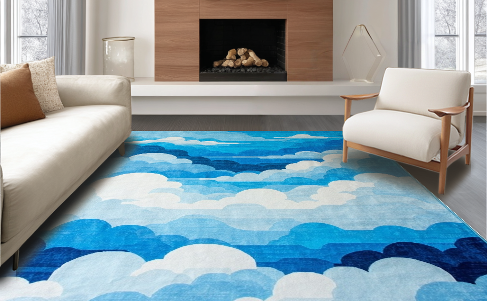 Ultra Soft Area Rug, Non Slip, Stain Resistant, Washable Area Rugs for Living Room, Bedroom, Delicate Cloud Impressionist Touch(Blue) Overview: