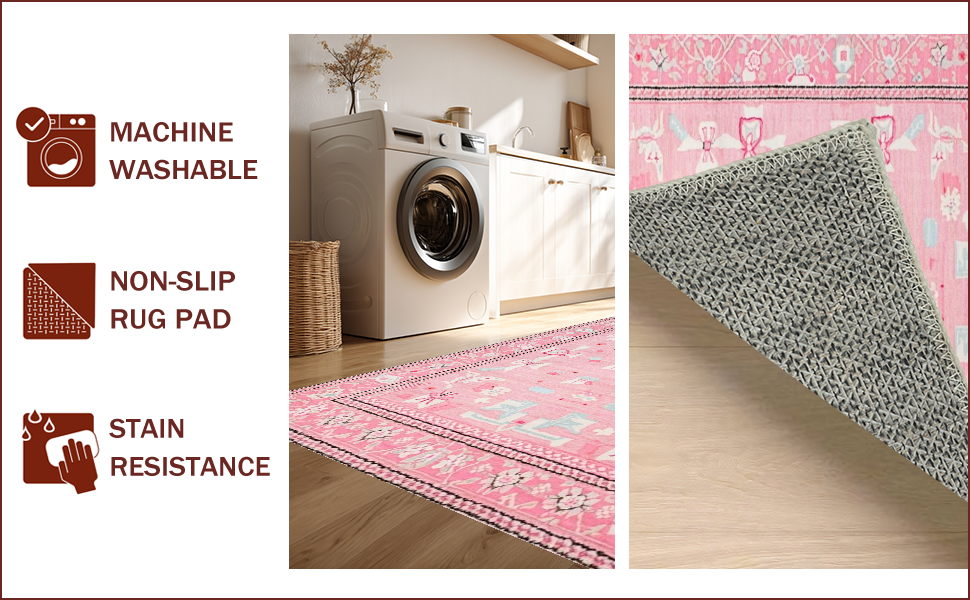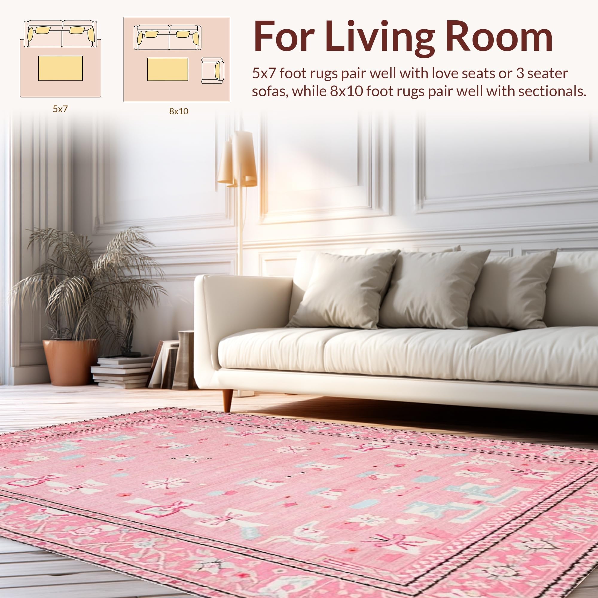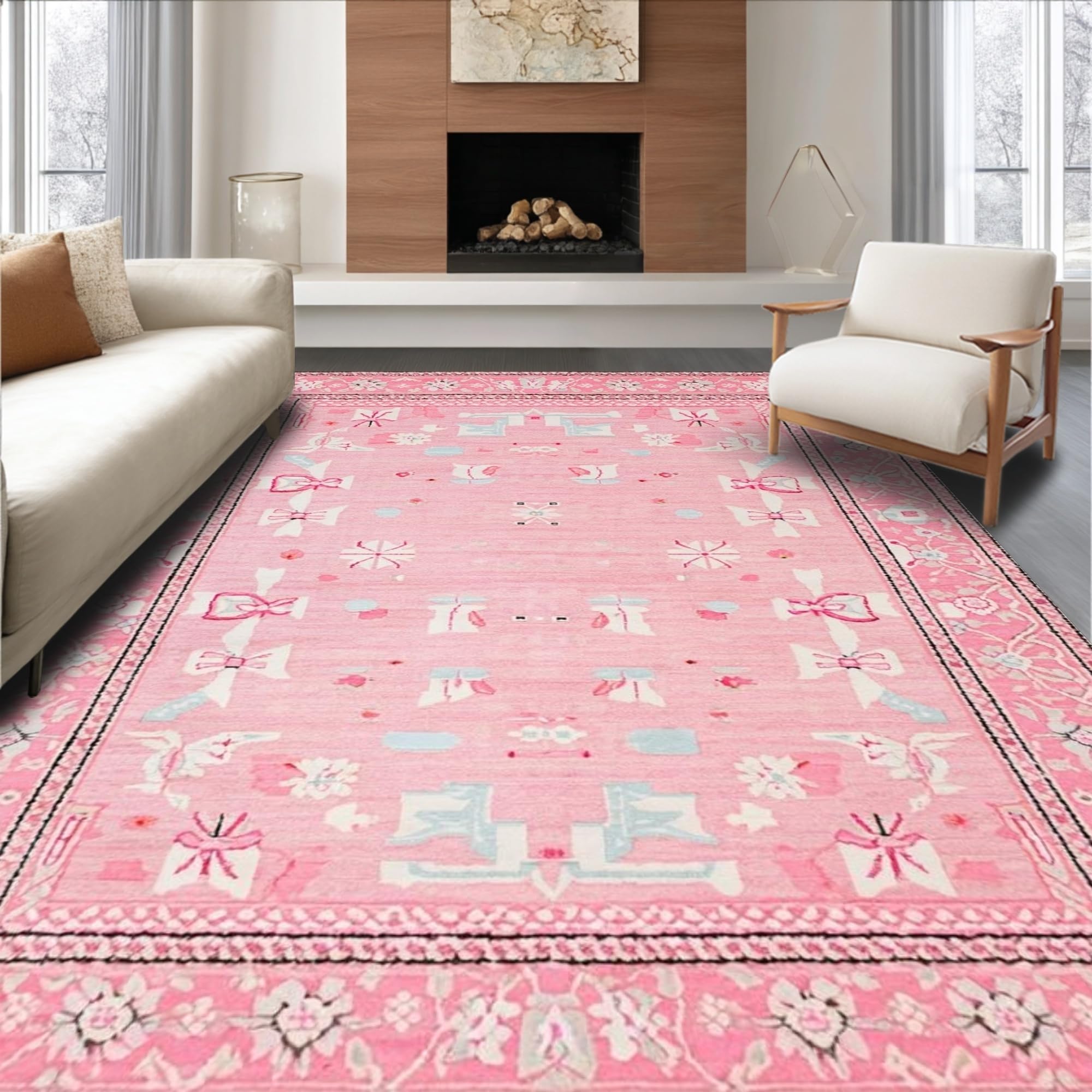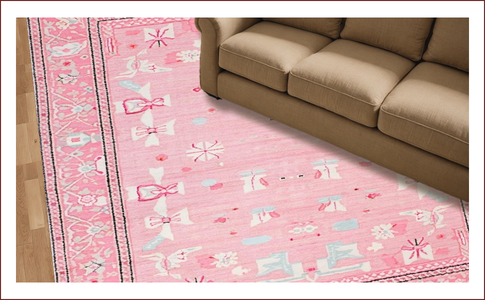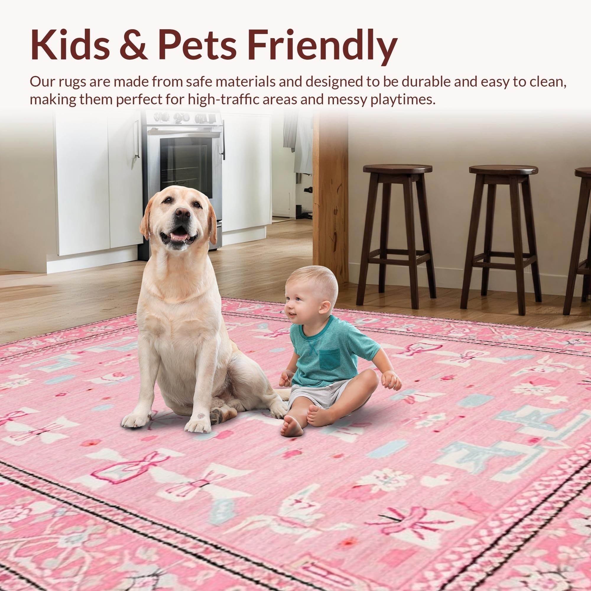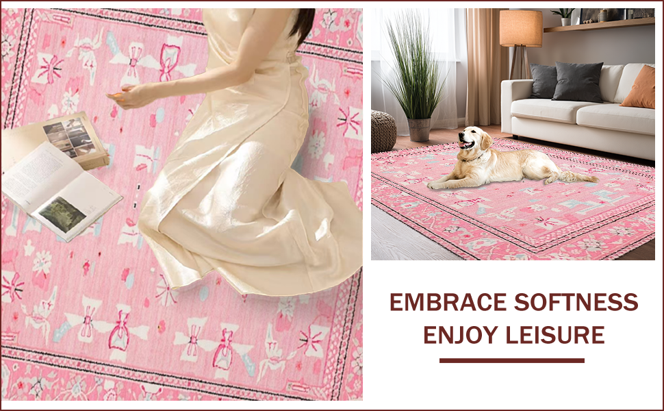 Ultra Soft Area Rug, Non Slip, Stain Resistant, Washable Area Rugs for Living Room, Bedroom, Delicate Feminine Whimsical Touch(Pink) Overview: