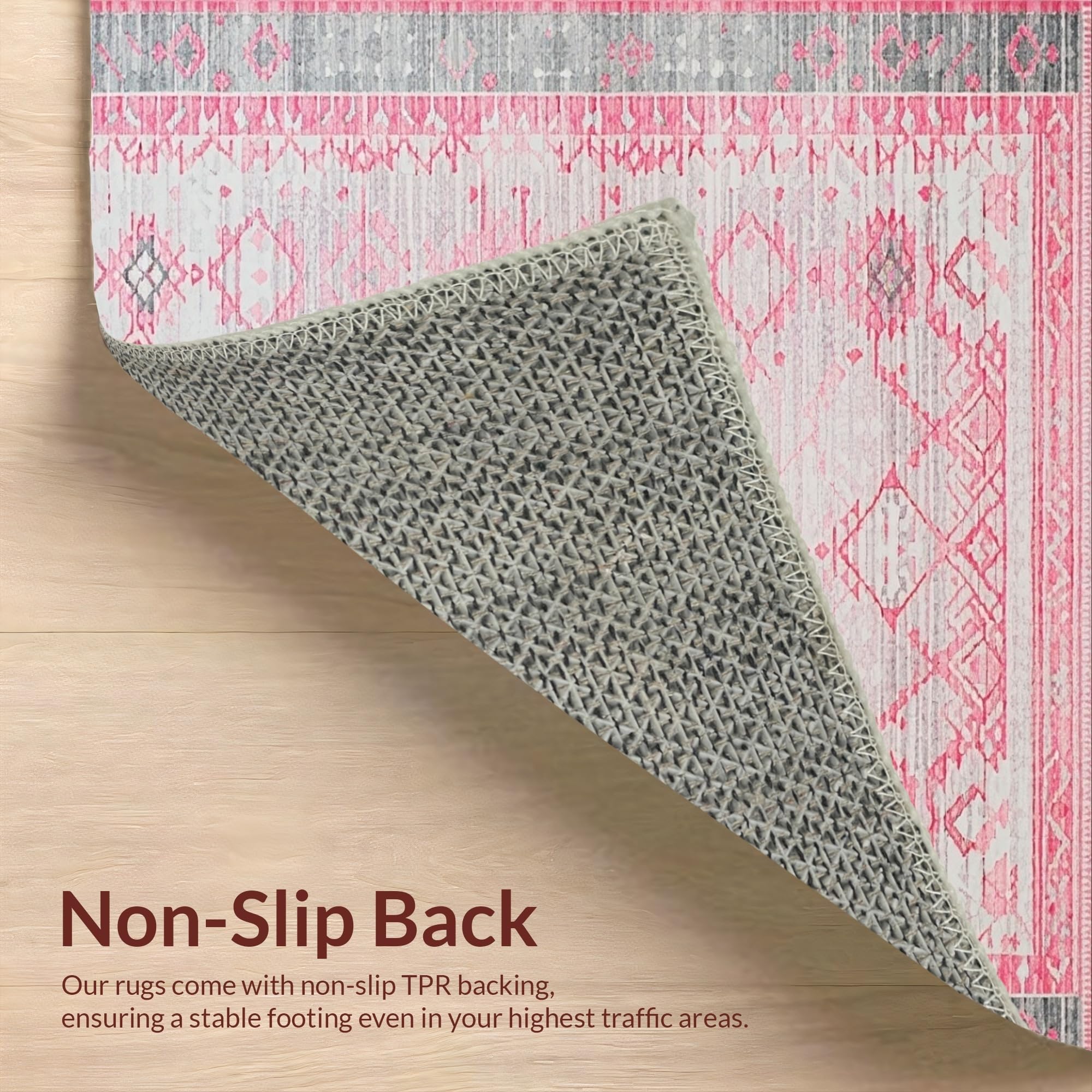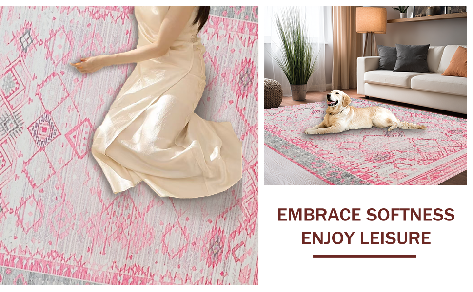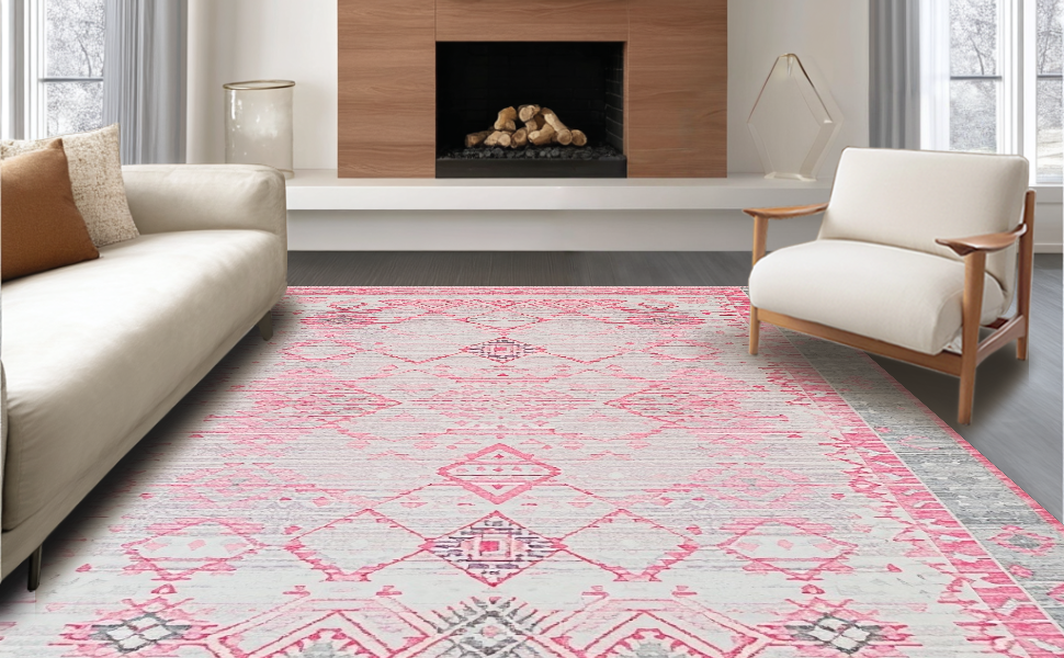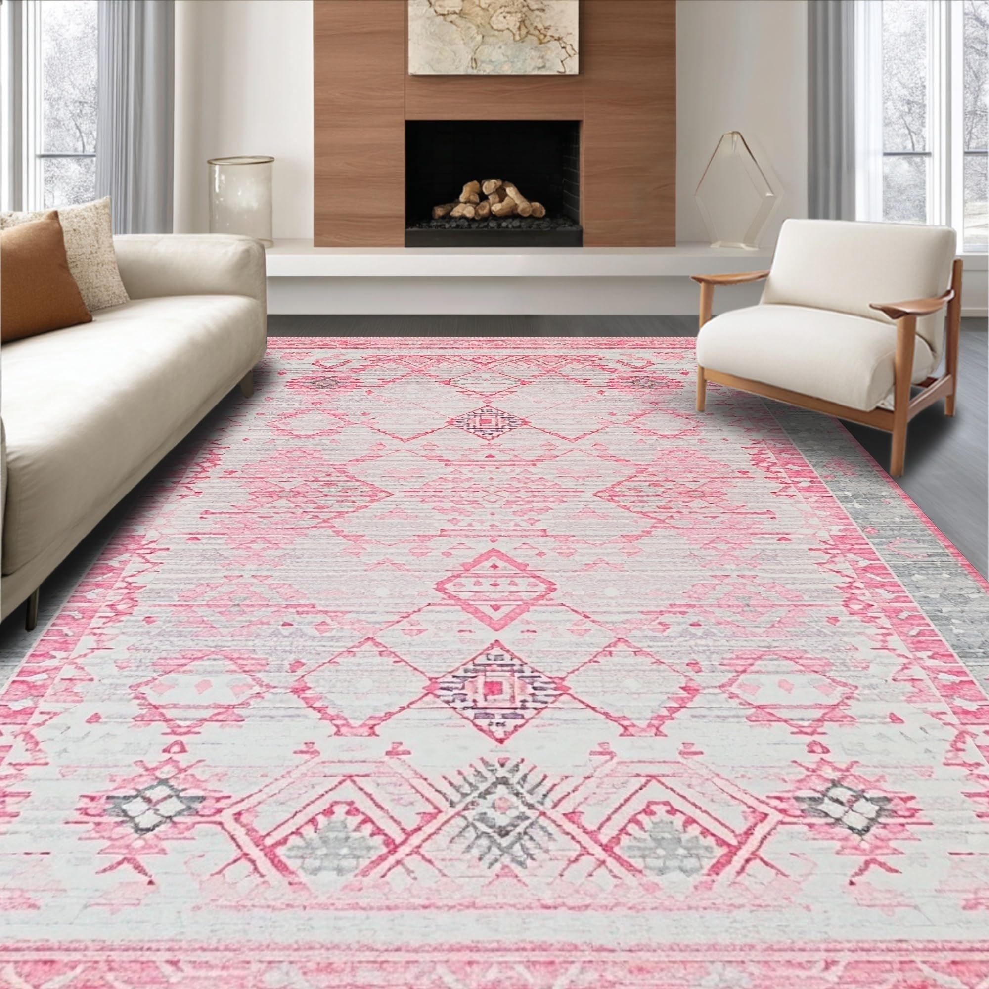 Ultra Soft Area Rug, Non Slip, Stain Resistant, Washable Area Rugs for Living Room, Bedroom, Delicate Lattice Design with Fuzz(Pink) Overview: