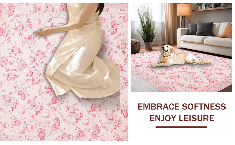 Ultra Soft Area Rug, Non Slip, Stain Resistant, Washable Area Rugs for Living Room, Bedroom, Delicate Mauve Serene Atmosphere(Pink) Overview: