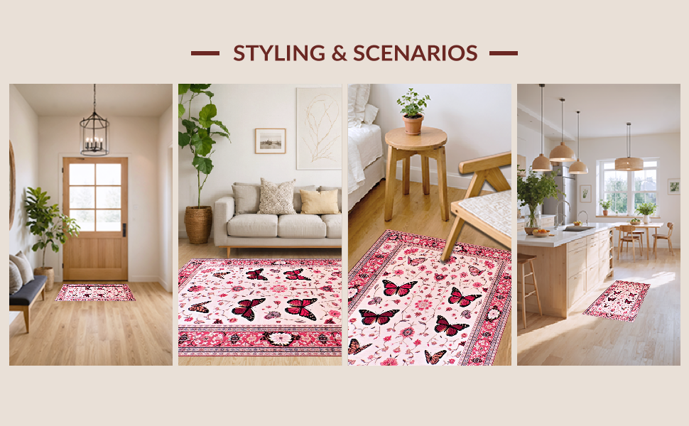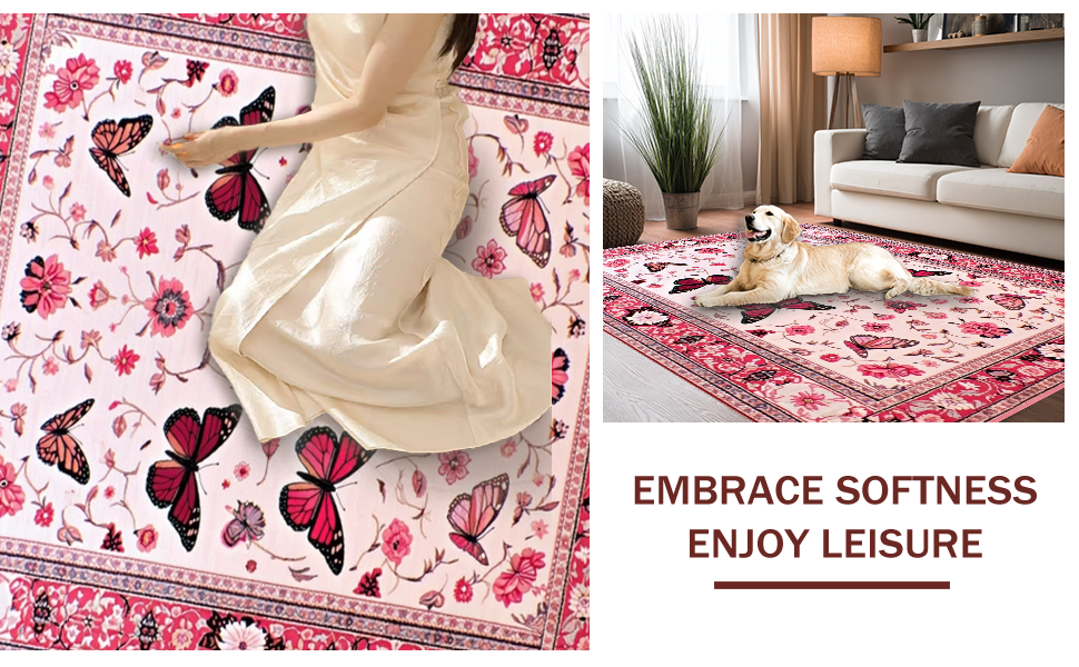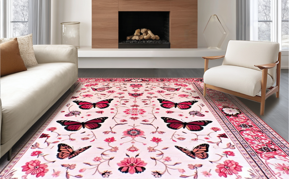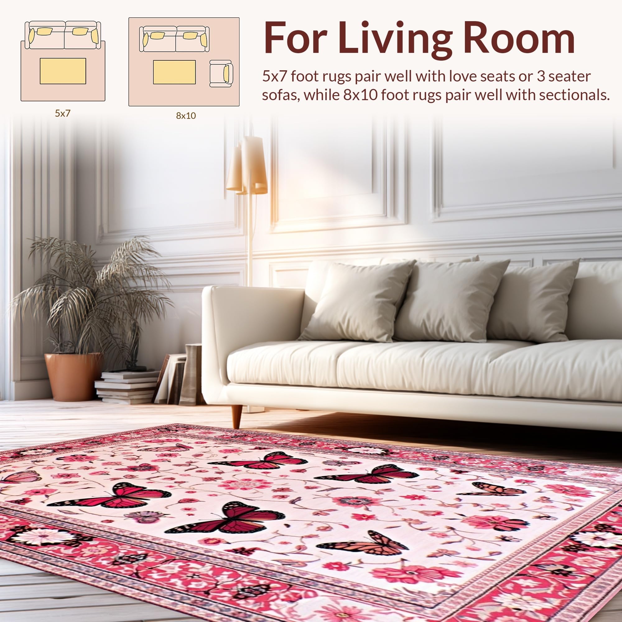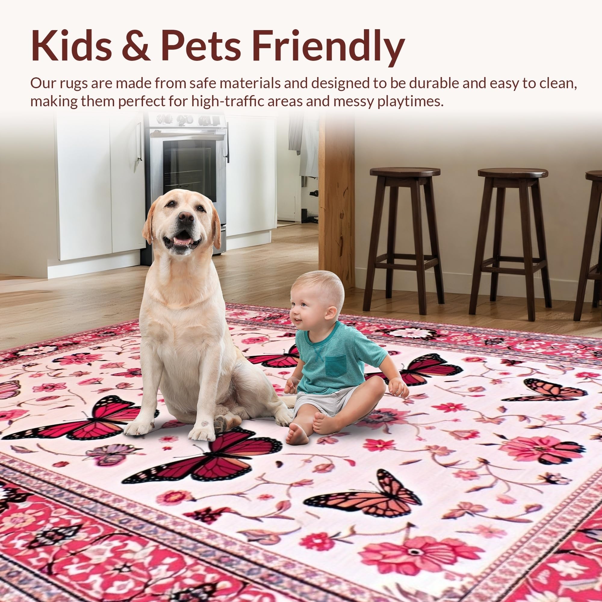 Ultra Soft Area Rug, Non Slip, Stain Resistant, Washable Area Rugs for Living Room, Bedroom, Delicate Nature-Inspired Color Palette(Ivory) Overview: