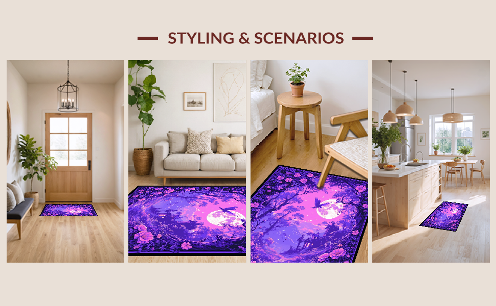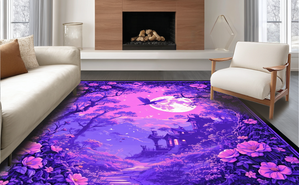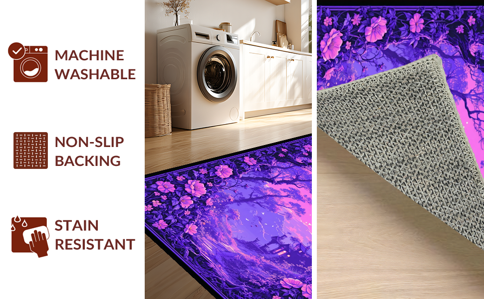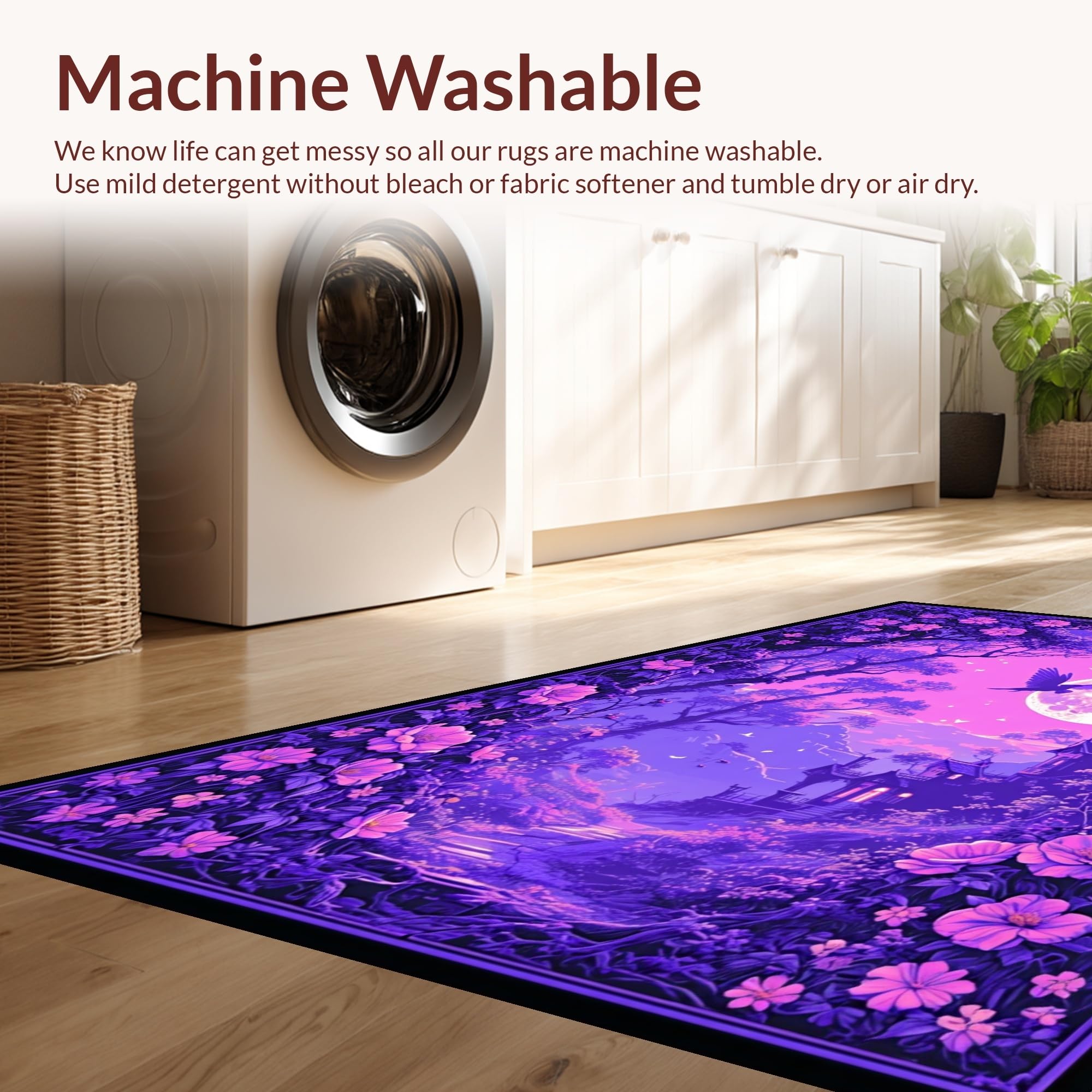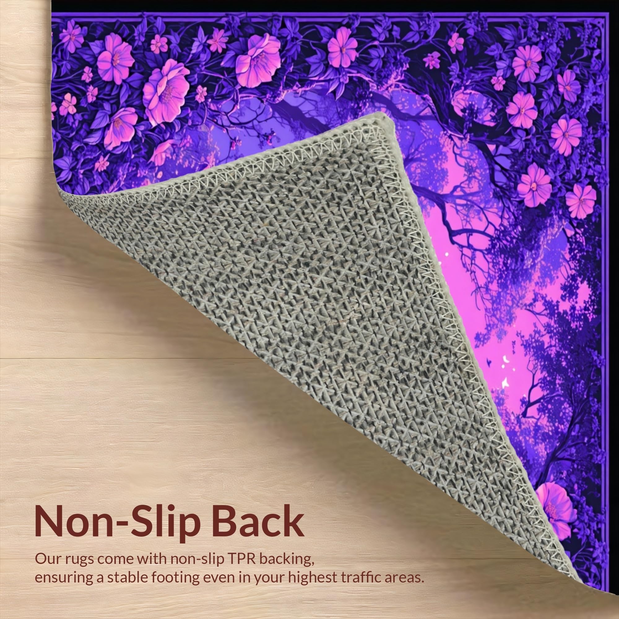 Ultra Soft Area Rug, Non Slip, Stain Resistant, Washable Area Rugs for Living Room, Bedroom, Delicate Nature-Inspired Decorative Design(Purple) Overview: