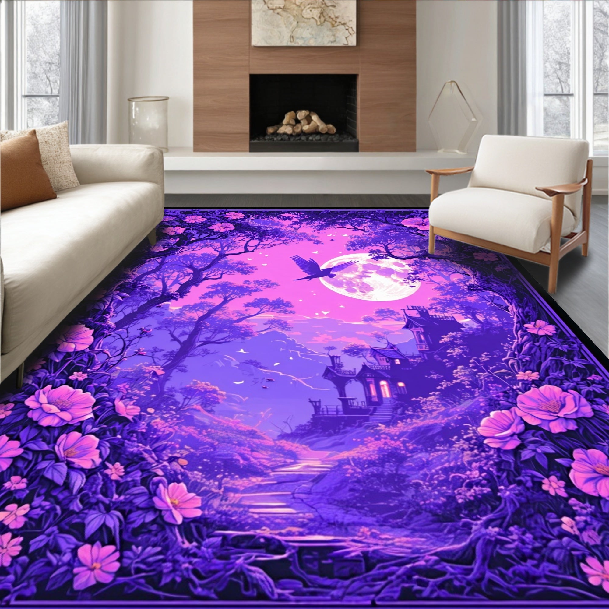 Flatwoven High Traffic Area Rug, Delicate Nature Inspired Decorative Design, Non Slip, Stain Resistant, Washable Area Rugs for Living Room, Bedroom (Purple) Overview: