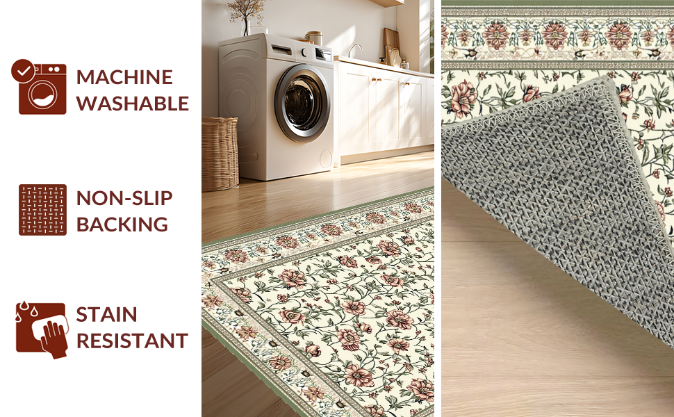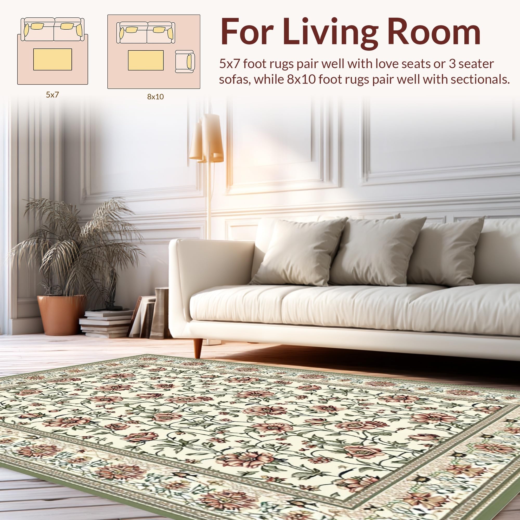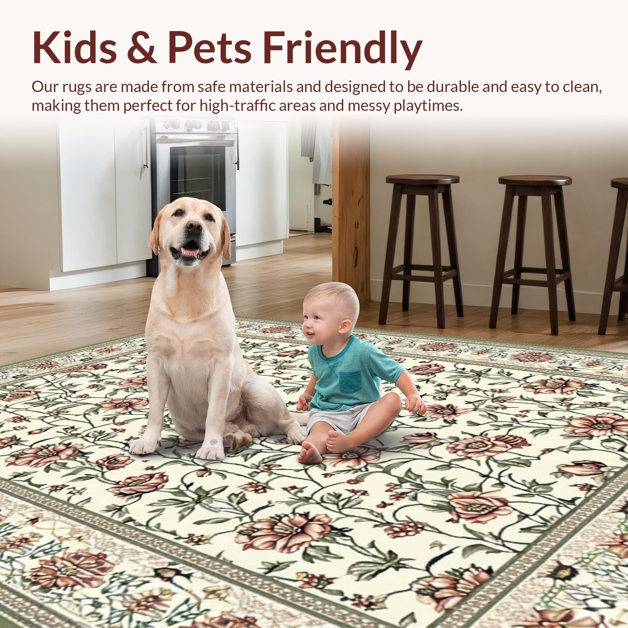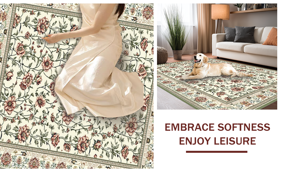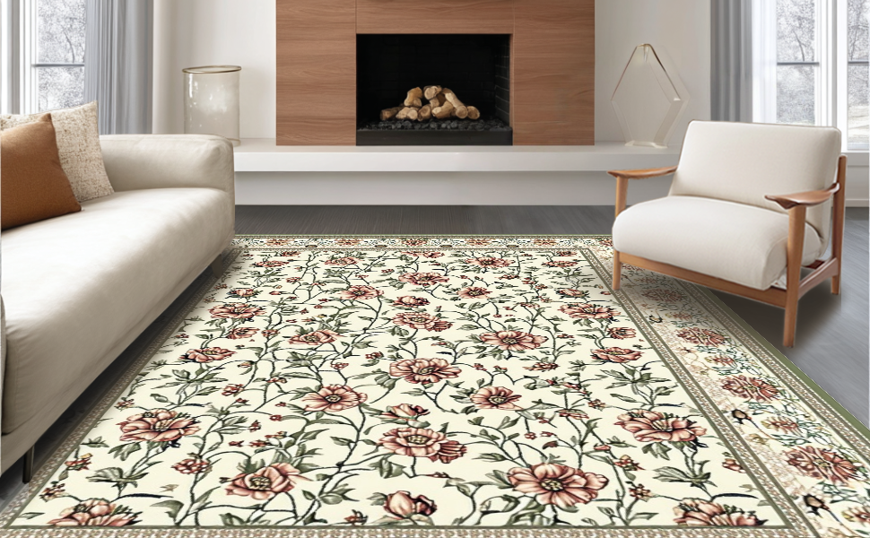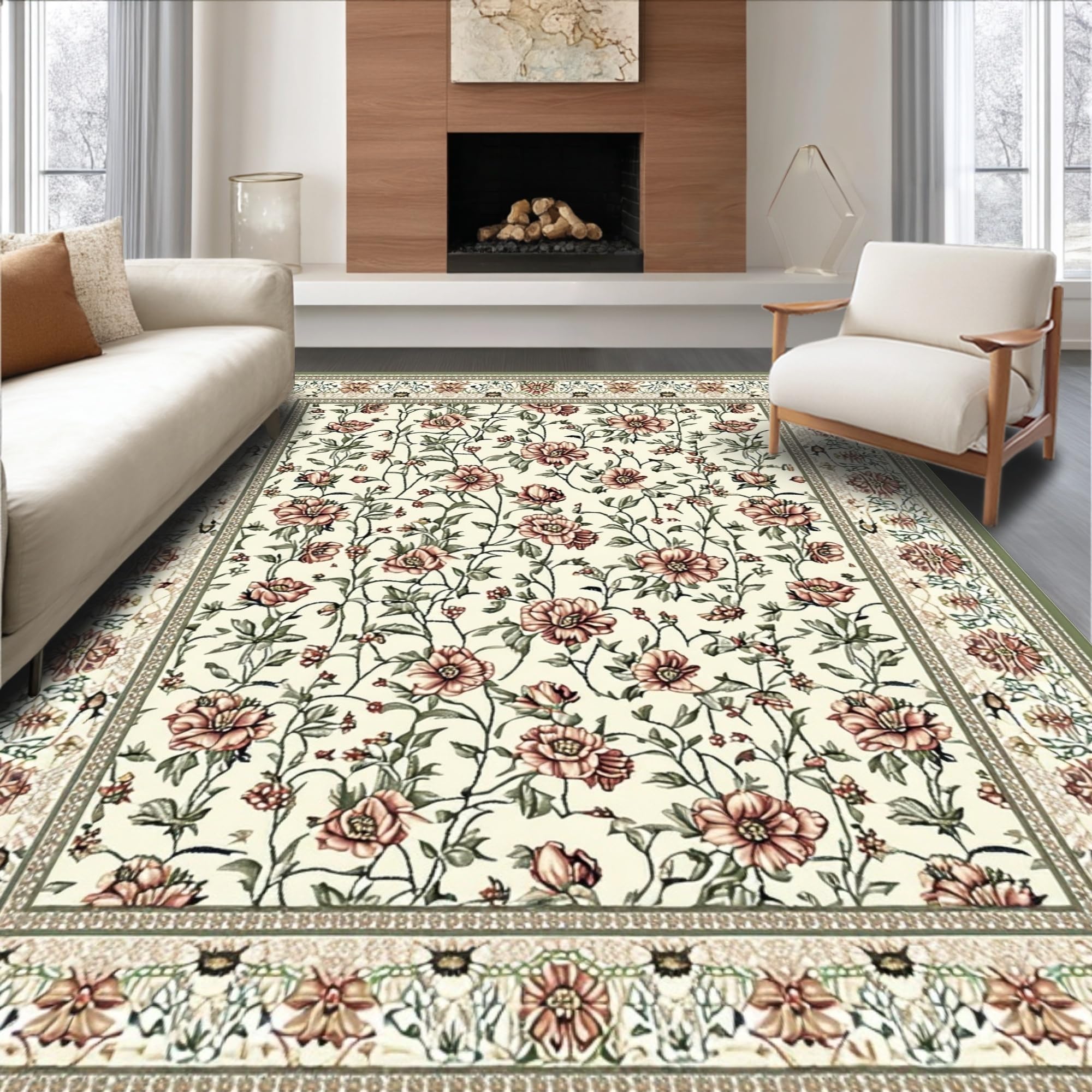 Ultra Soft Area Rug, Non Slip, Stain Resistant, Washable Area Rugs for Living Room, Bedroom, Delicate Nature-Inspired Floral Arrangement(Beige) Overview: