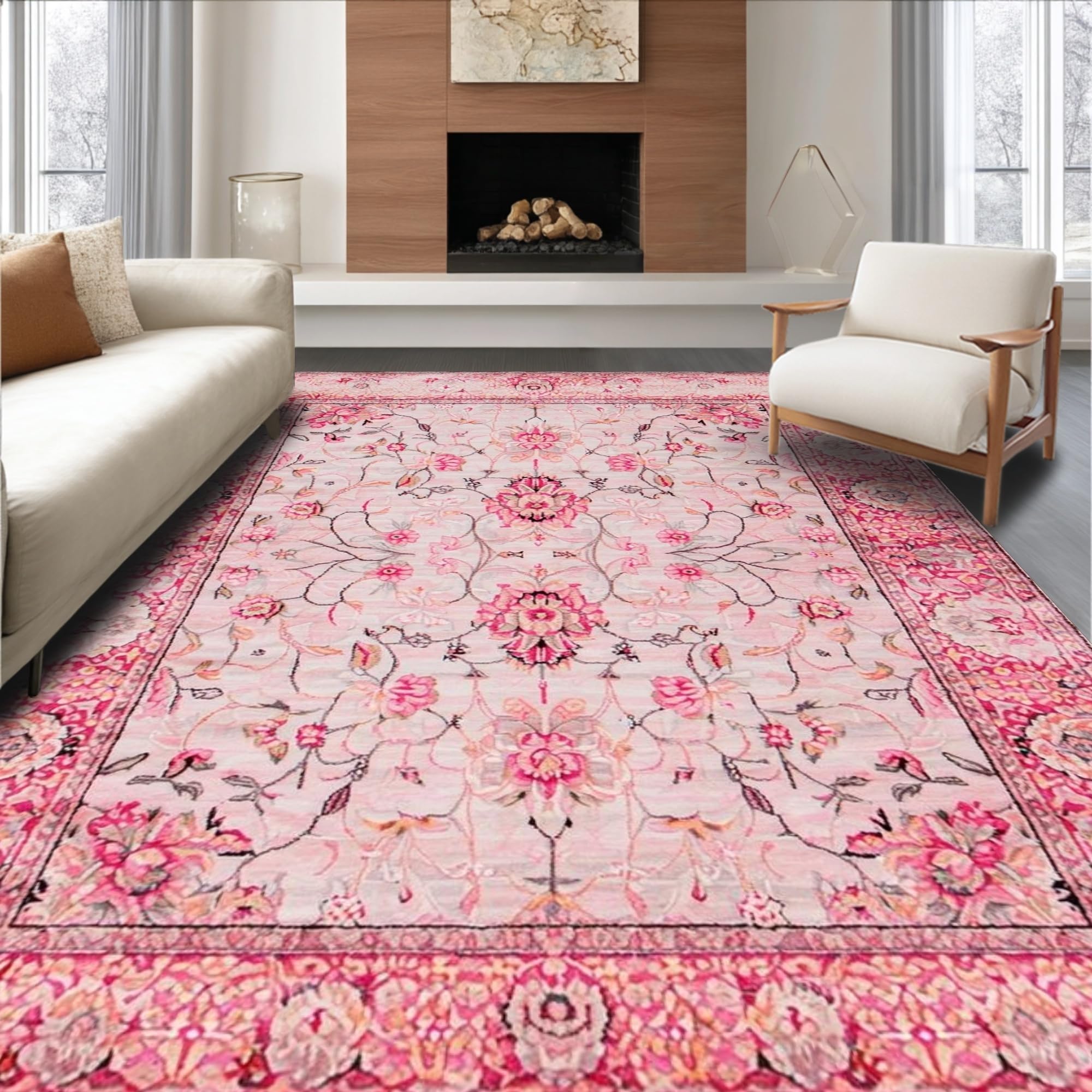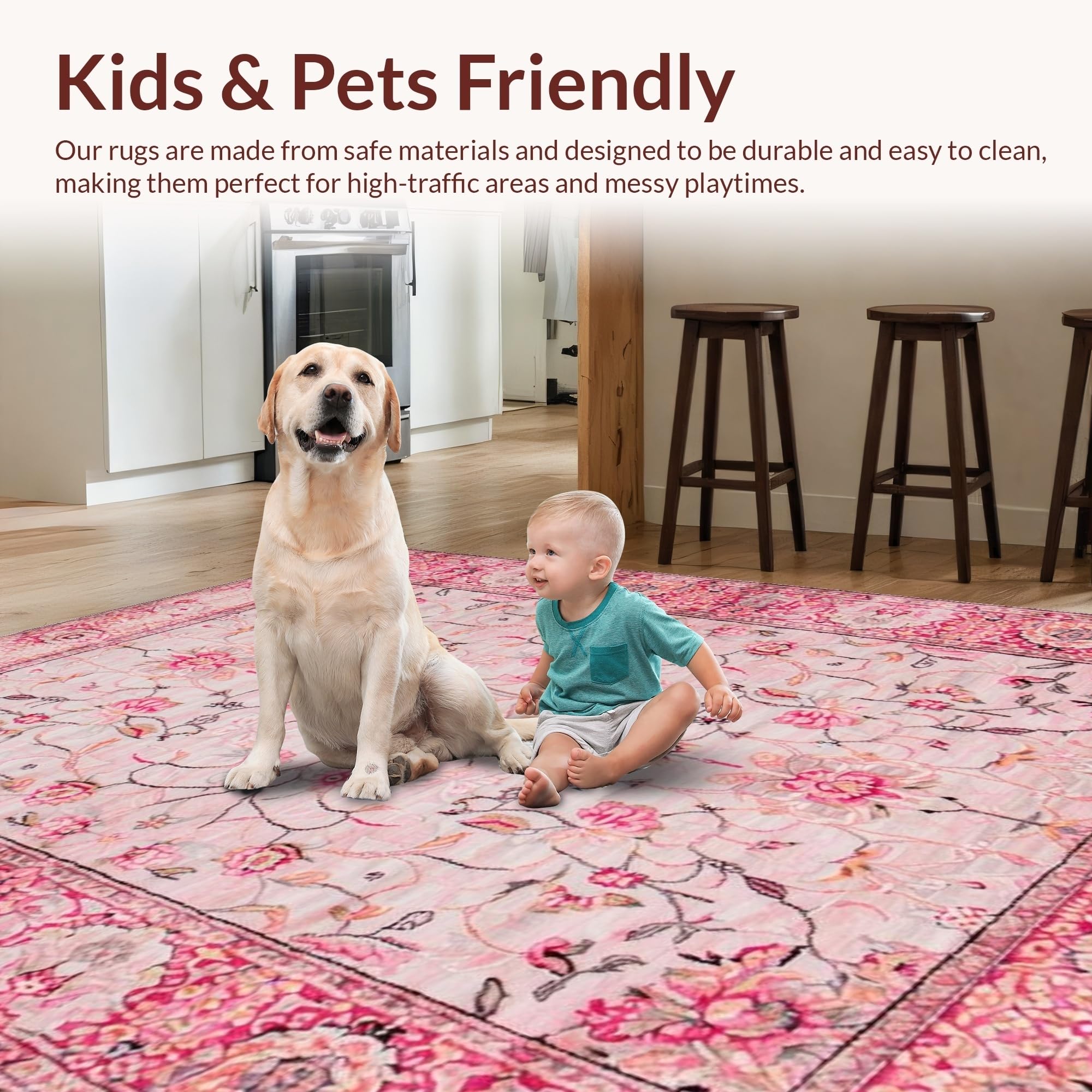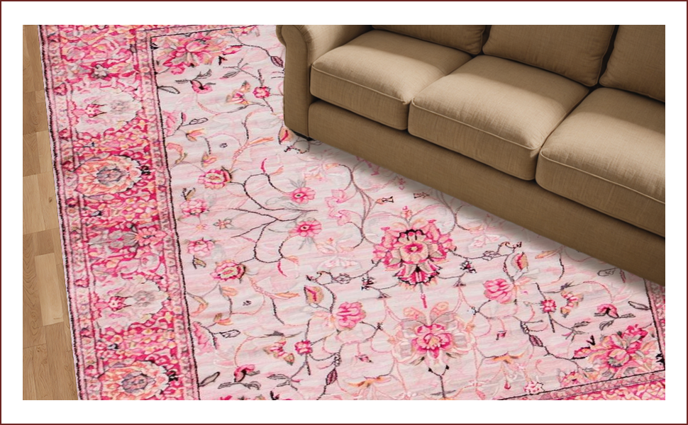 Ultra Soft Area Rug, Non Slip, Stain Resistant, Washable Area Rugs for Living Room, Bedroom, Delicate Pastel Floral Motif(Pink) Overview: