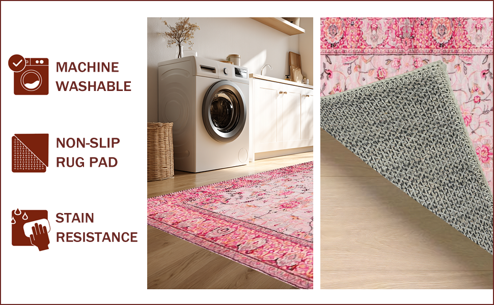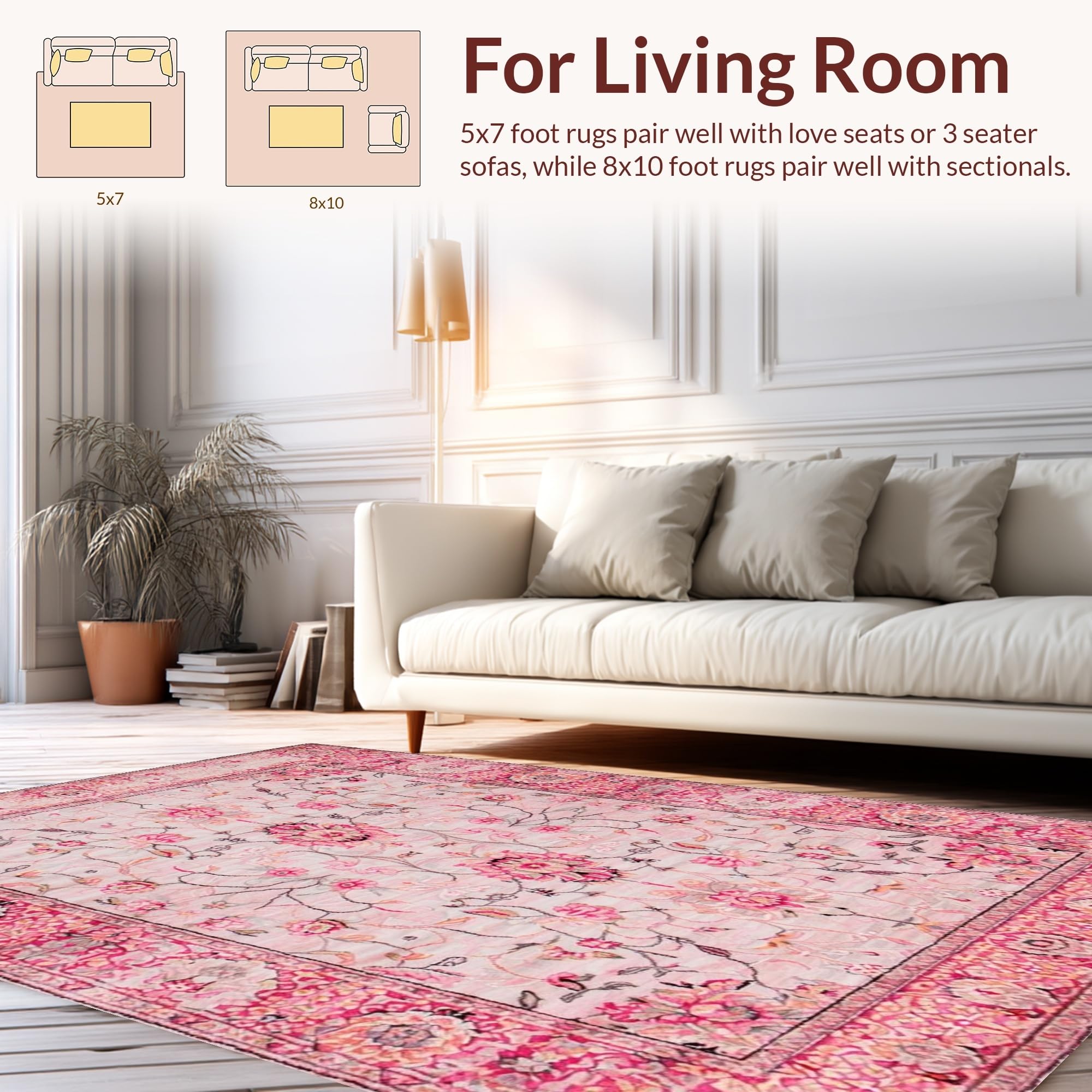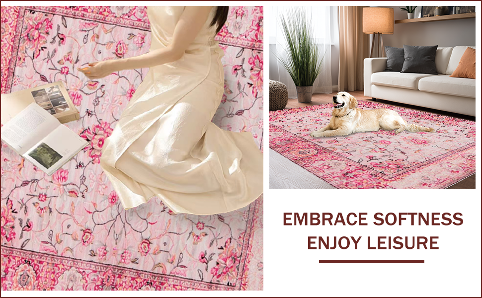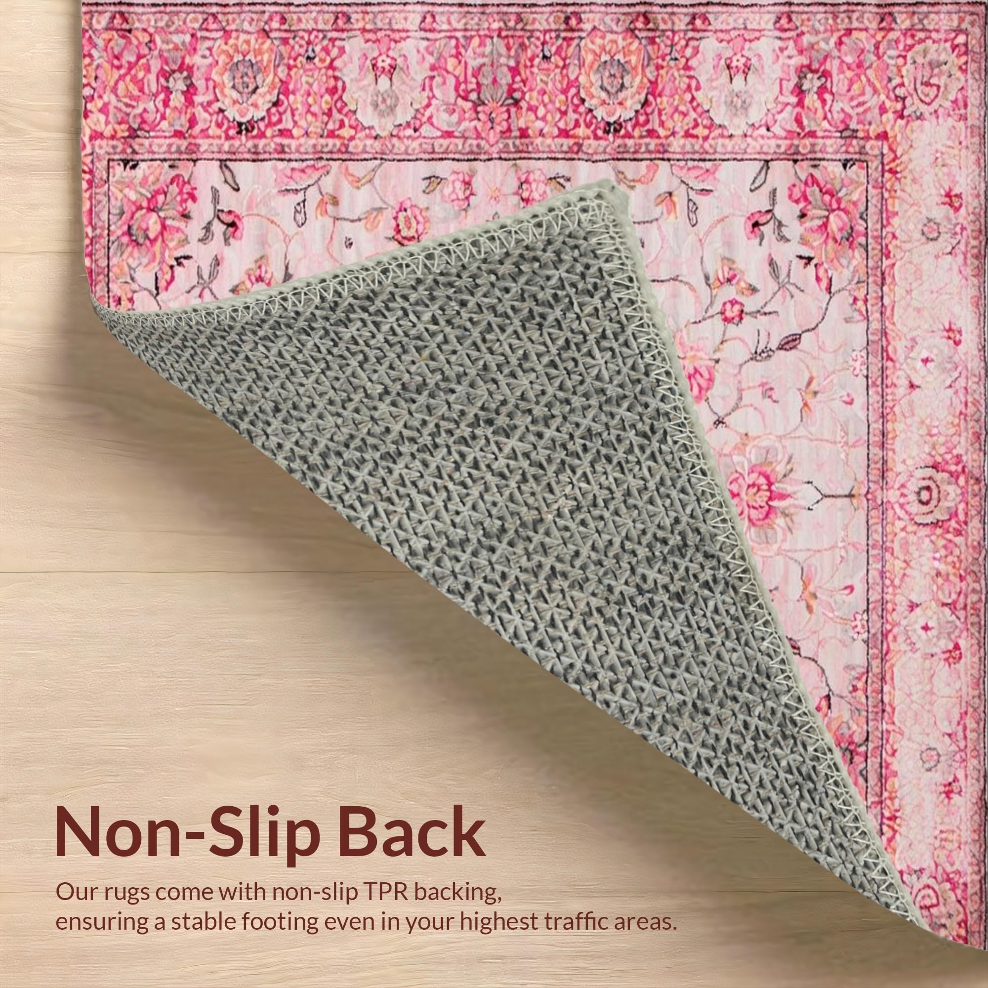 Ultra Soft Area Rug, Non Slip, Stain Resistant, Washable Area Rugs for Living Room, Bedroom, Delicate Pastel Floral Motif(Pink) Overview:
