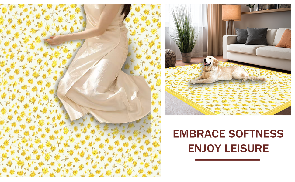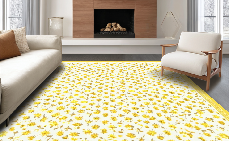 Ultra Soft Area Rug, Non Slip, Stain Resistant, Washable Area Rugs for Living Room, Bedroom, Delicate Petal Accents in Minimalist Style(Yellow) Overview: