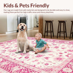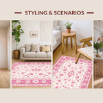 Ultra Soft Area Rug, Non Slip, Stain Resistant, Washable Area Rugs for Living Room, Bedroom, Delicate Pink Nature Inspired Design(White) Overview: