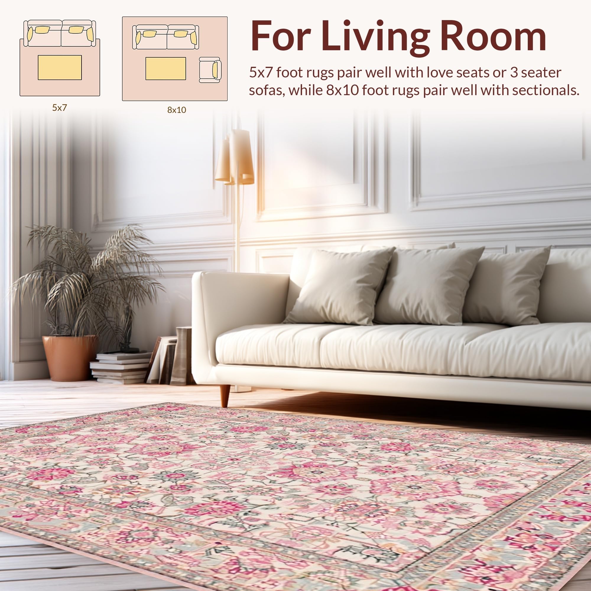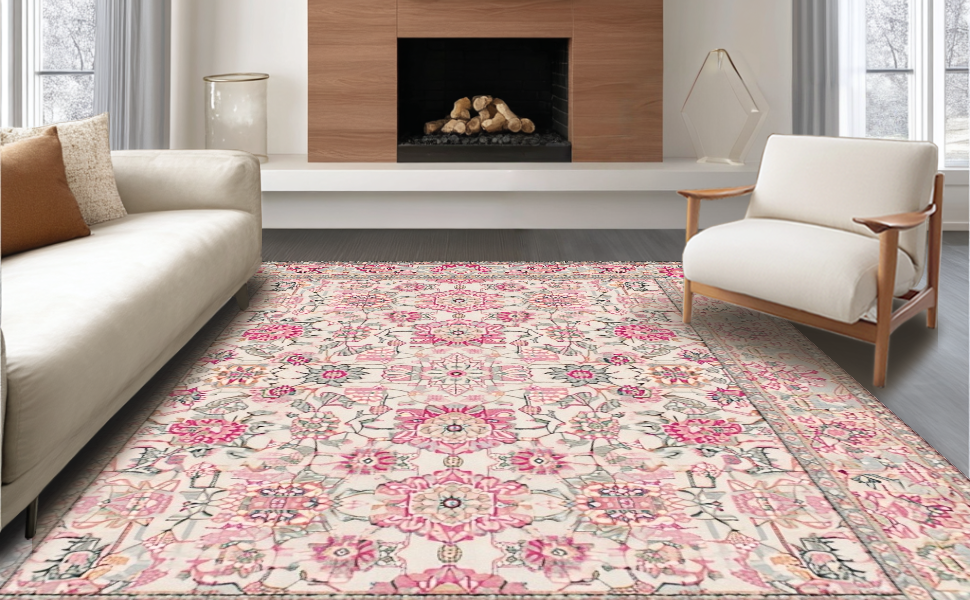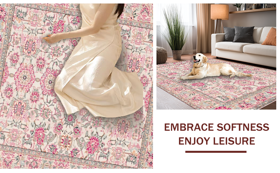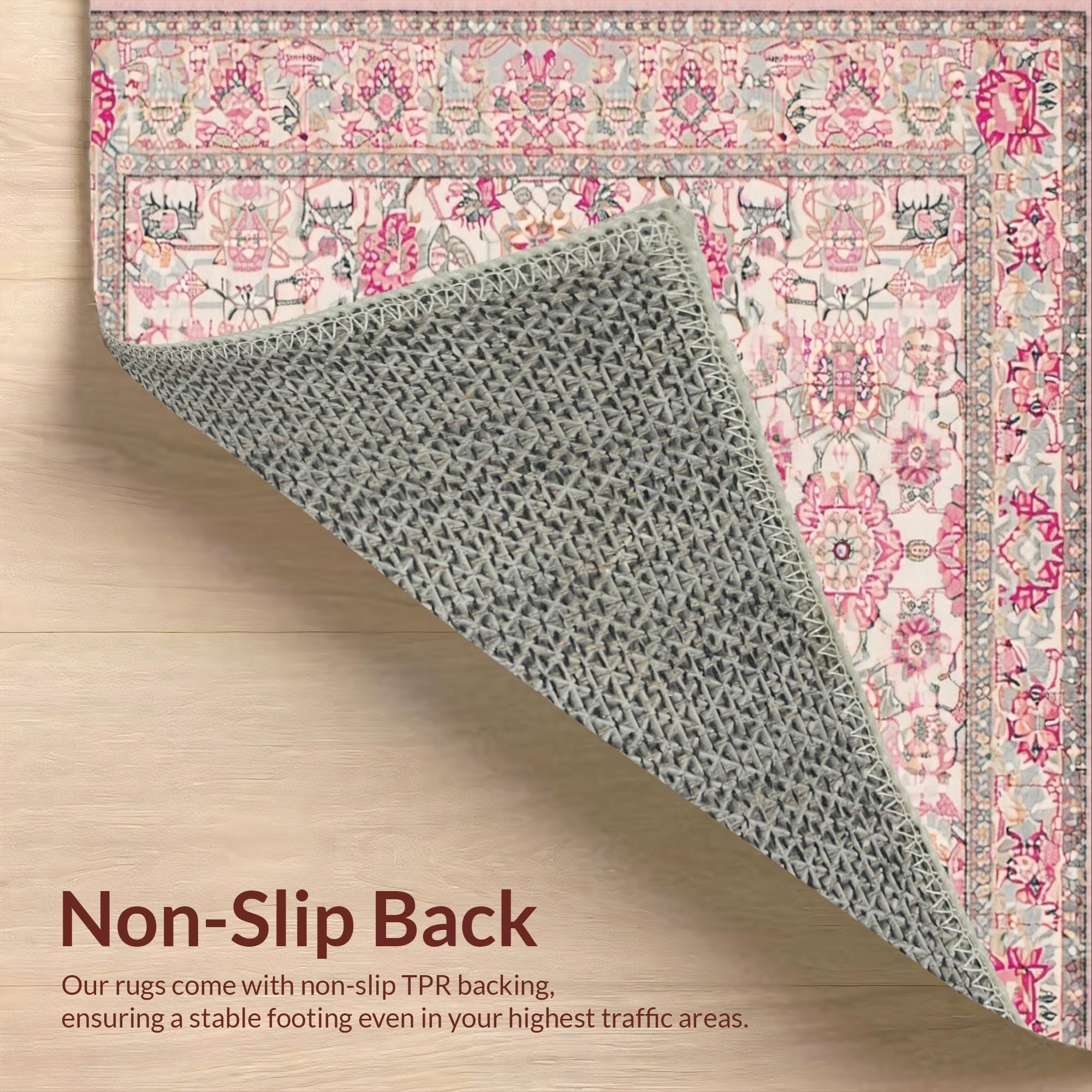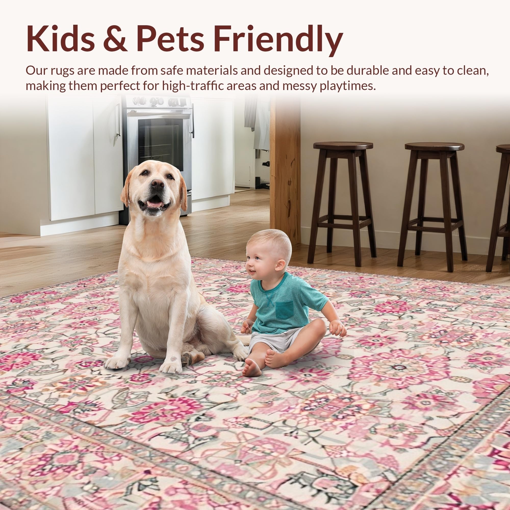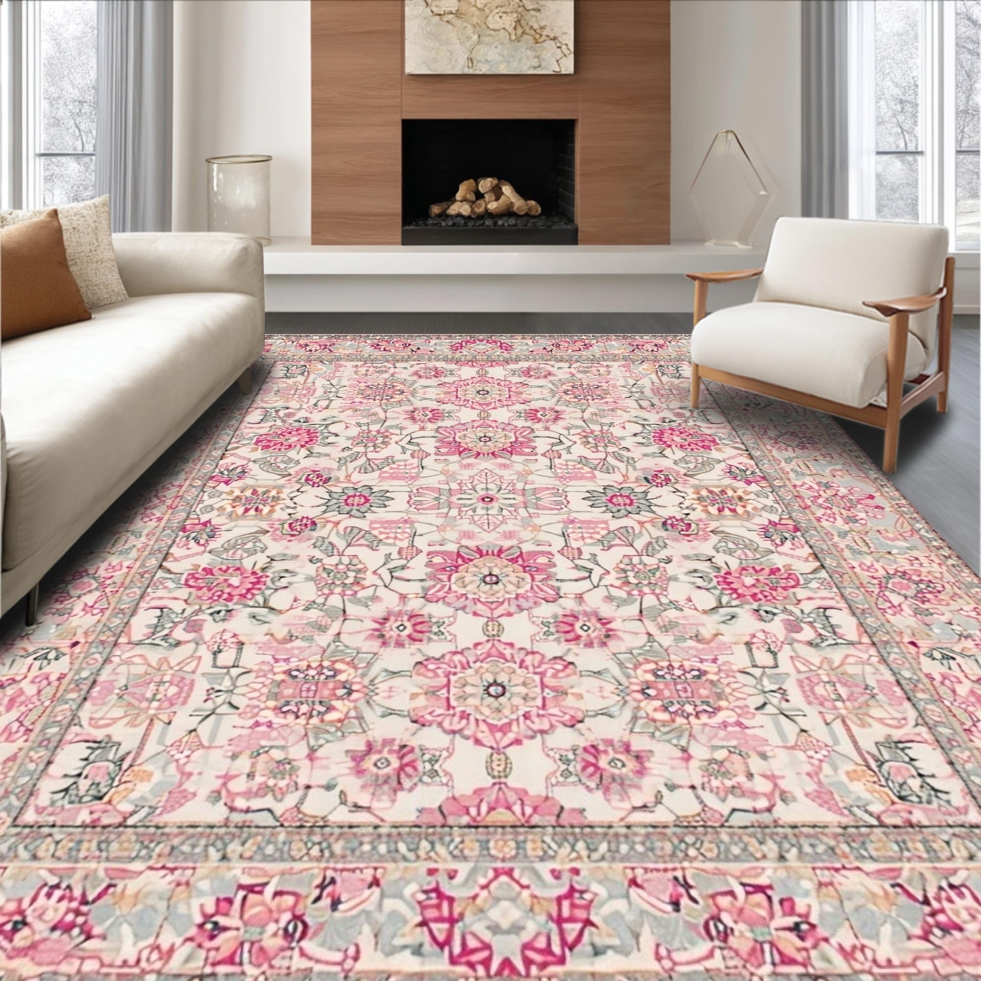 Ultra Soft Area Rug, Non Slip, Stain Resistant, Washable Area Rugs for Living Room, Bedroom, Delicate Round Blush Artistry(Pink) Overview: