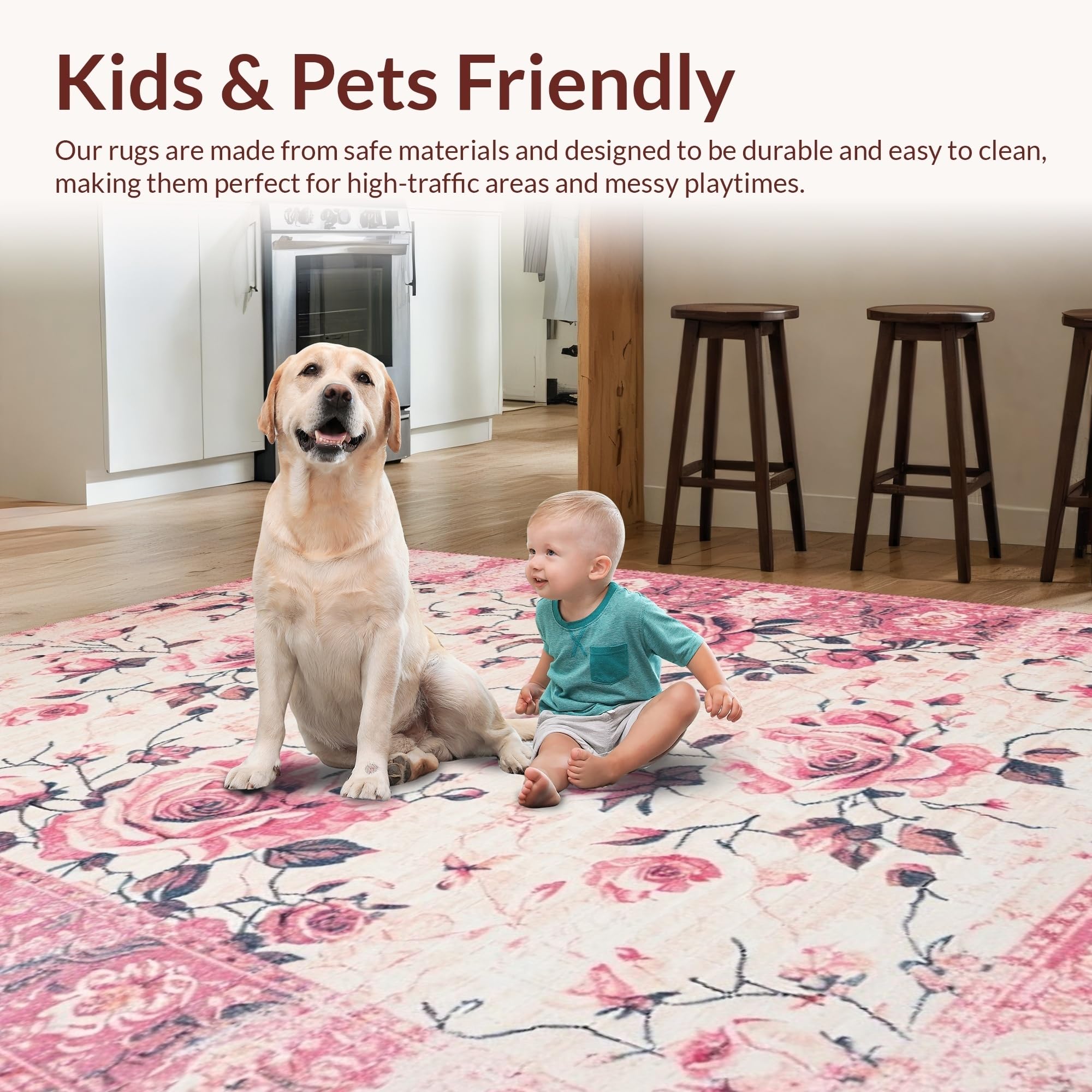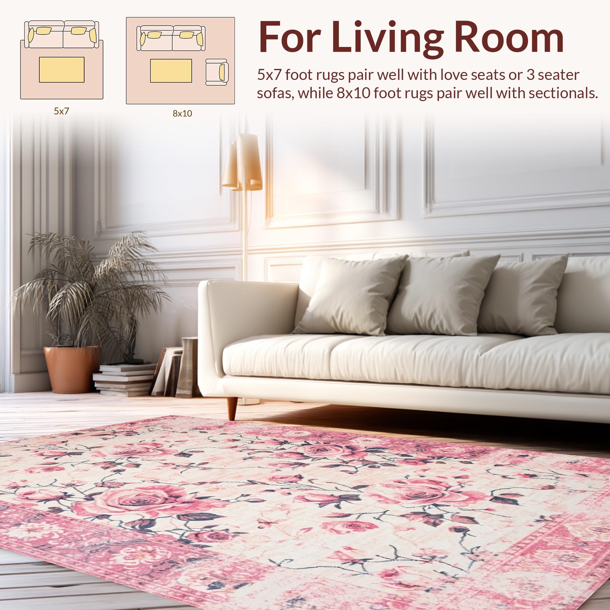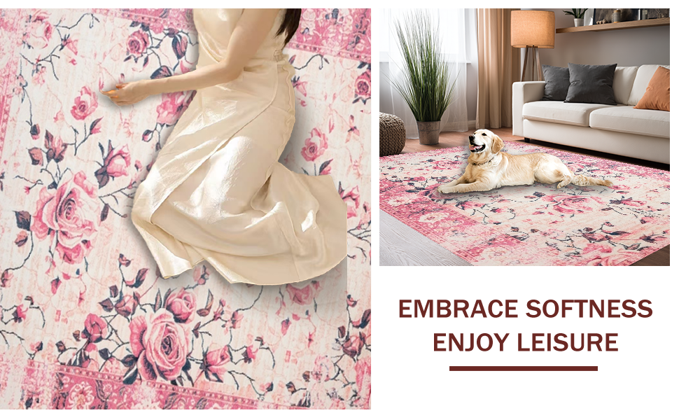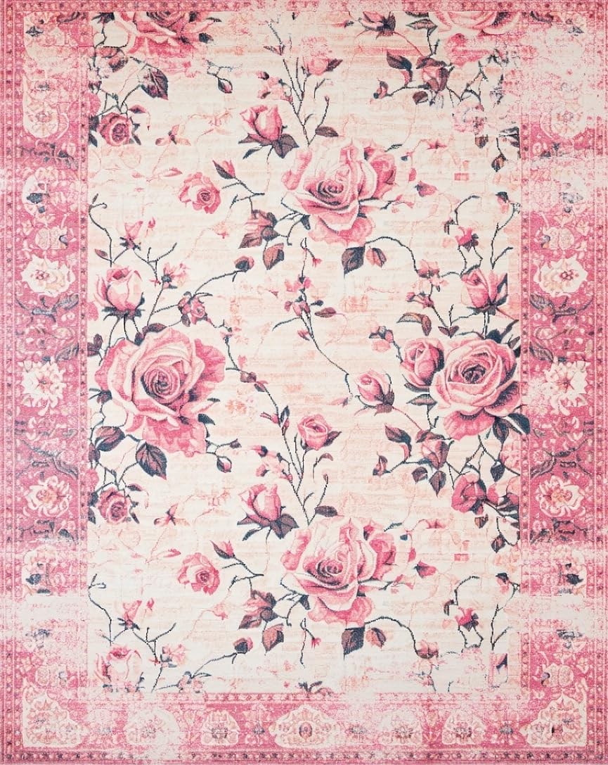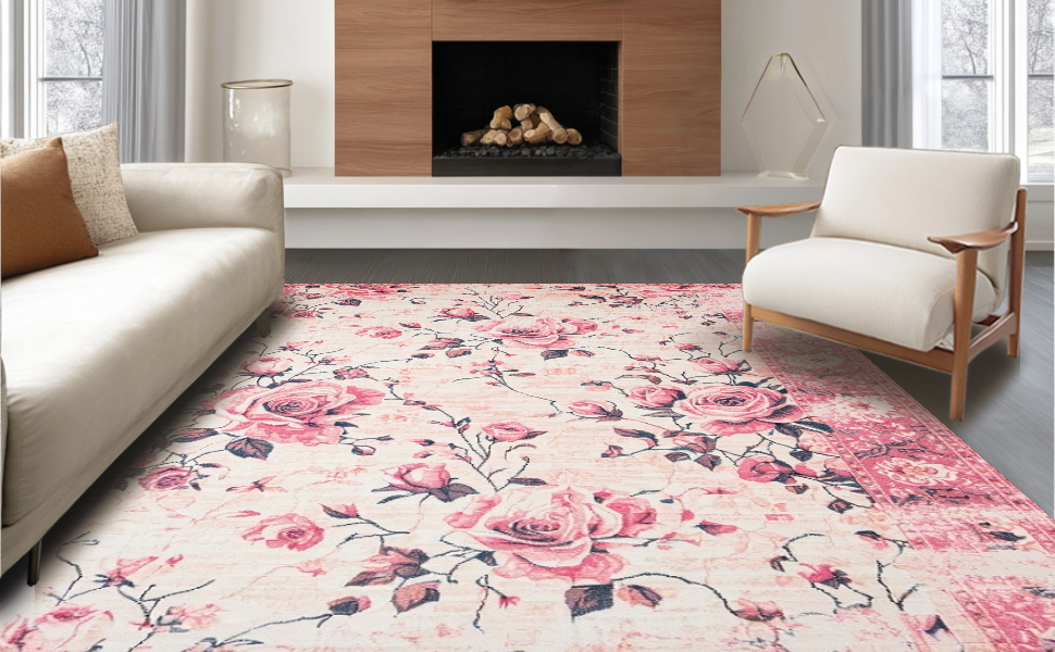 Ultra Soft Area Rug, Non Slip, Stain Resistant, Washable Area Rugs for Living Room, Bedroom, Delicate Shabby Chic Aesthetic(Pink) Overview: