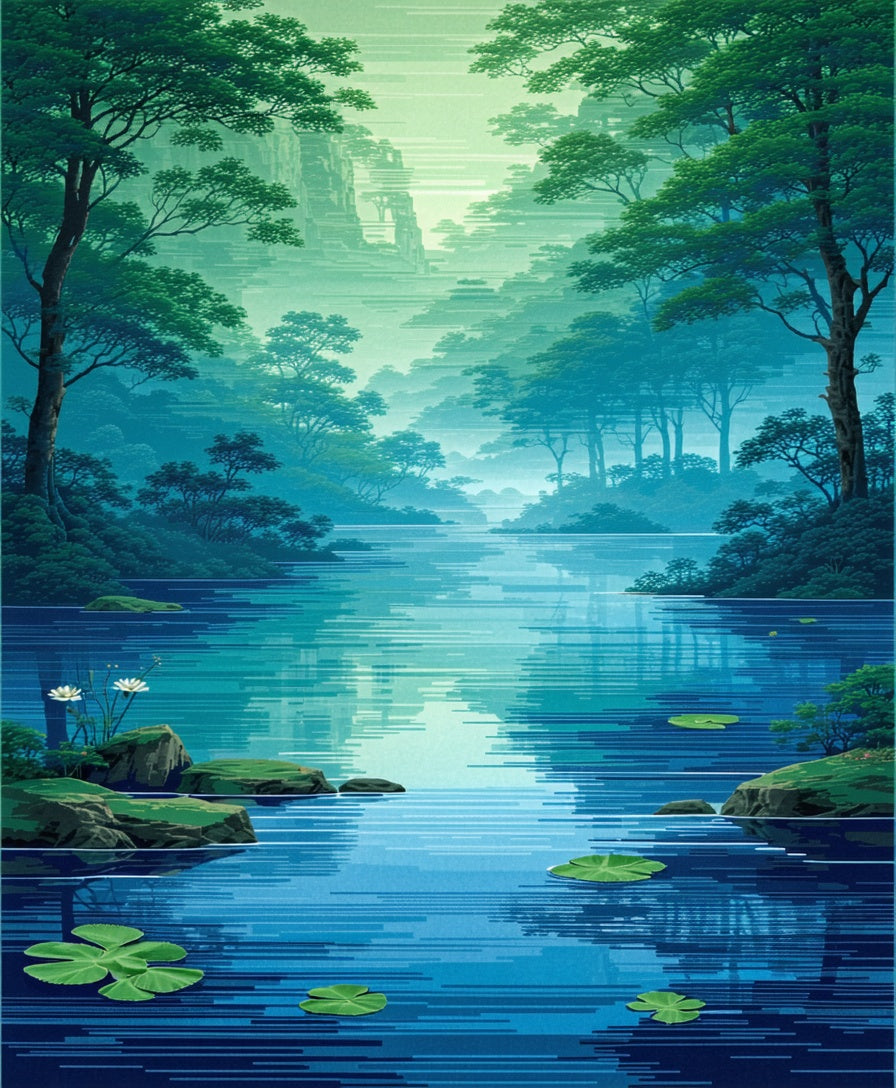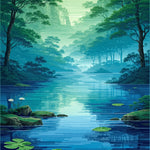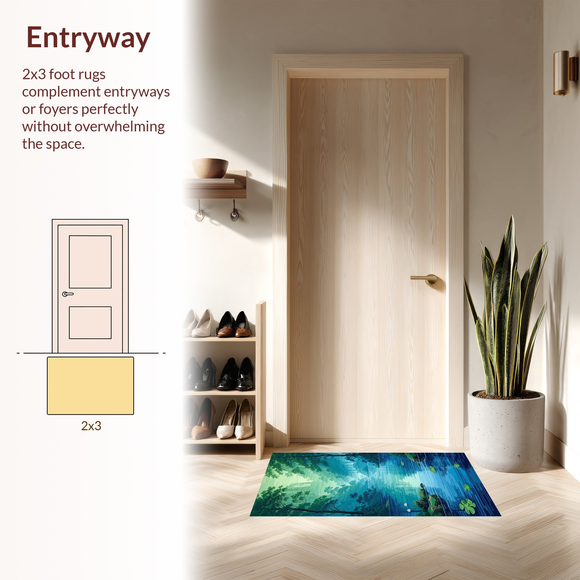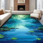 Flatwoven High Traffic Area Rug, Delightful Cartoonish Pond, Non Slip, Stain Resistant, Washable Area Rugs for Living Room, Bedroom (Blue) Overview:
