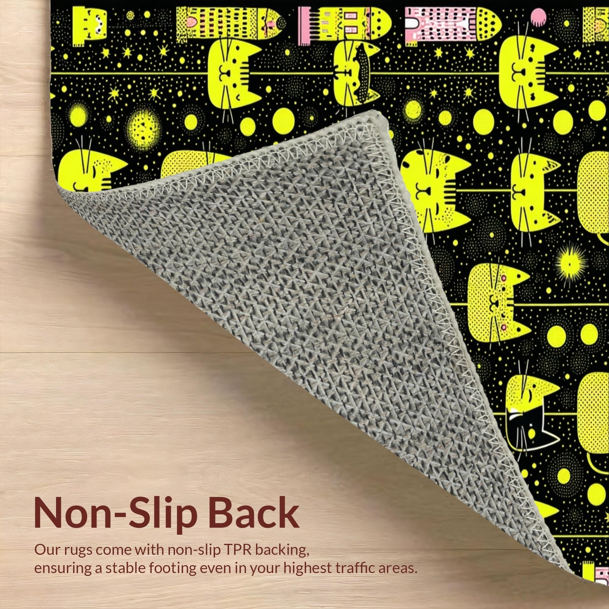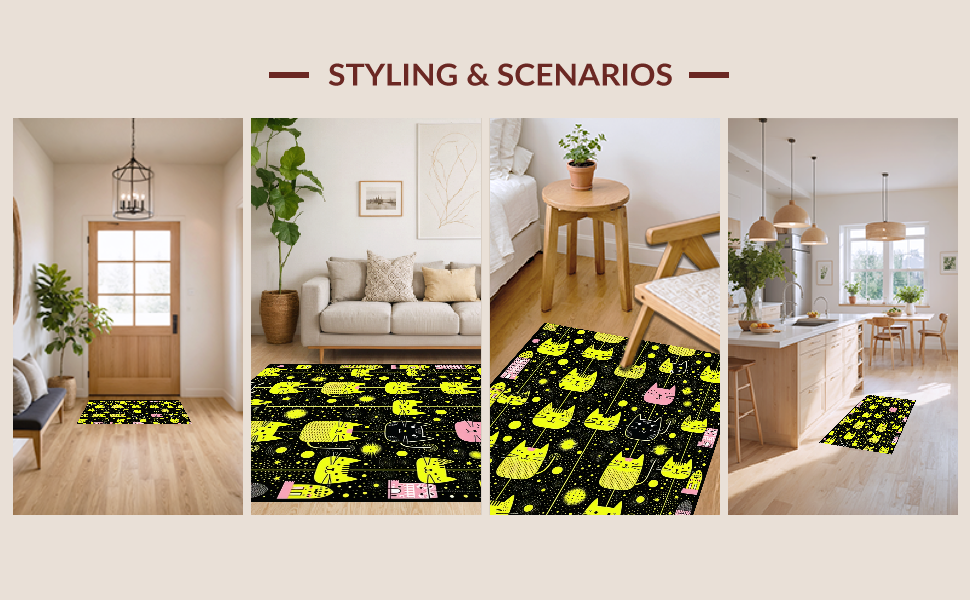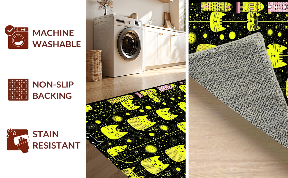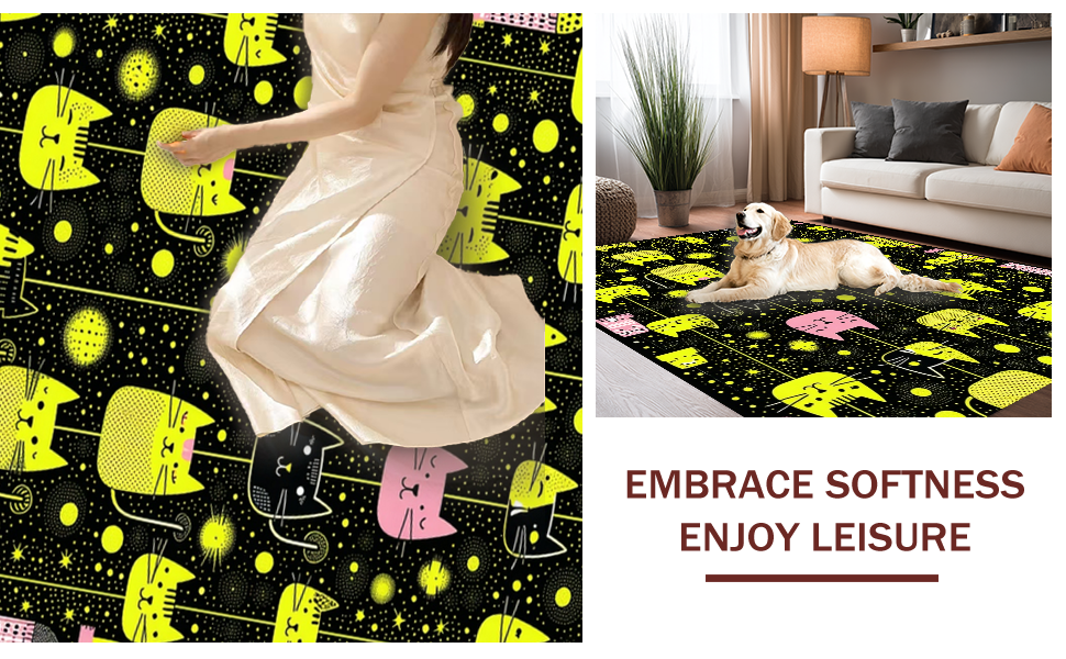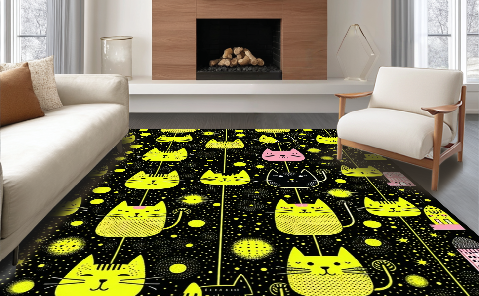 Ultra Soft Area Rug, Non Slip, Stain Resistant, Washable Area Rugs for Living Room, Bedroom, Delightful Child-Friendly Cat Imagery(Black) Overview: