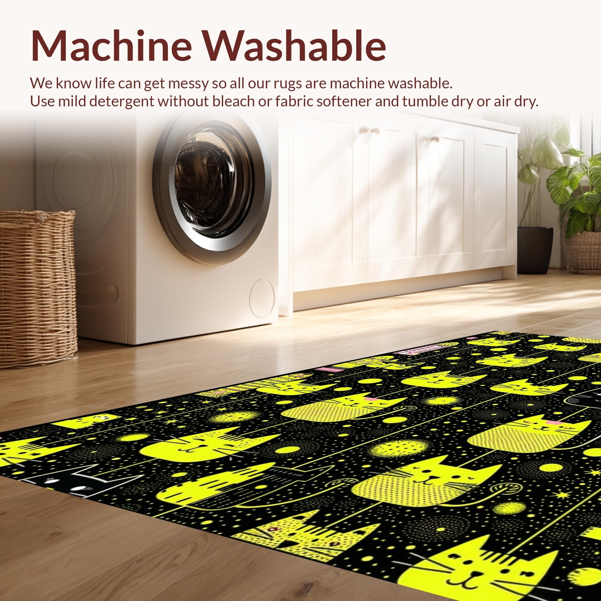 - Machine Washable: Our rugs can be easily thrown in the wash machine.