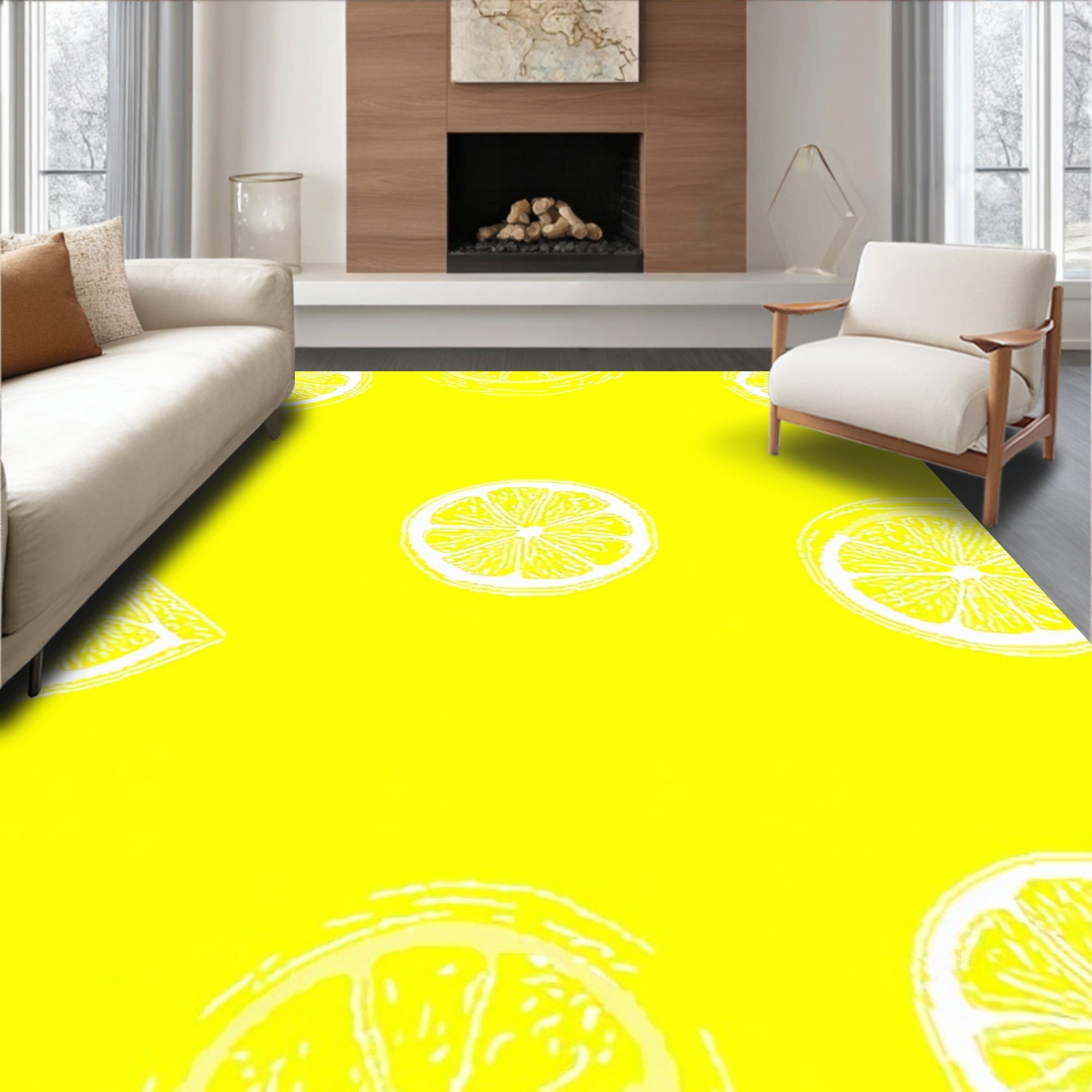 Flatwoven High Traffic Area Rug, Delightful Fruit Inspired Design, Non Slip, Stain Resistant, Washable Area Rugs for Living Room, Bedroom (Yellow) Overview: